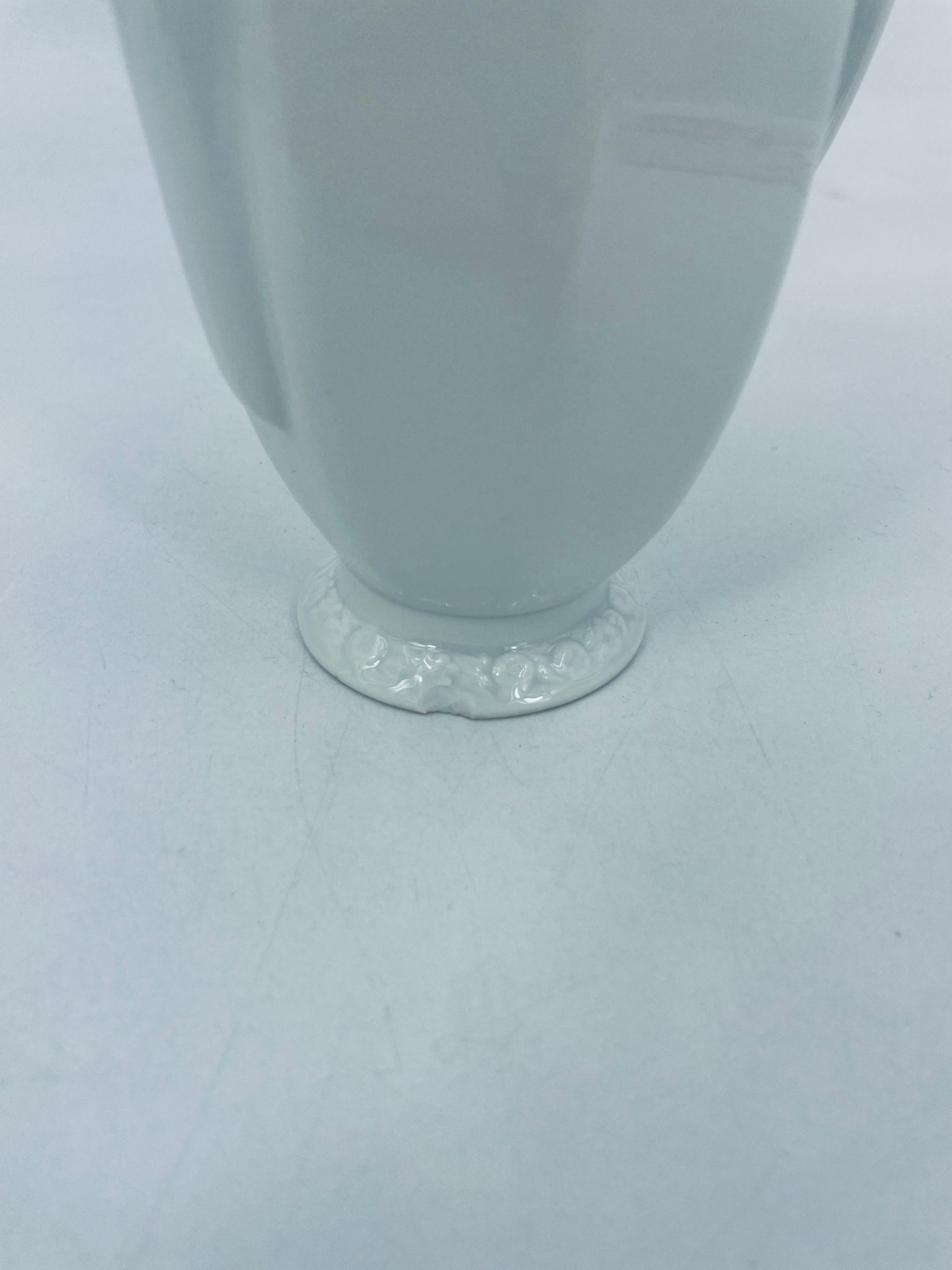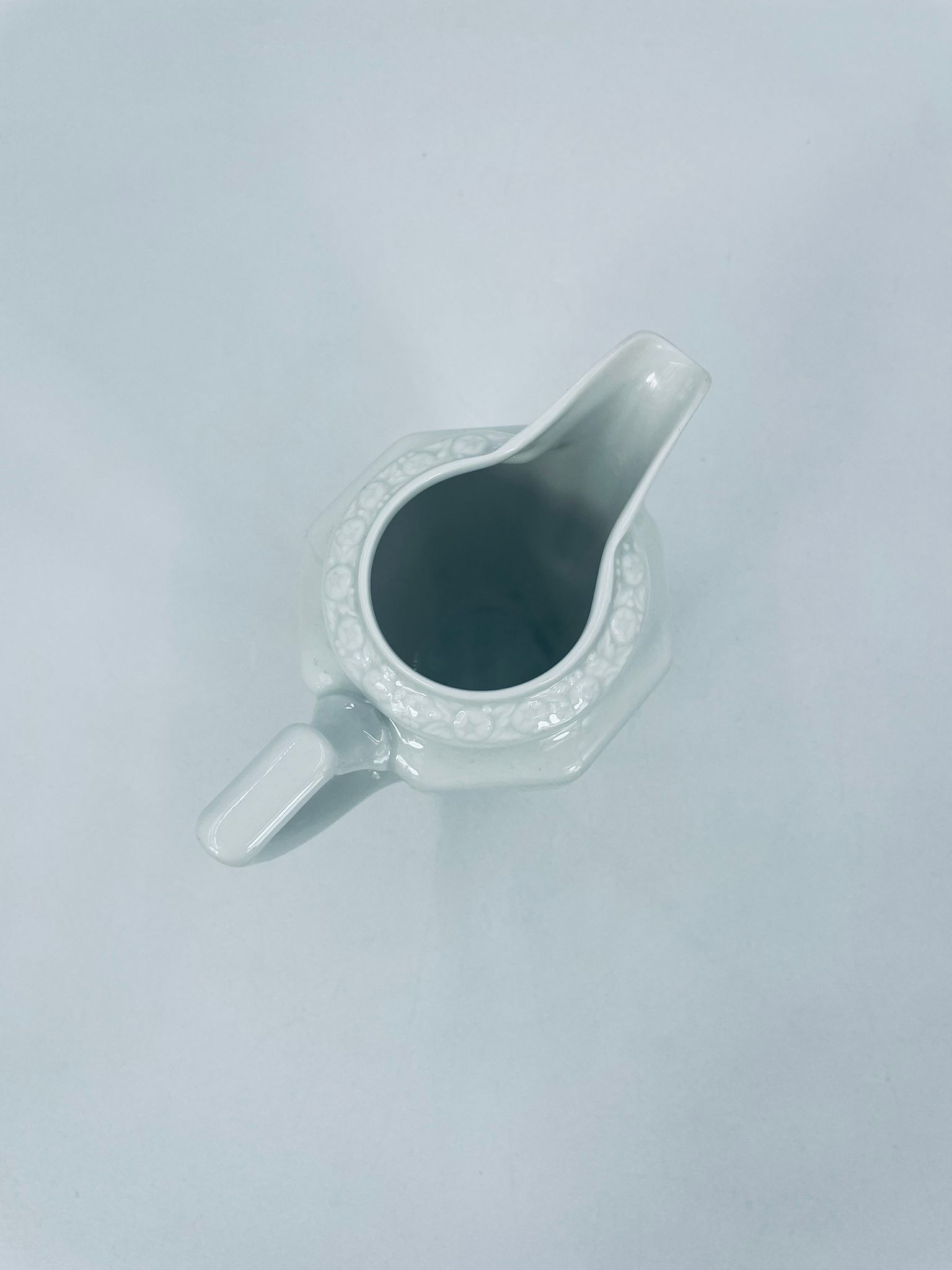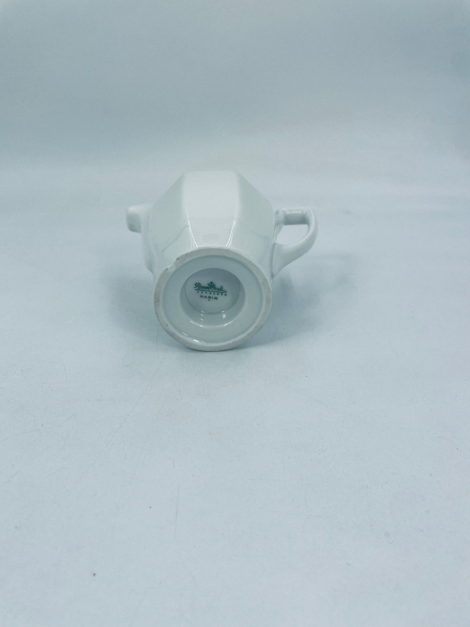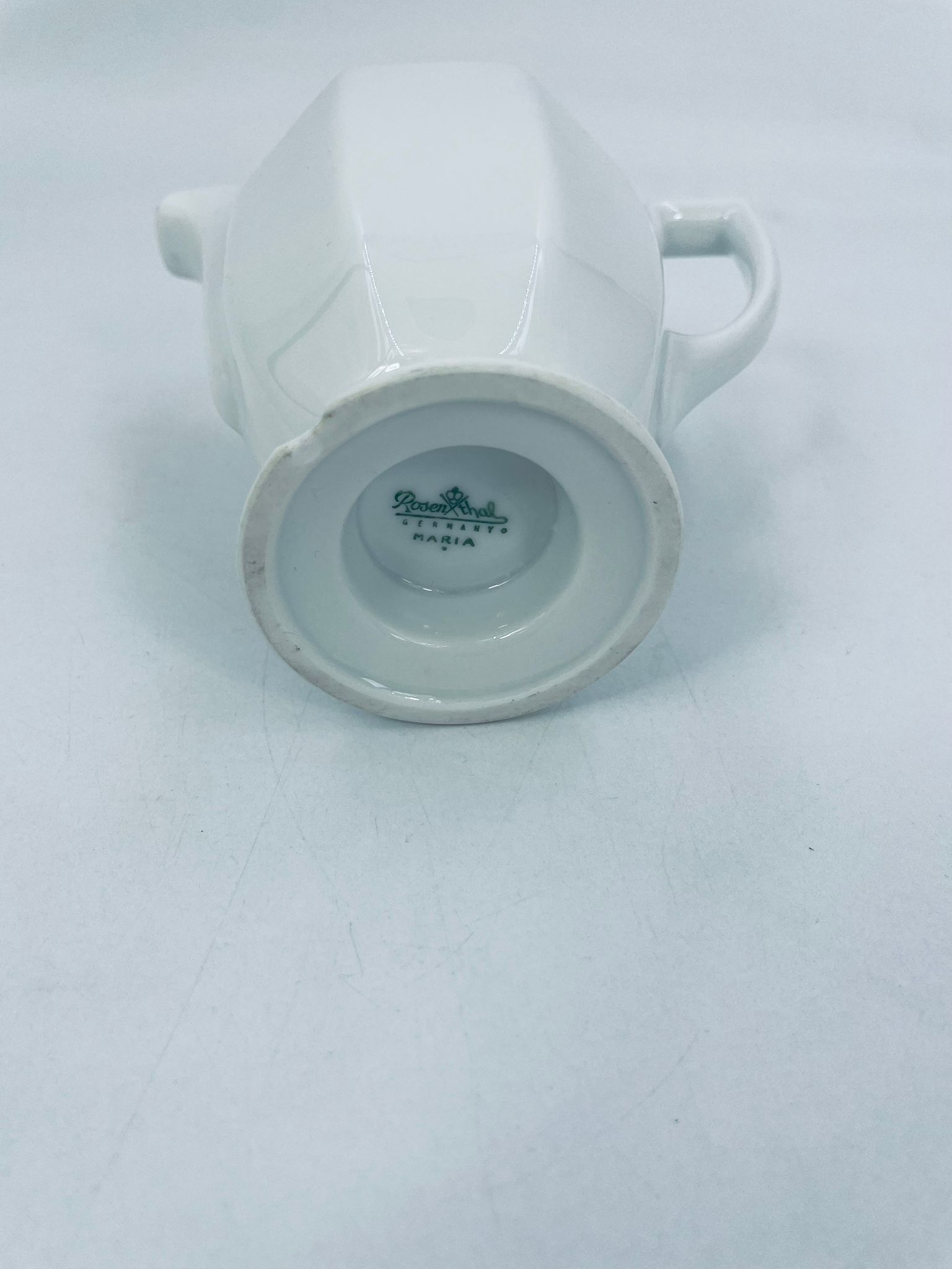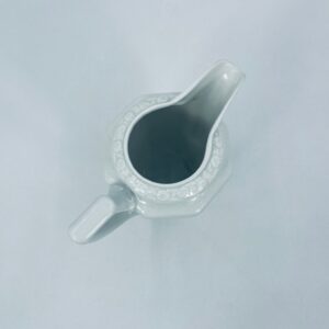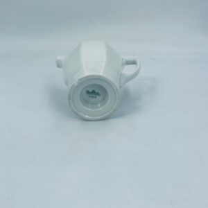 Dzbanuszek na mleko znanej wytwórni Rosenthal Maria Biała, wykonany z wysokiej jakości porcelany w białym kolorze. Mlecznik w lekko geometrycznym kształcie ze zdobieniem reliefowym, kwiatowym. Dzbanuszek posiada uszczerbek u podstawy.