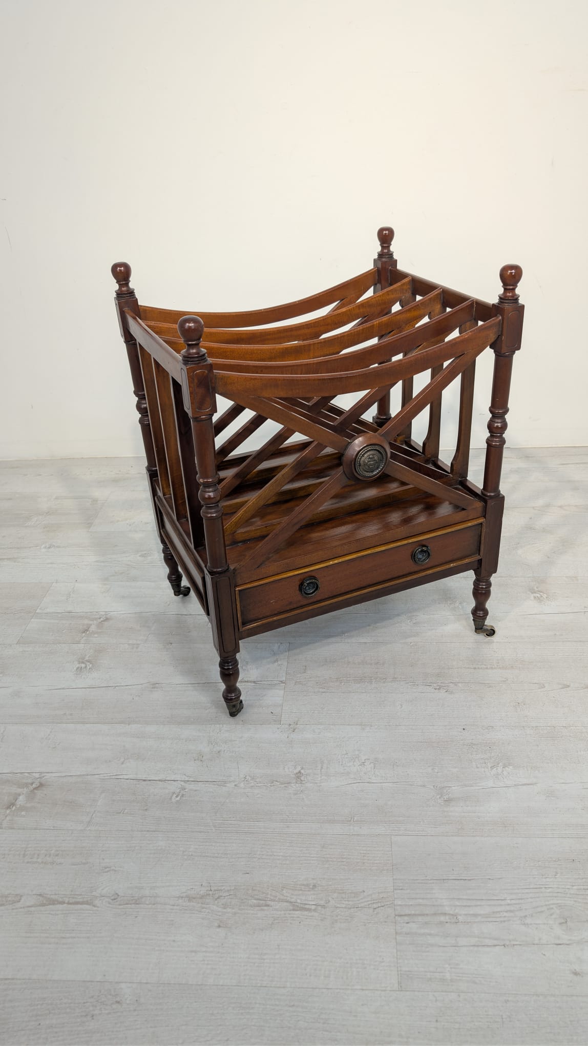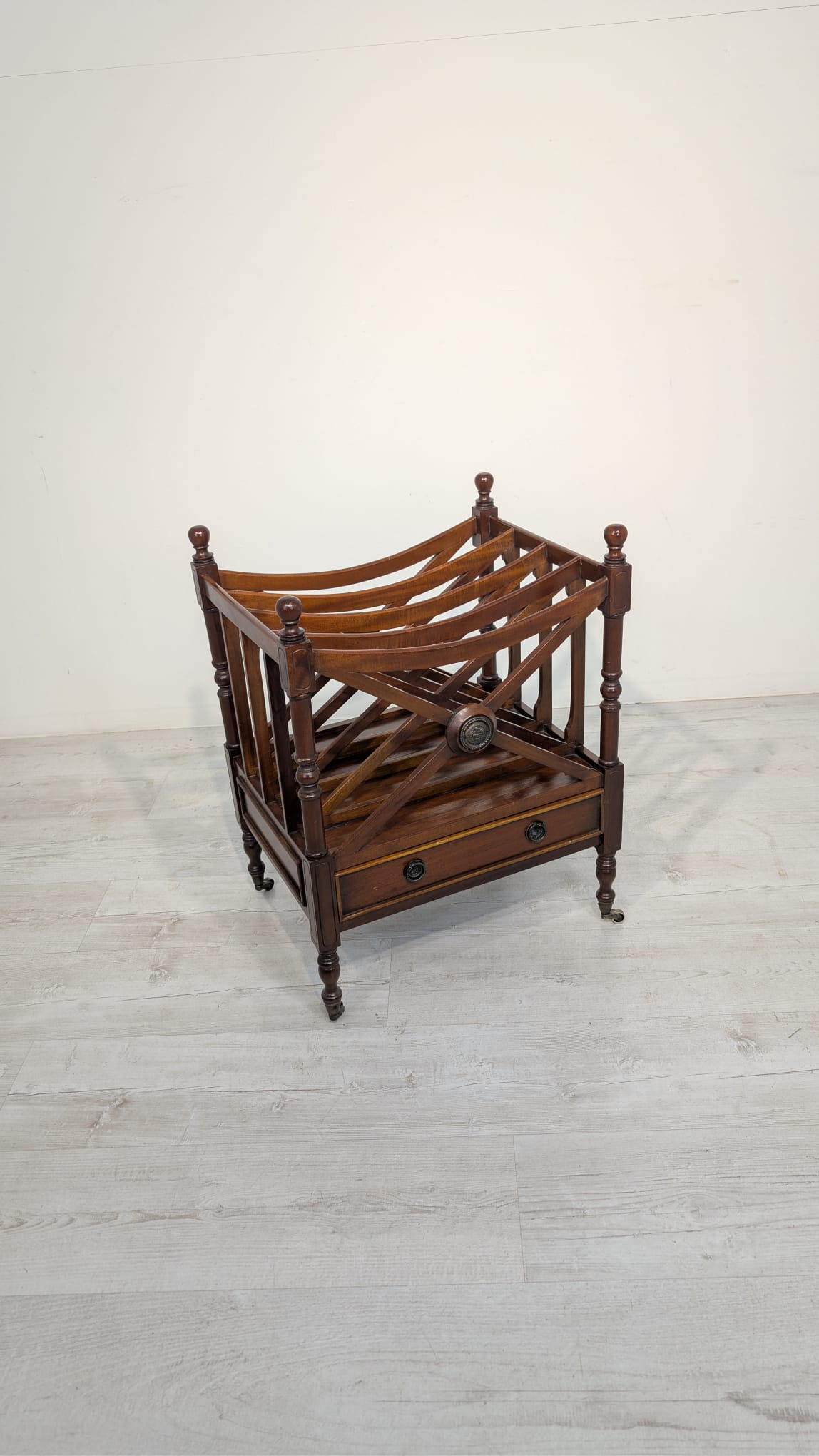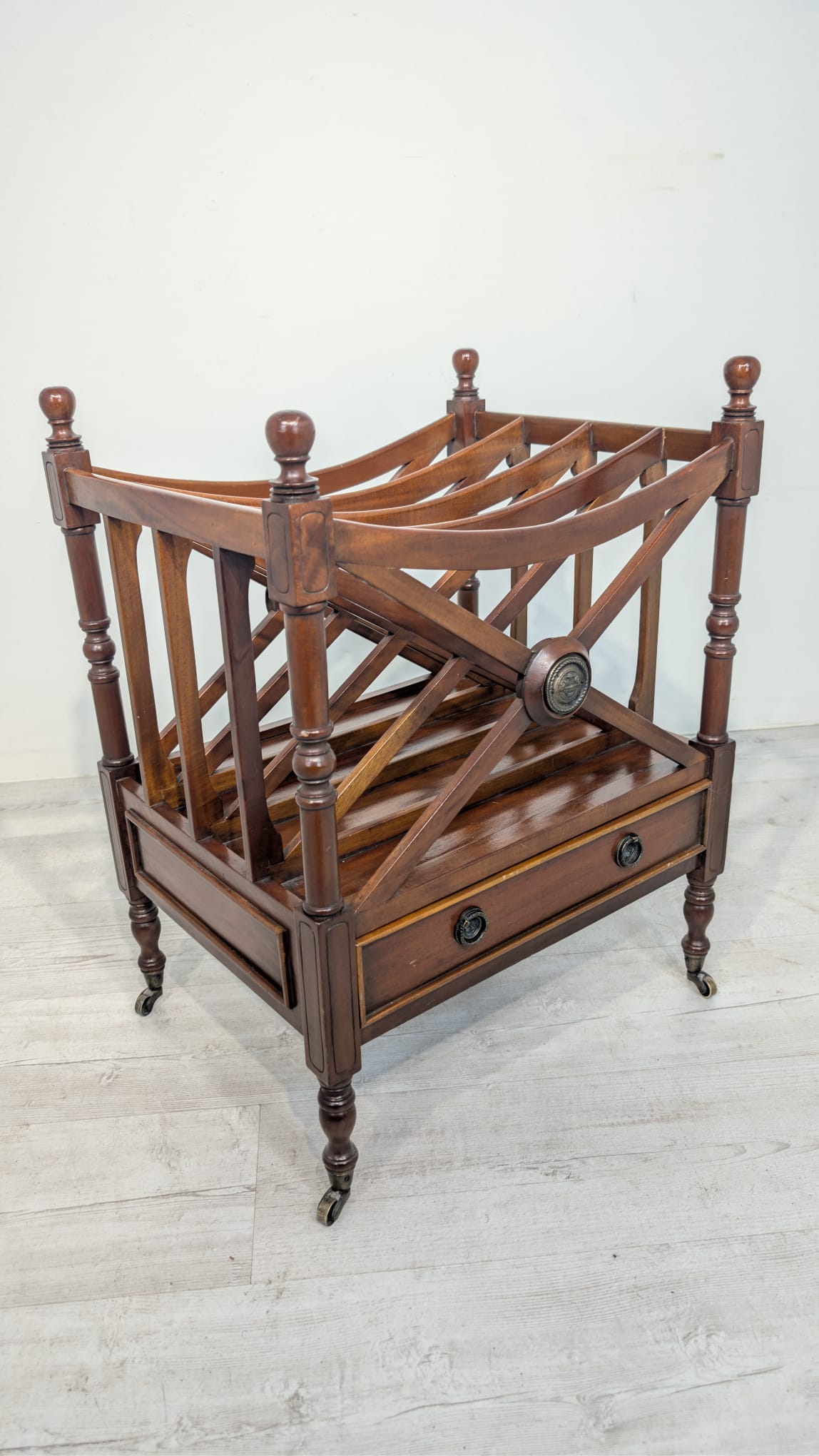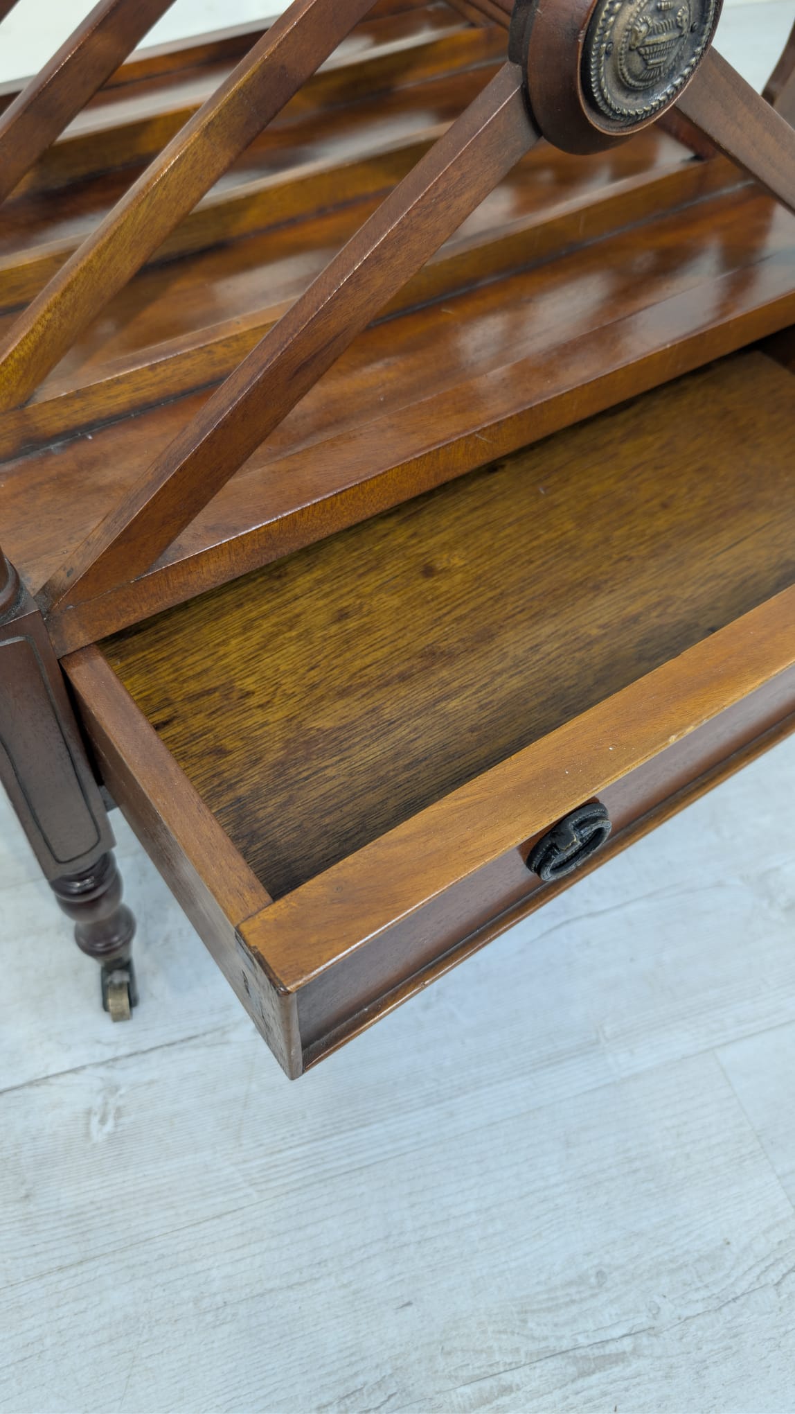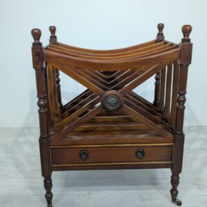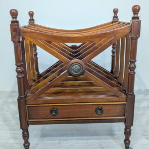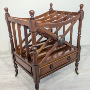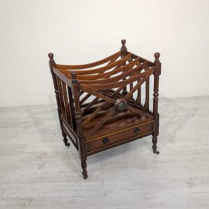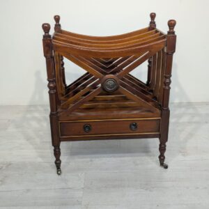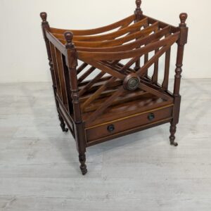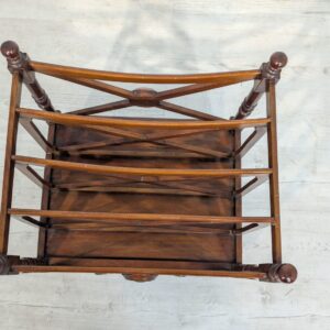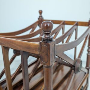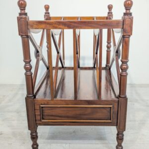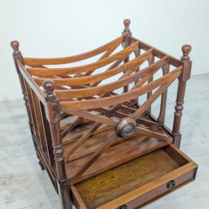 Elegancka, mobilny stojak na czasopisma, vinyle jak i albumy w stylu regencyjnym, wykonana z mahoniowego drewna. Mebel posiada praktyczną szufladę, która ułatwia przechowywanie drobnych przedmiotów.