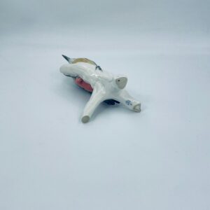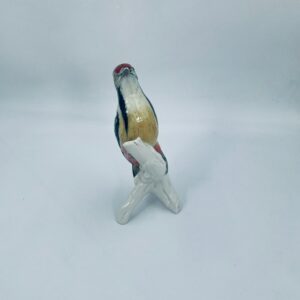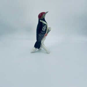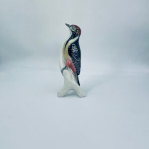Figurka przedstawiająca Dzięcioła, wytwórni Karl Ens, wykonana z wysokiej jakości porcelany szkliwionej. Sygnowana znakiem stosowanym od 1945r, co wskazuje na powojenną produkcję. Figurka ręcznie malowana, z realistycznym odwzorowaniem upierzenia i detali. Brak małego elementu stąd widoczny uszczerbek na figurce.