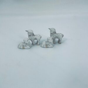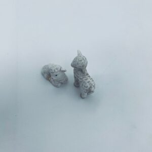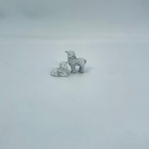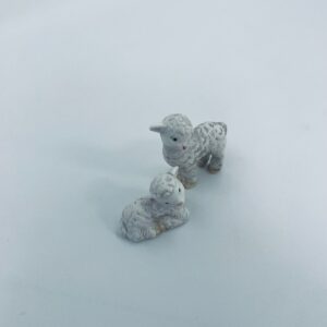 Zestaw figurek kolekcjonerskich wytwórni Goebel, wykonanych z porcelanach. Przedstawia dwie małe owieczki. Jedna owieczka posiada uszczerbek na nóżce.