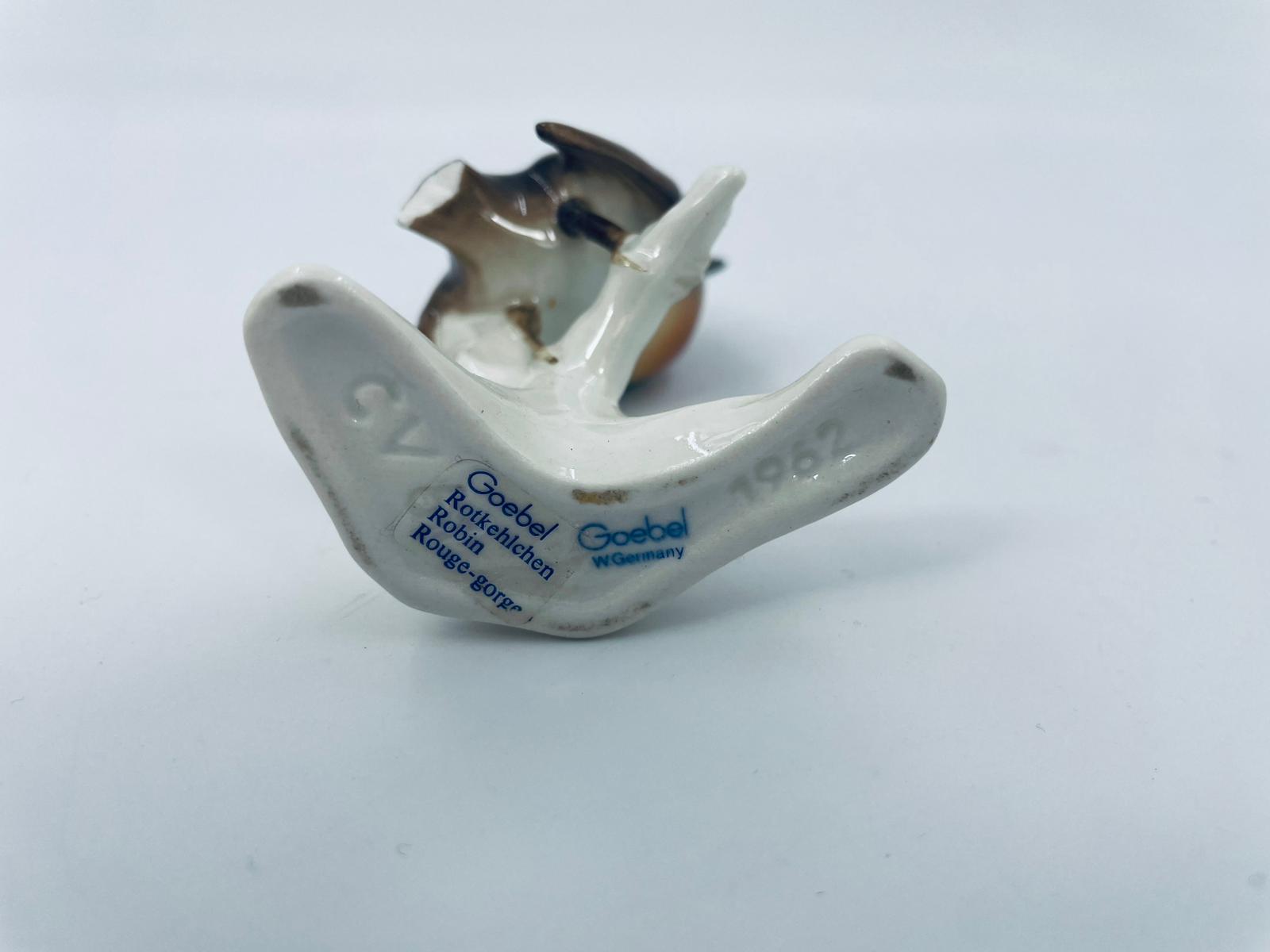Figurka kolekcjonerska wytwórni Goebel, wykonana z wysokiej jakości porcelany. Figurka przedstawia uroczego, brązowego ptaka Rudzika siedzącego na gałęzi. Posiada uszczerbek na ogonie.