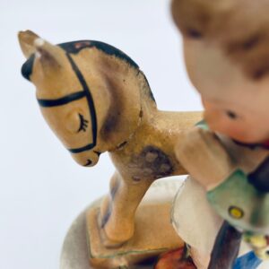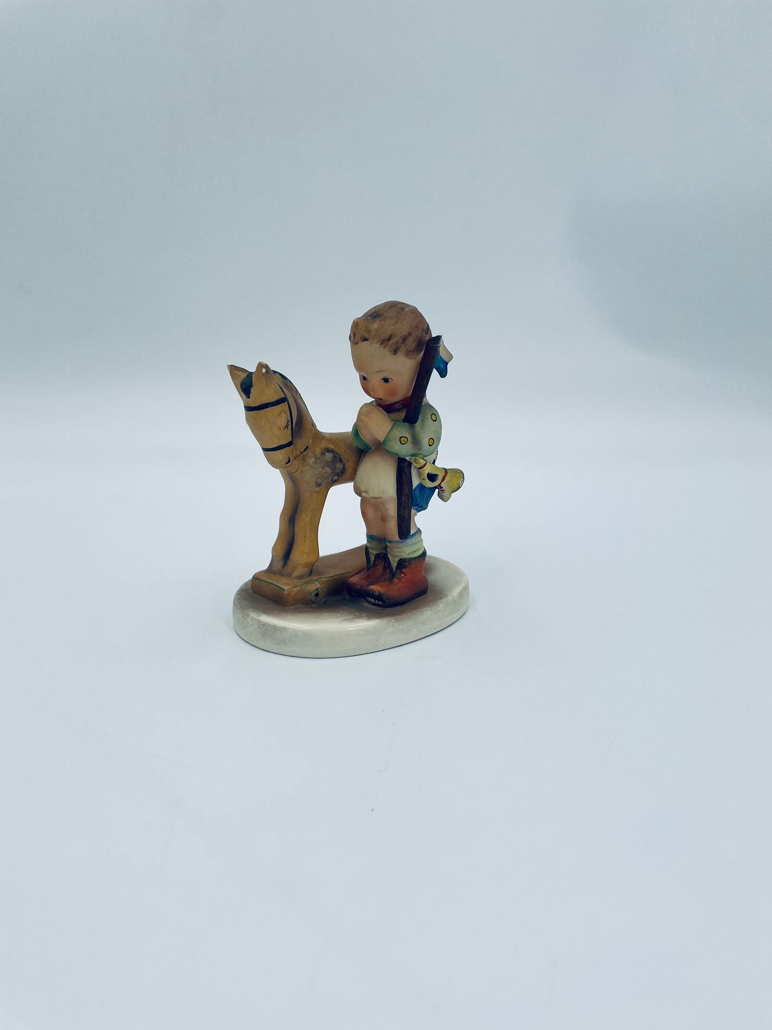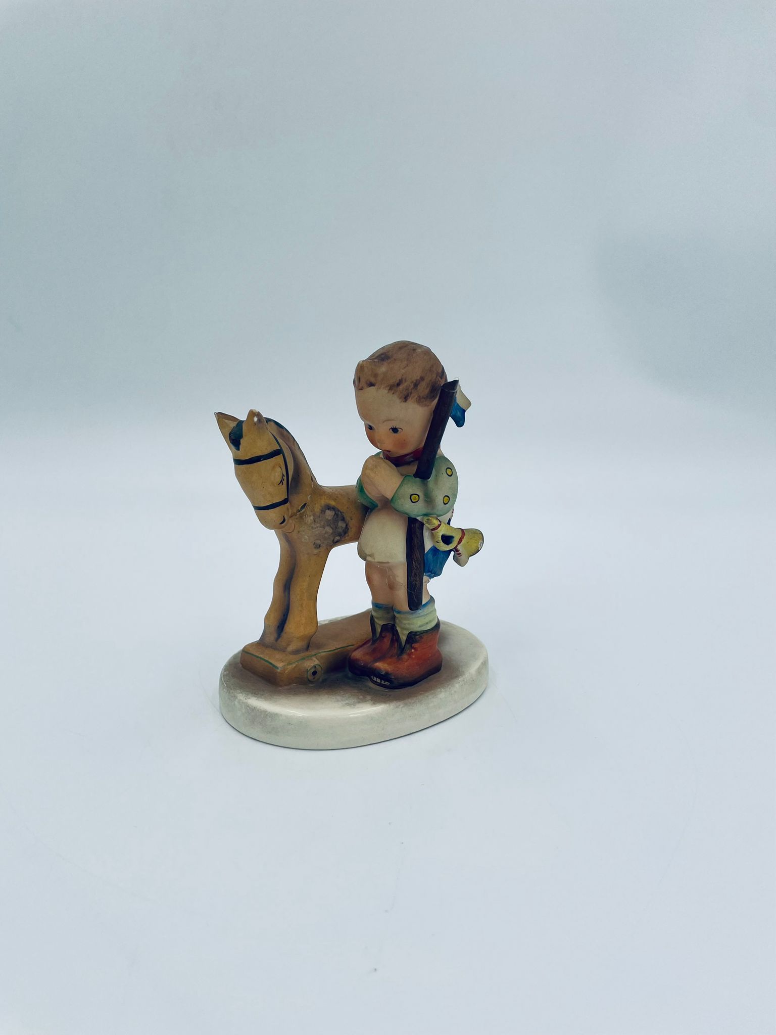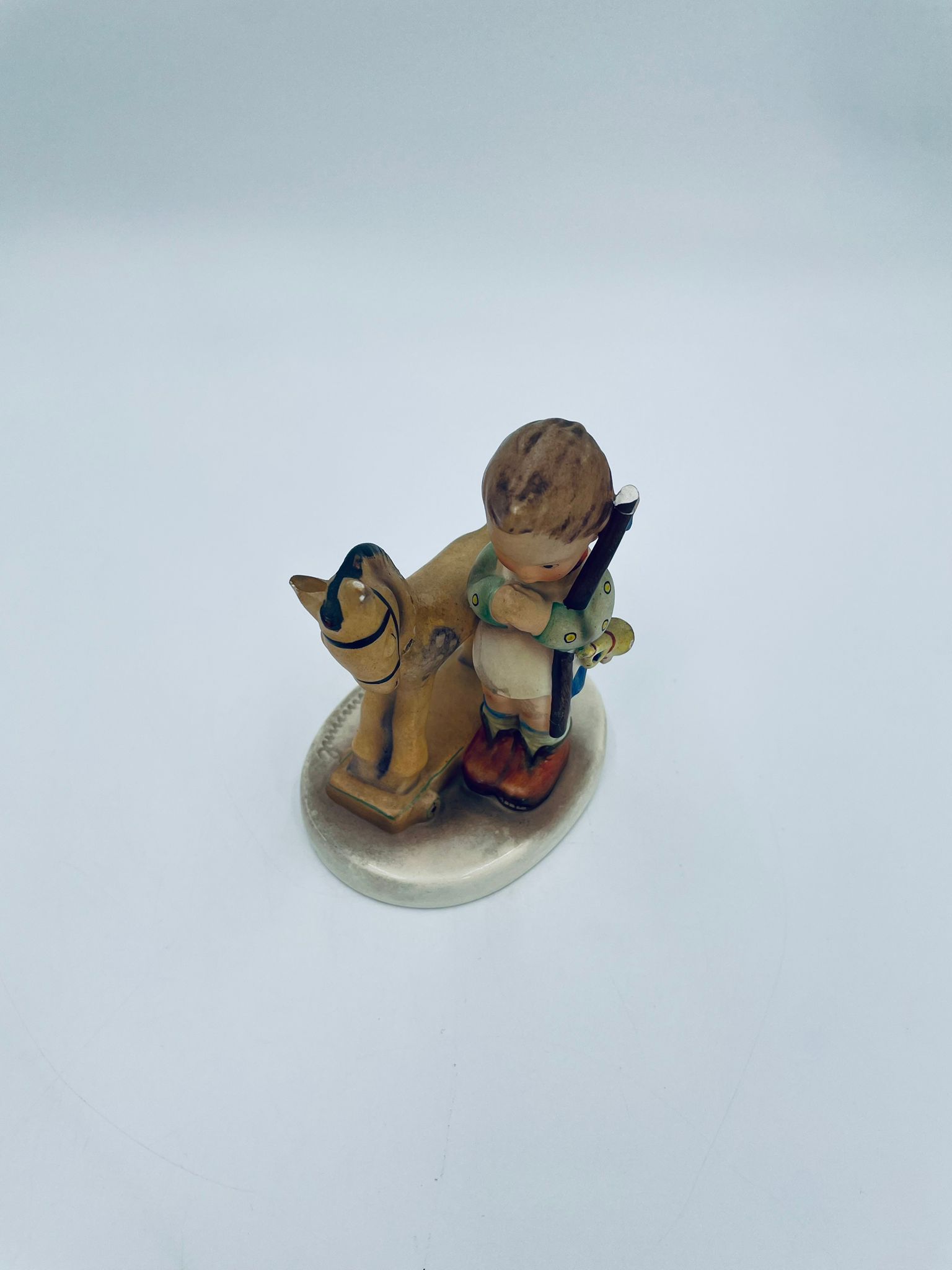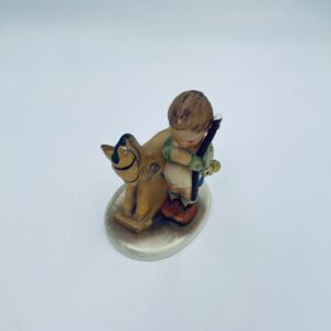 Figurka kolekcjonerska wytwórni Goebel Hummel, zaprojektowana na podstawie prac siostry M.I Hummel, wykonana z wysokie jakości porcelany. Figurka ręcznie malowana, nosi nazwę Prayer Before Battle „Modlitwa przed bitwą” , przedstawia małego chłopca modlącego się przy koniku na biegunach. Figurka posiada uszczerbek oraz sklejone pęknięcie na koniku.