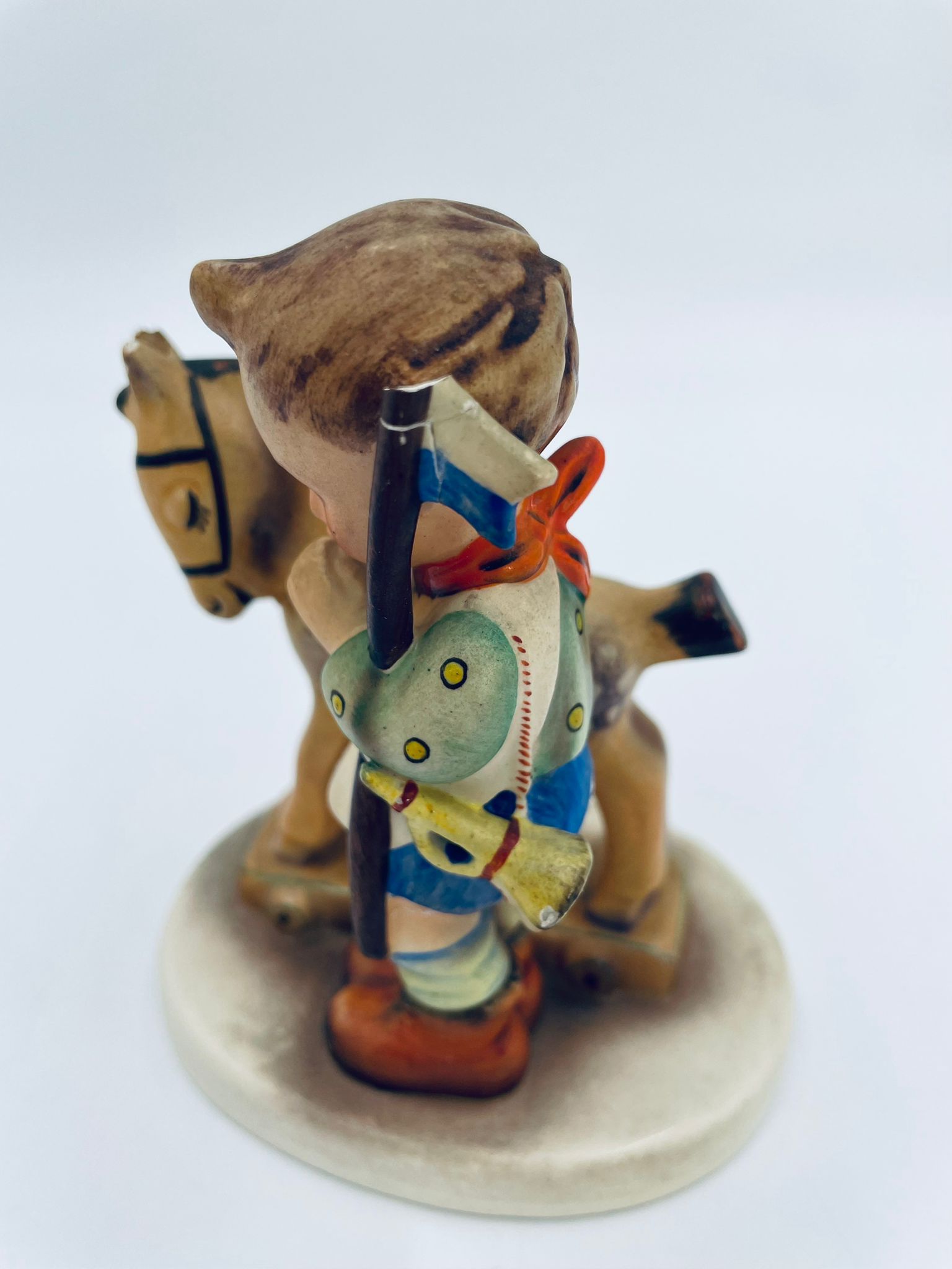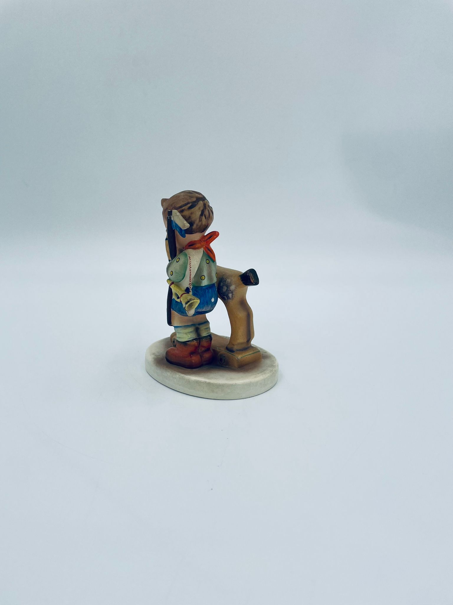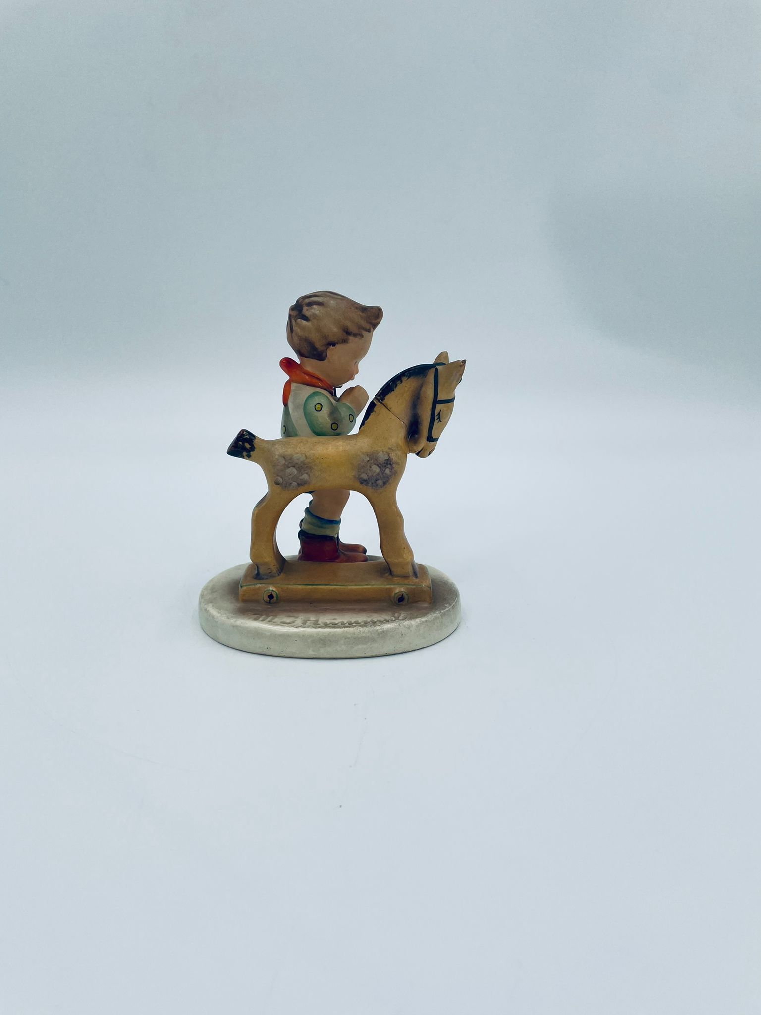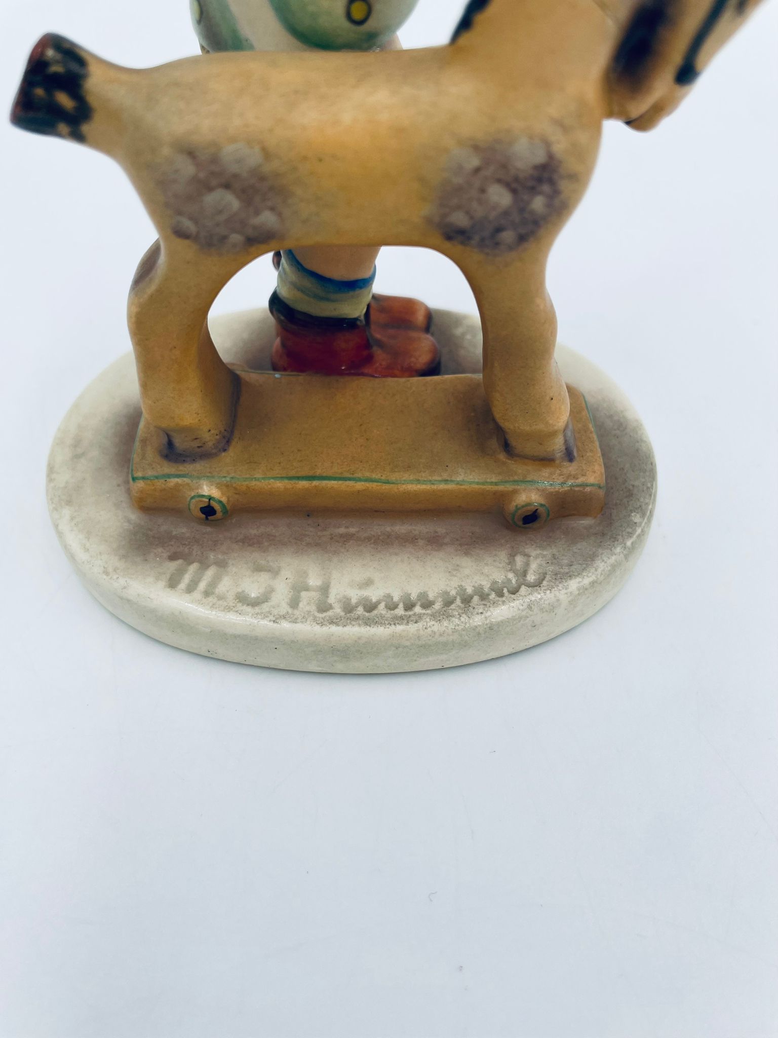 Figurka kolekcjonerska wytwórni Goebel Hummel, zaprojektowana na podstawie prac siostry M.I Hummel, wykonana z wysokie jakości porcelany. Figurka ręcznie malowana, nosi nazwę Prayer Before Battle „Modlitwa przed bitwą” , przedstawia małego chłopca modlącego się przy koniku na biegunach. Figurka posiada uszczerbek oraz sklejone pęknięcie na koniku.