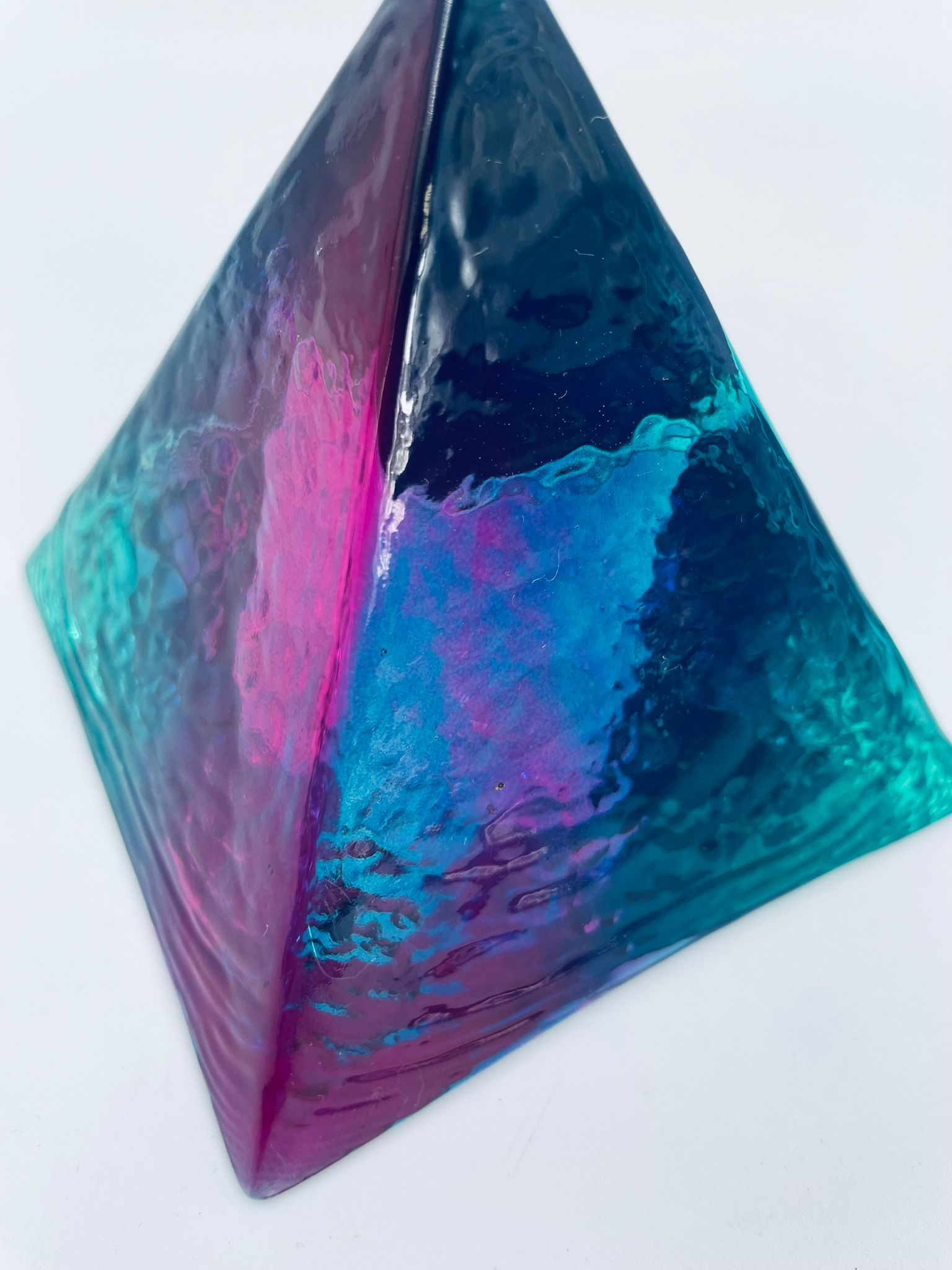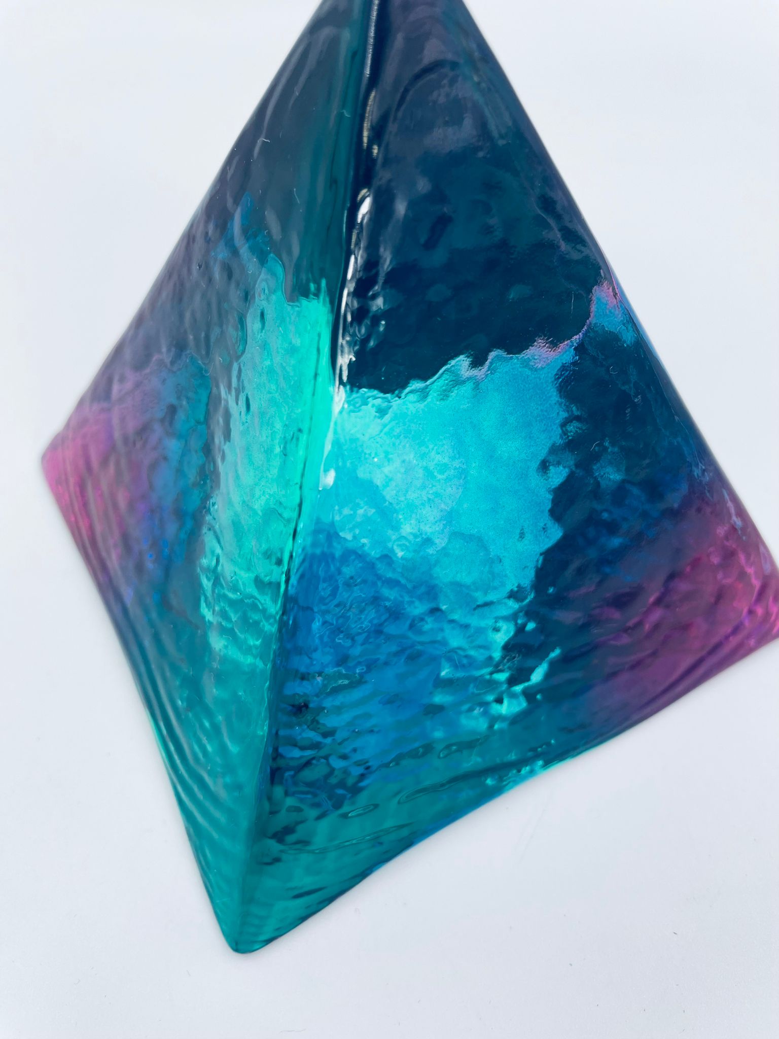 Figurka kolekcjonerska w kształcie piramidy, wykonana ze szkła kryształowego ołowiowego. Piramida o wielobarwnej powierzchni, która mieni się różnymi kolorami w zależności od kąta patrzenia.