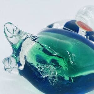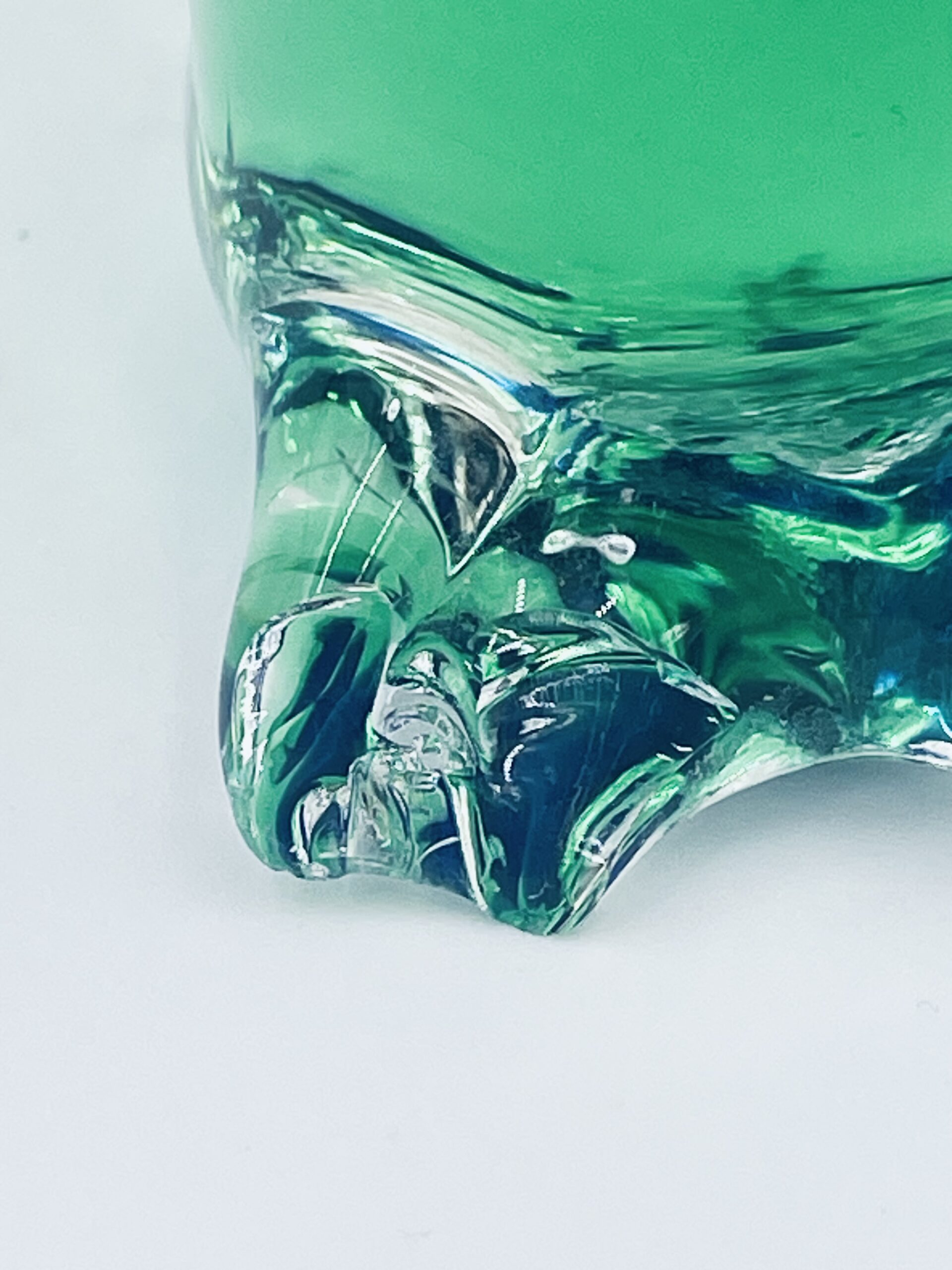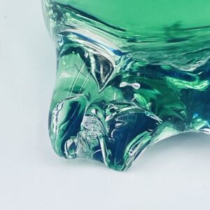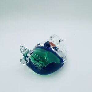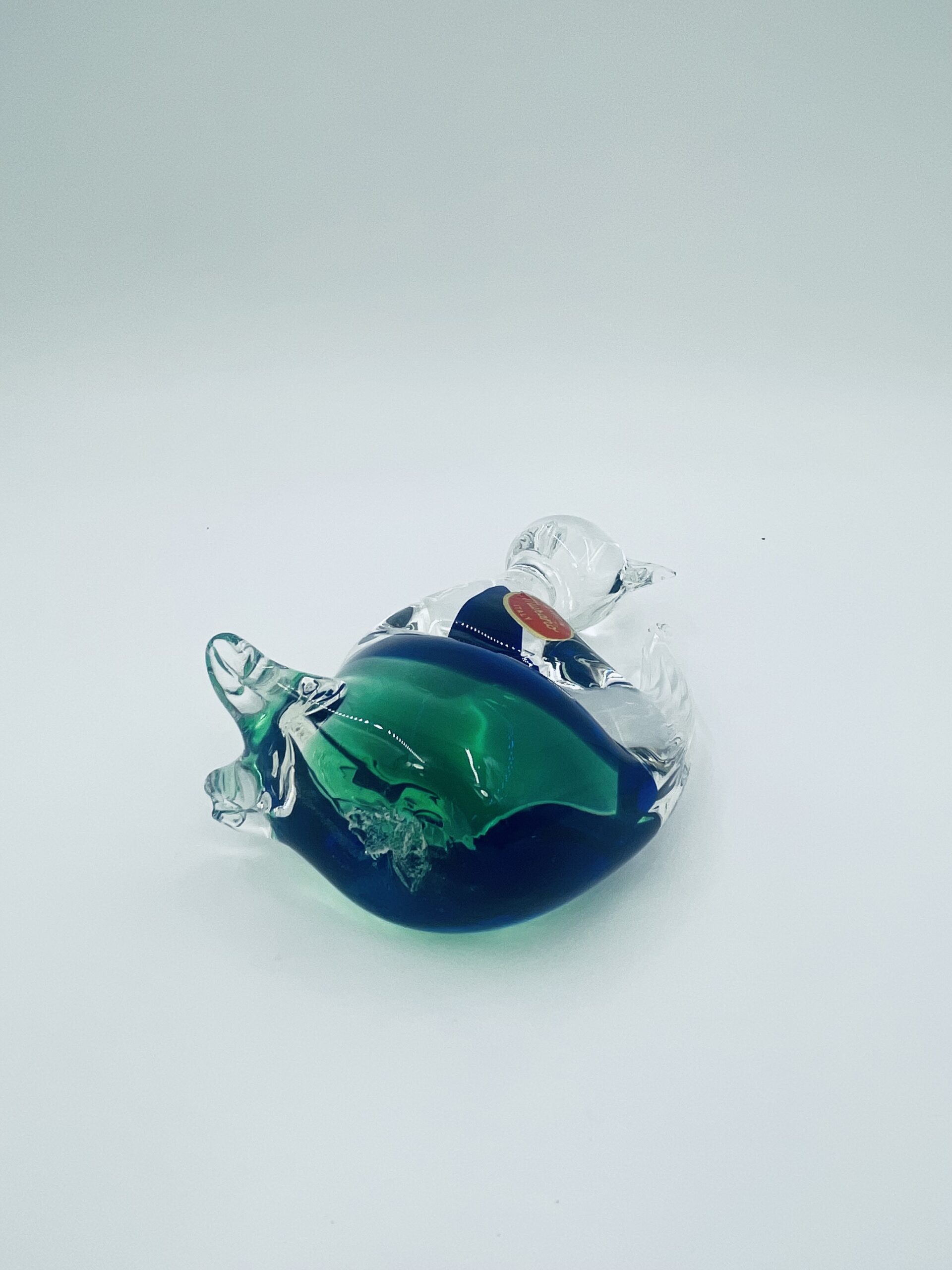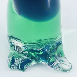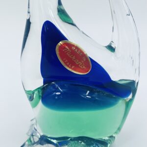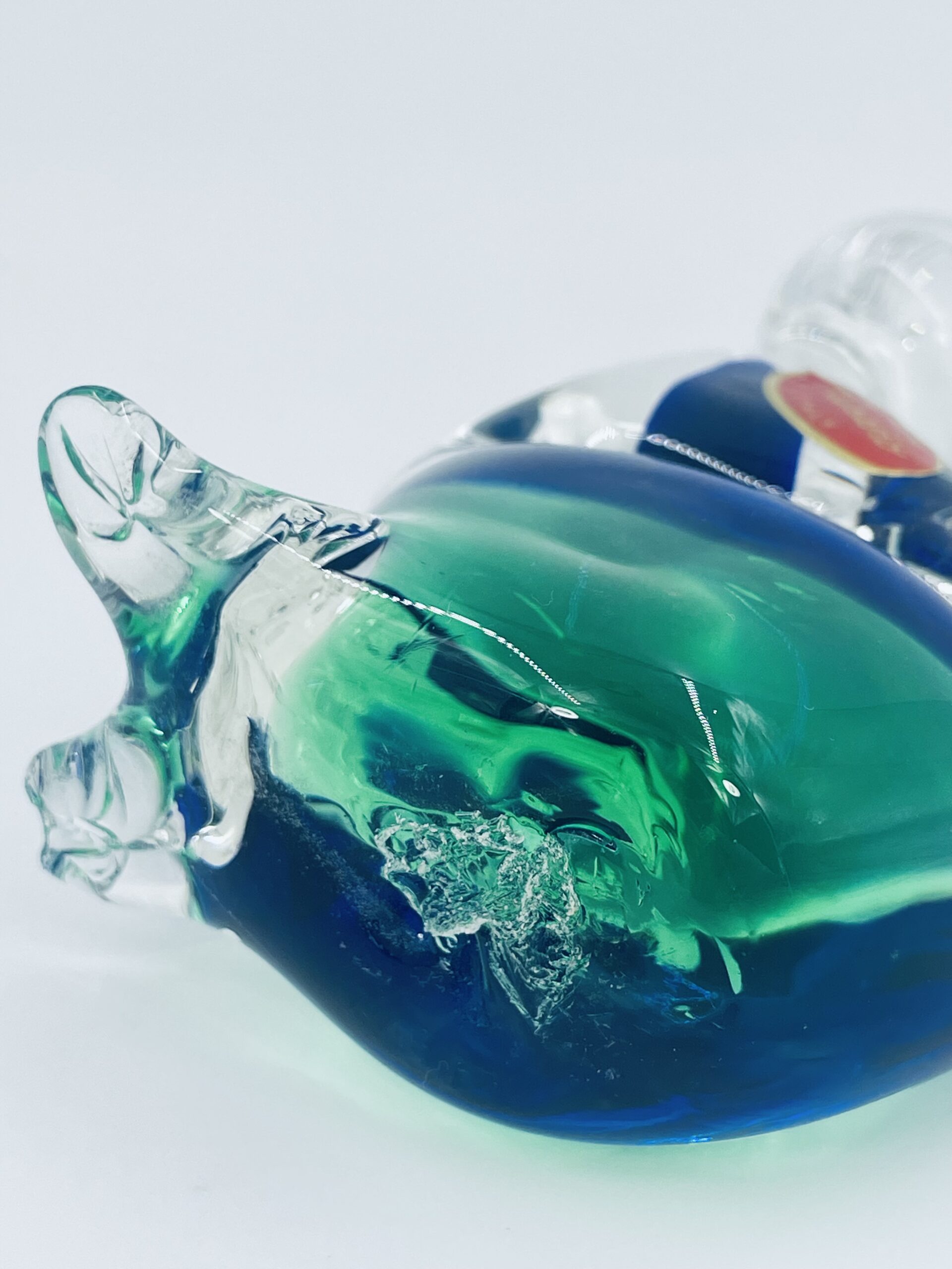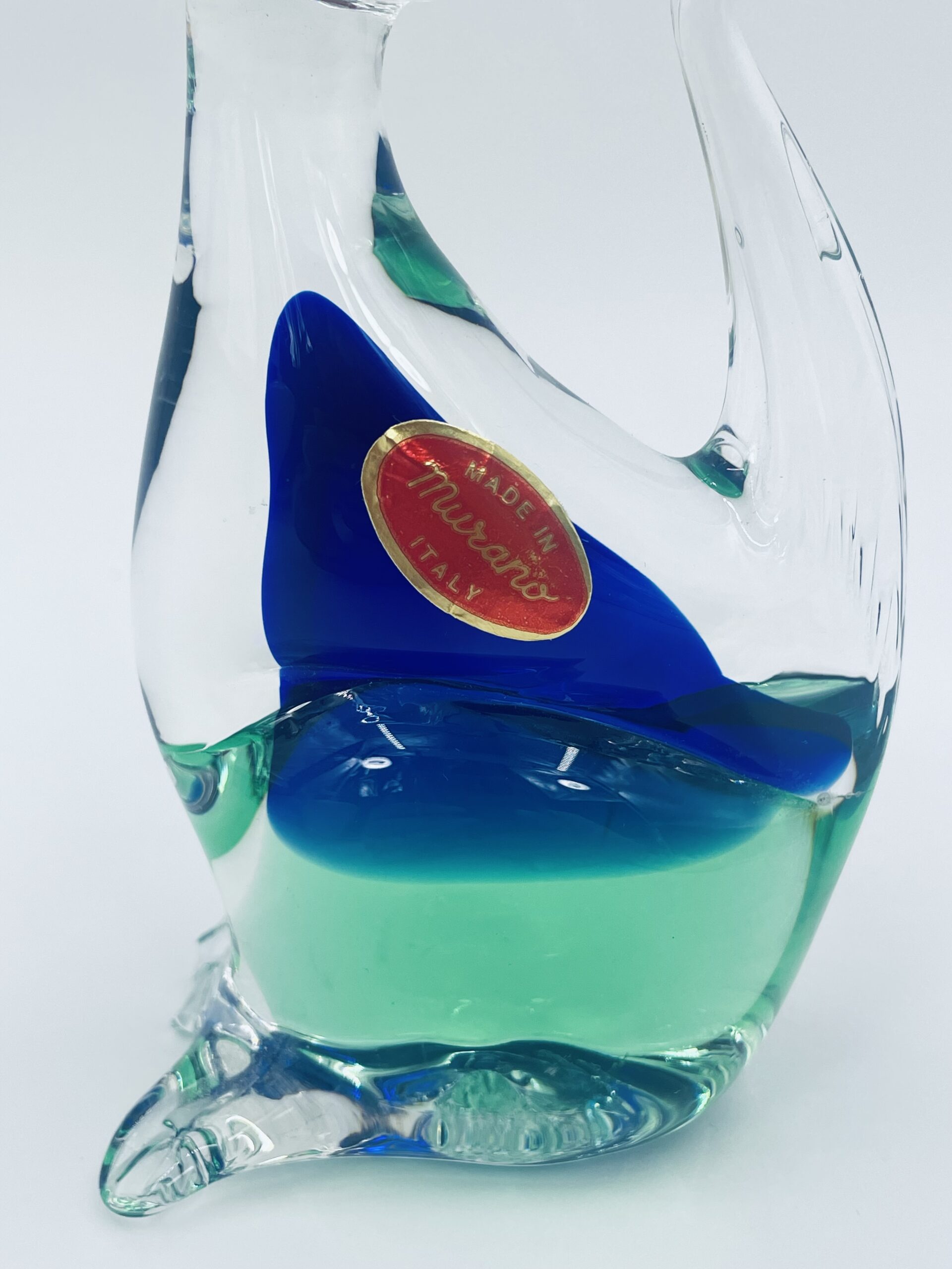 Figurka kota ze szkła Murano w stylu vintage, niebiesko-zielona i przezroczysta, z oryginalną naklejką Murano Włochy.