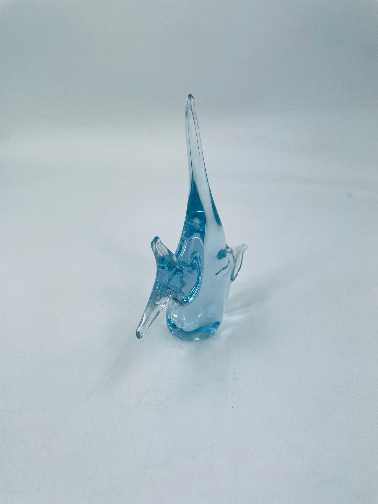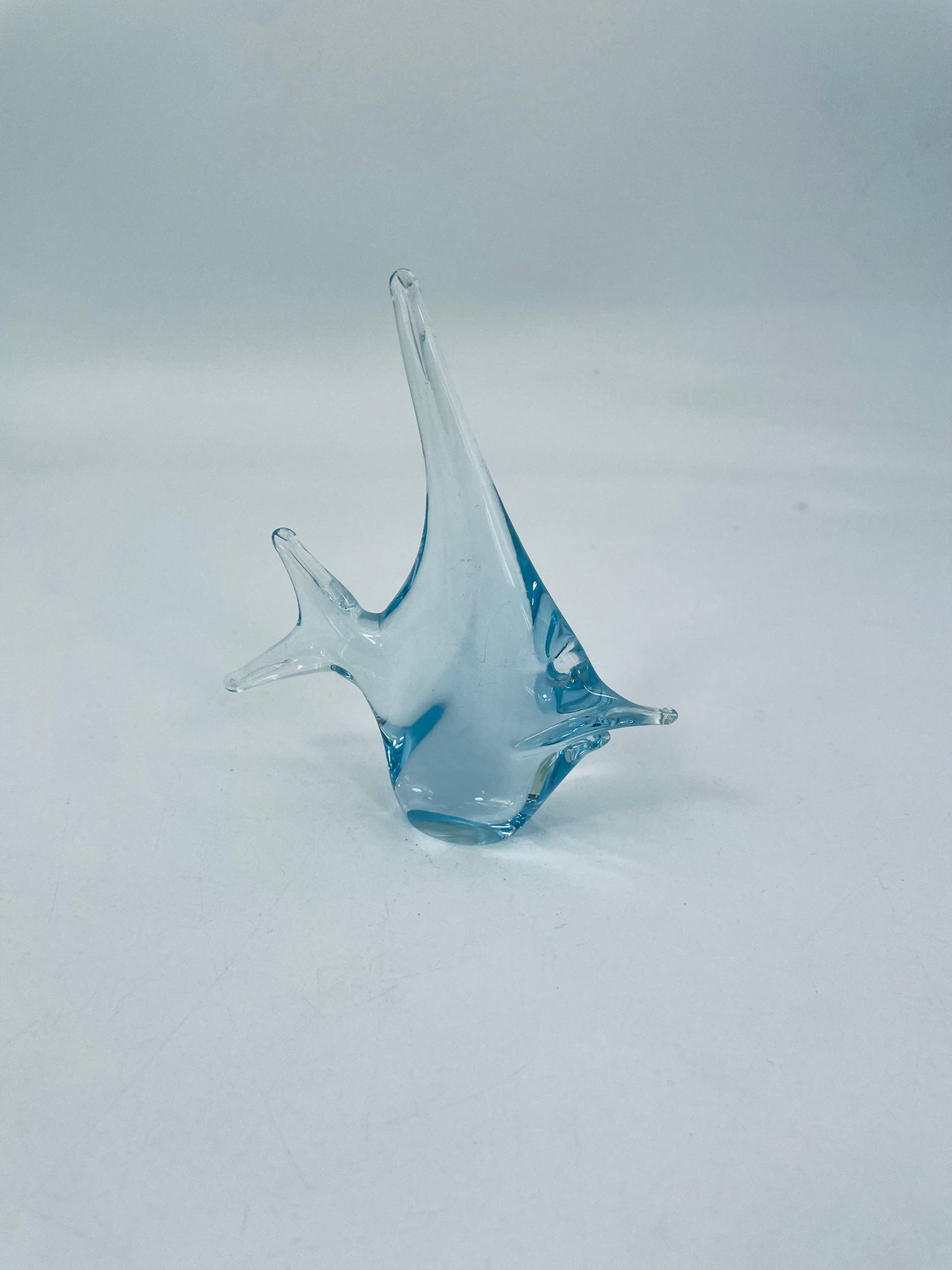 Rybka dekoracyjna z wysp murano, ze szkła przezroczystego z błękitnymi przejściami. Idealna dekoracja do każdego wnętrza.