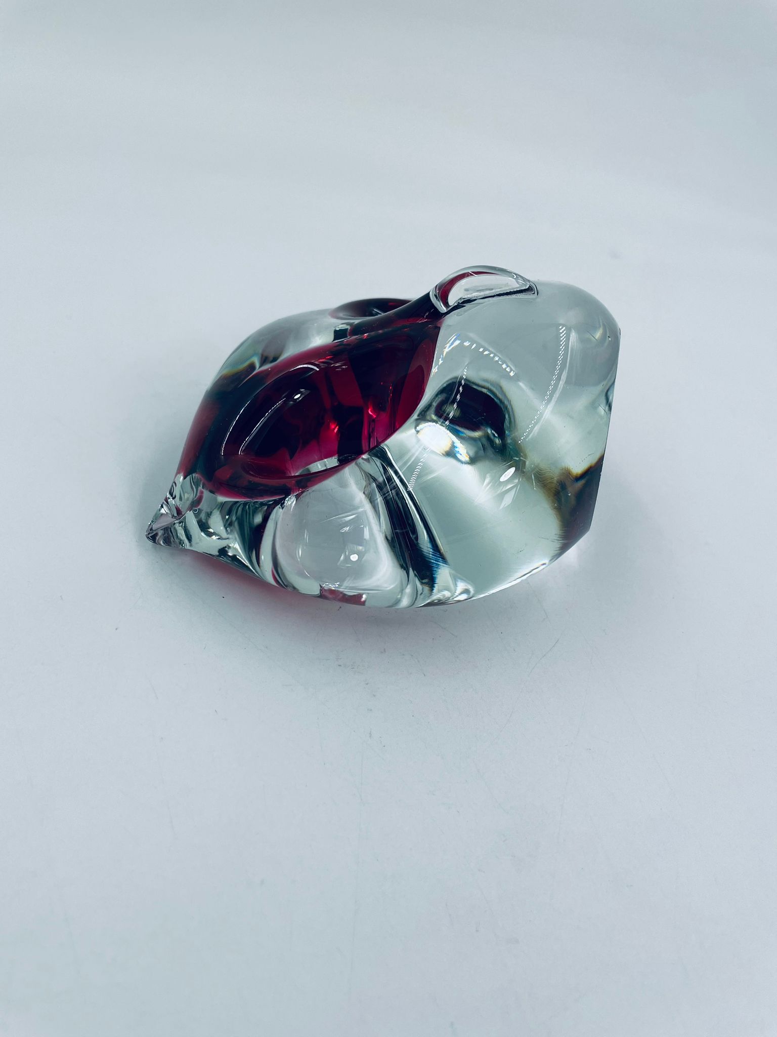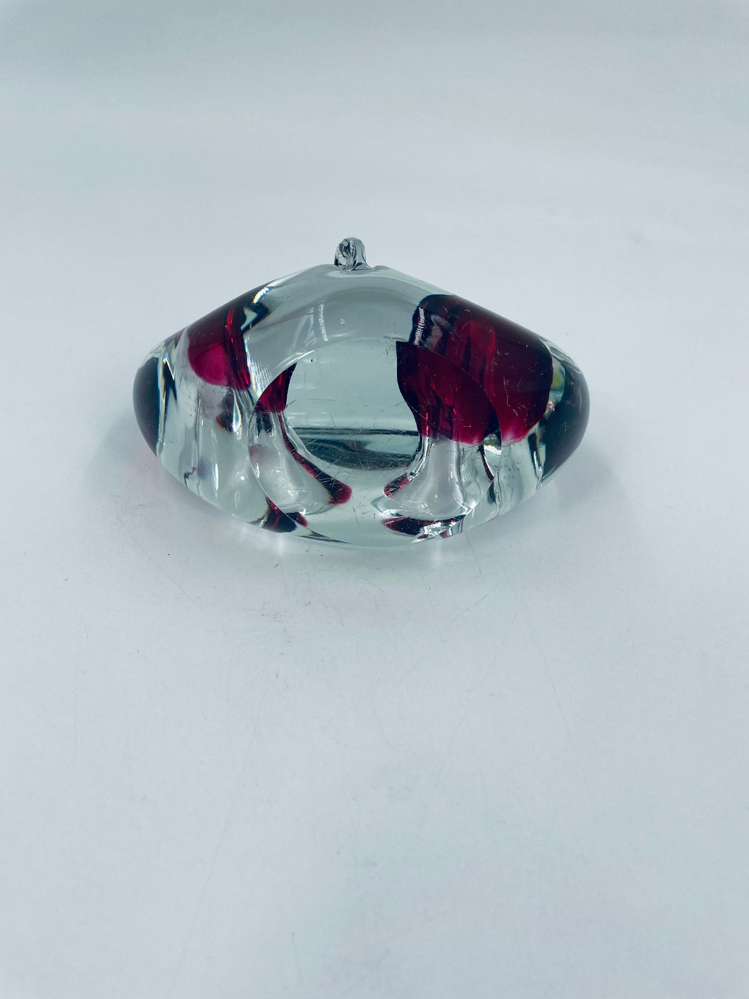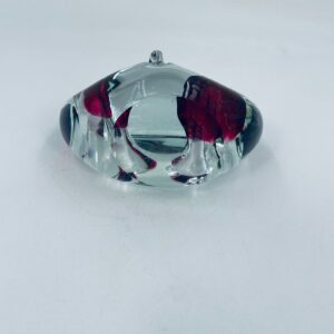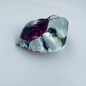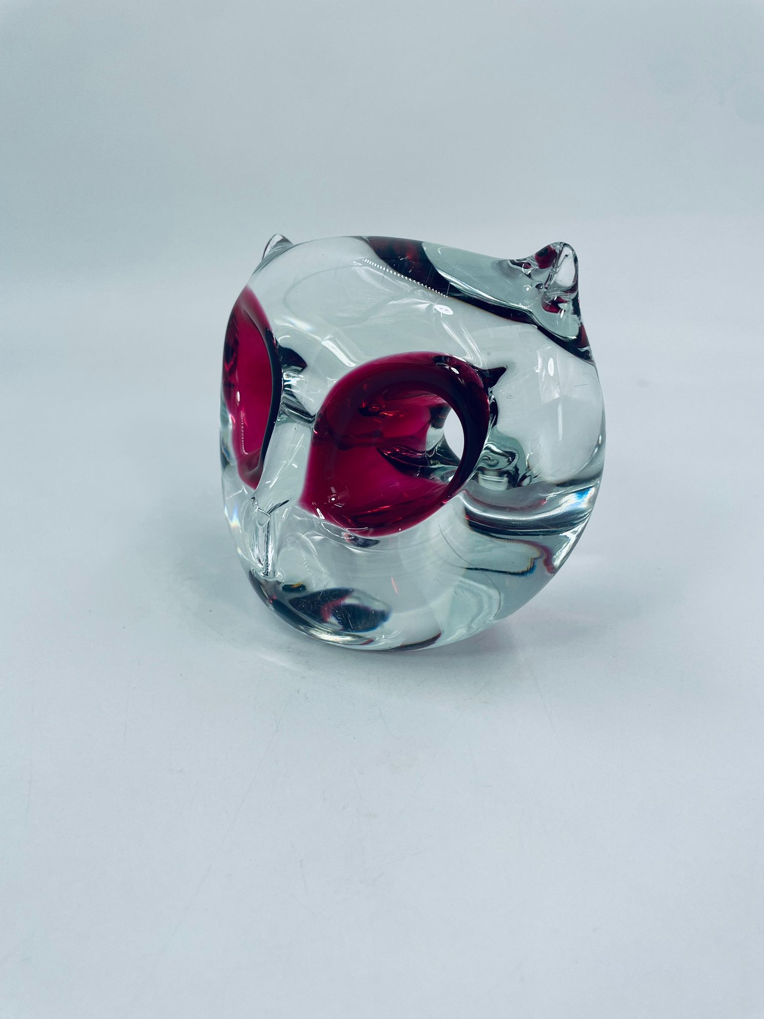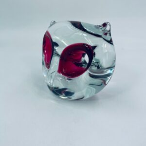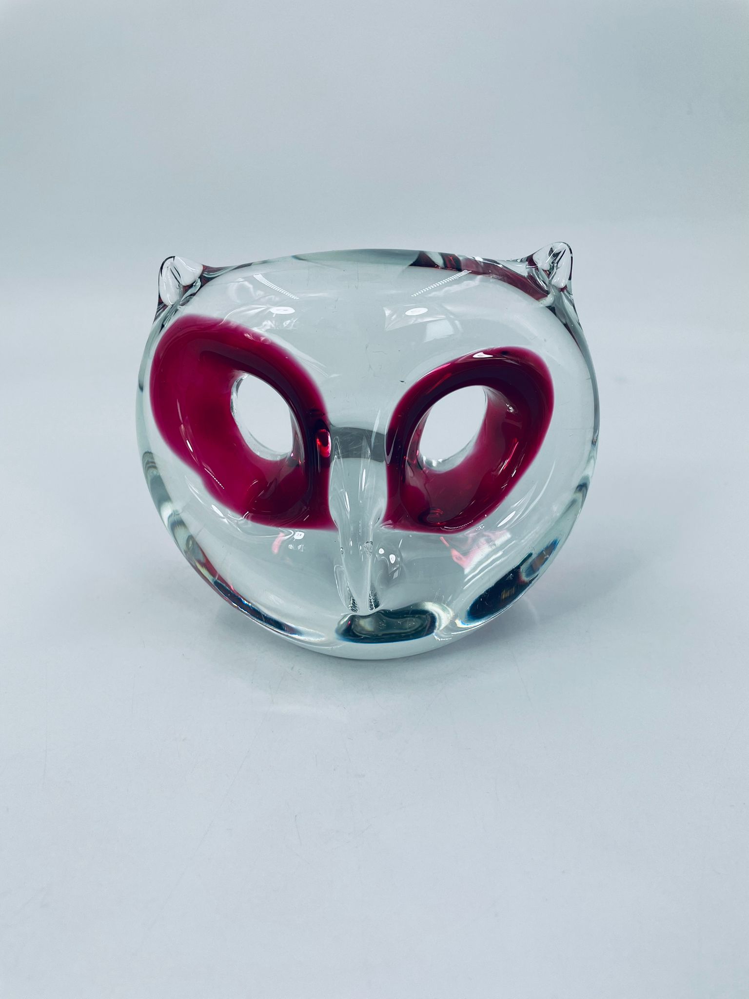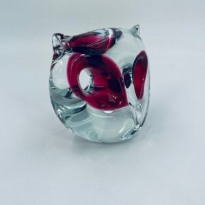 Figurka ma kształt Sowy z przezroczystego szkła artystycznego Murano, z czerwonymi oczami. Przedmiot służy do przycisku papieru, ale również jako element dekoracyjny.