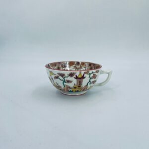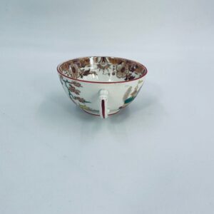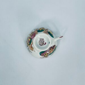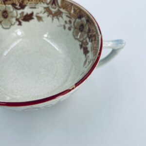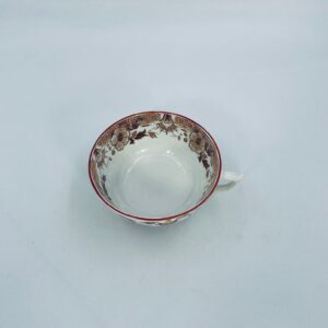 Filiżanka kolekcjonerska, antyczna, francuskiej wytwórni Opaque de Sarreguemines która została założona w 1790r, a filiżanka tego typu datuje się na przełom XIX i XX w. Filiżanka dekorowana ręcznie kolorowa kalkomanią w stylu orientalnym, wykończona na rantach kolorem bordowym. Jedna filiżanka posiada uszczerbek oraz pekciecie szkliwa.
