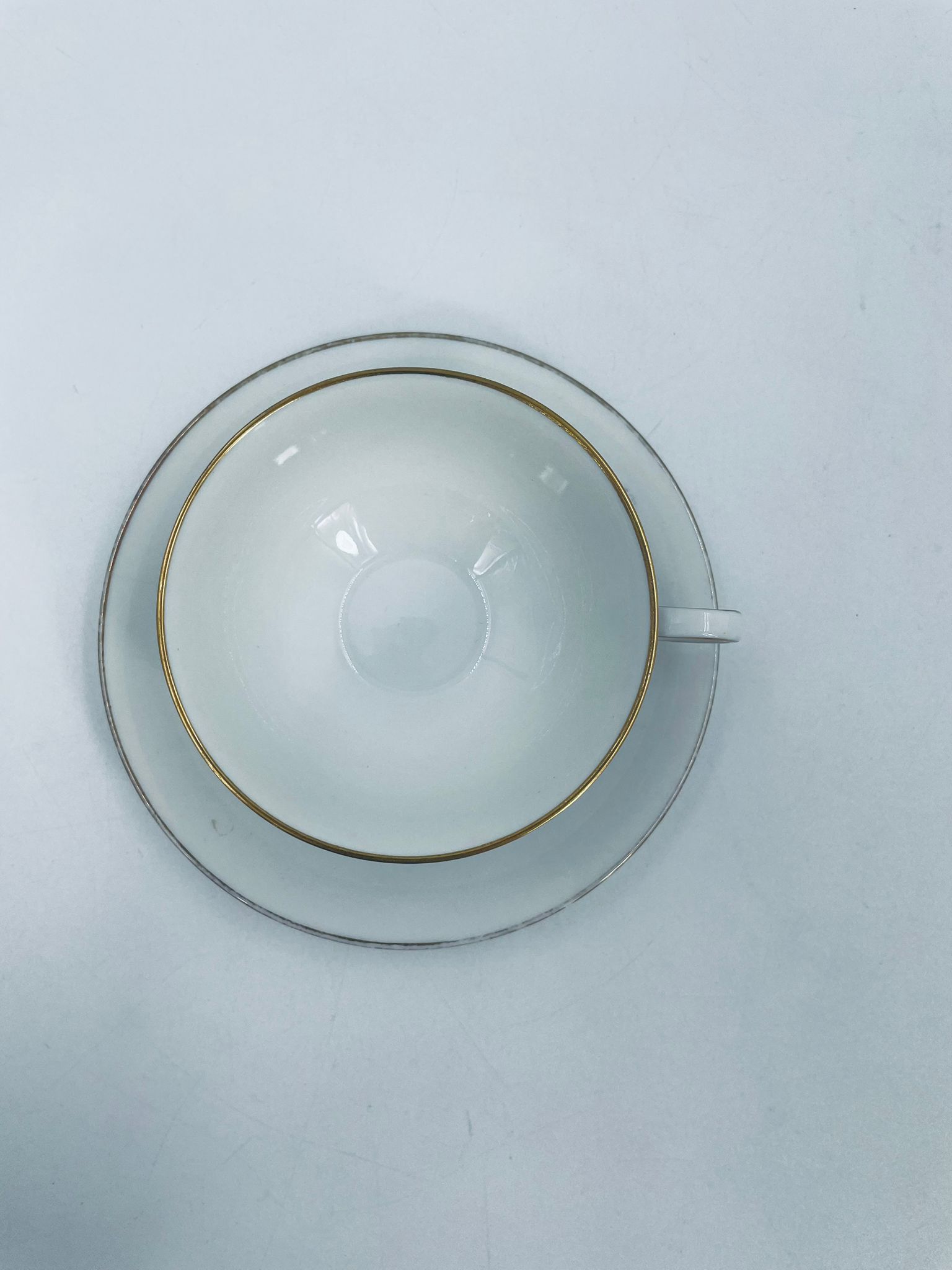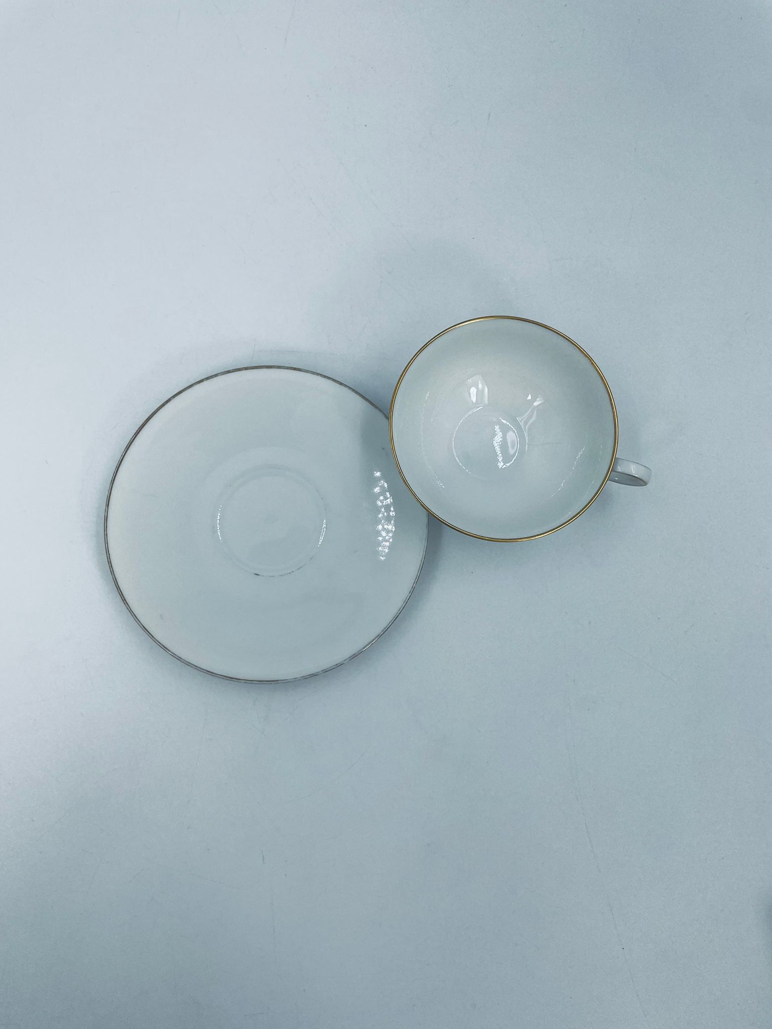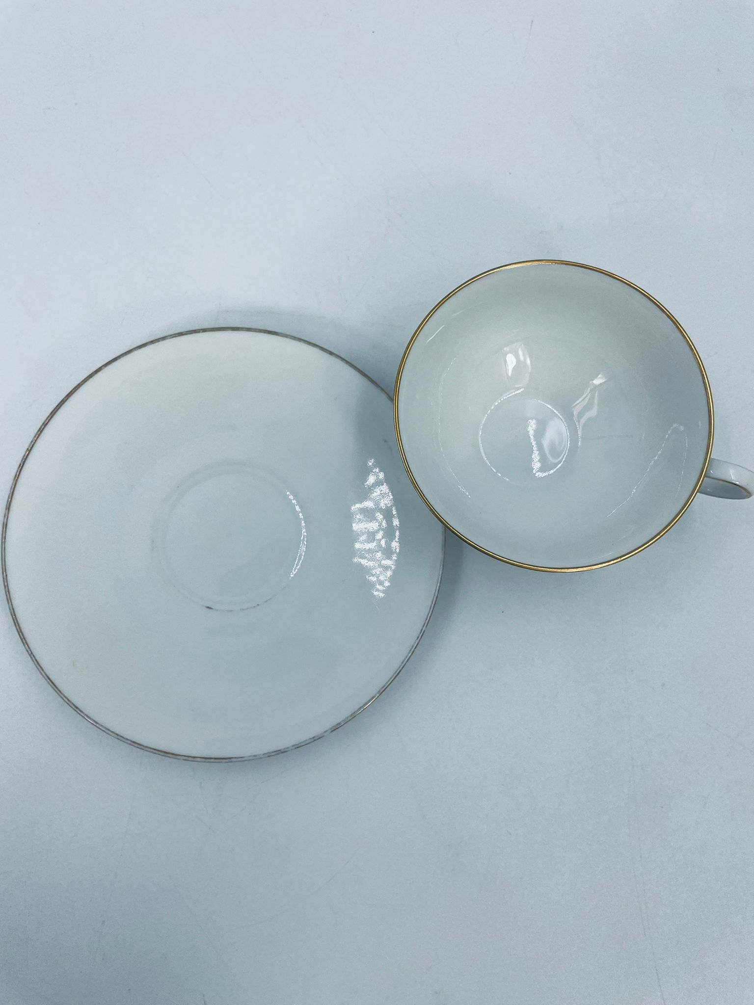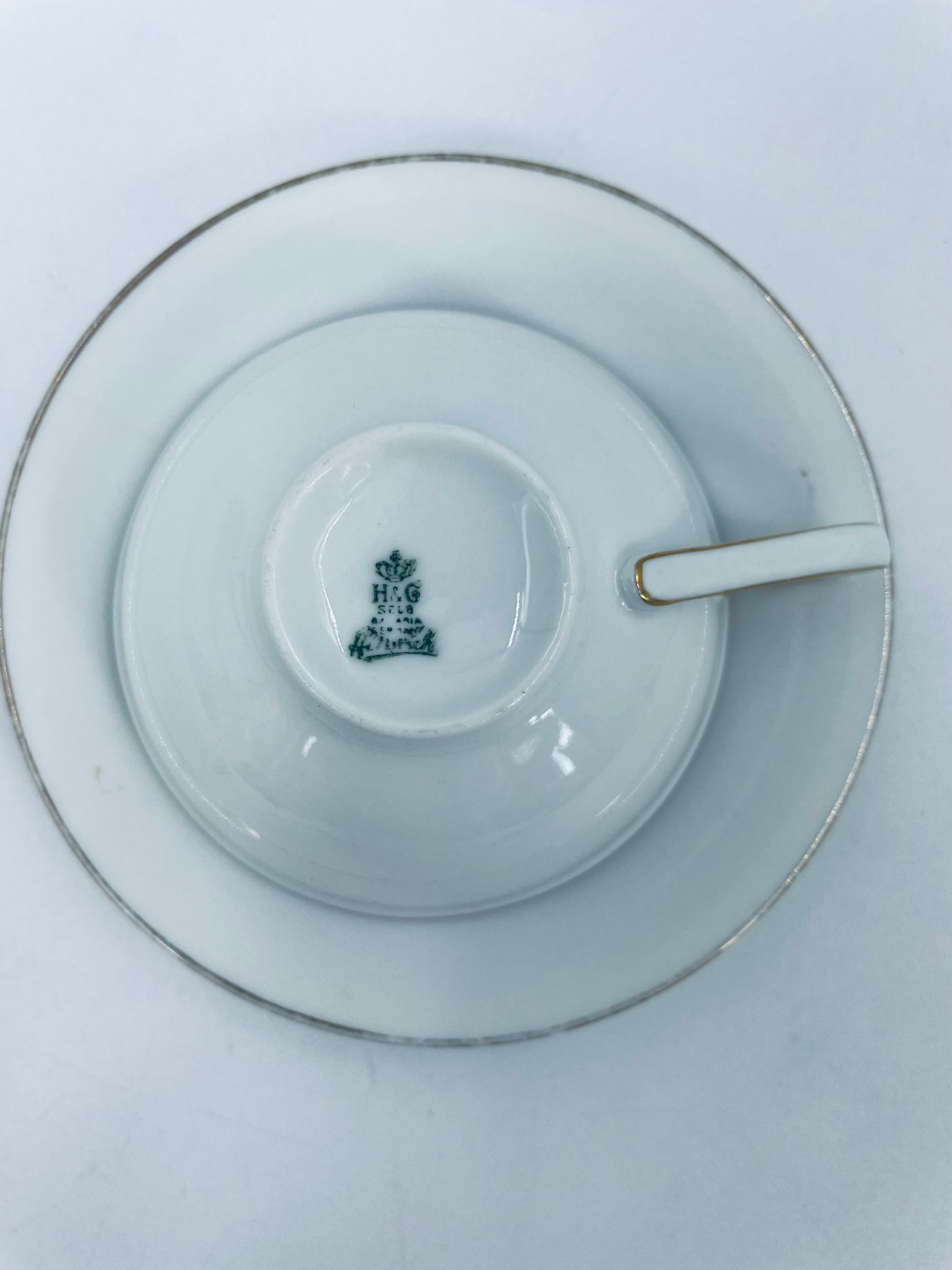 Zestaw duo, filiżanka i spodek wytwórni H&C HEINRICH Selb Bavaria, w kolorze białym z wykończeniem złotym.