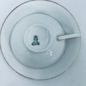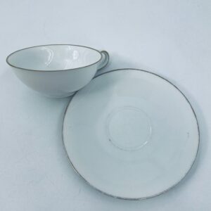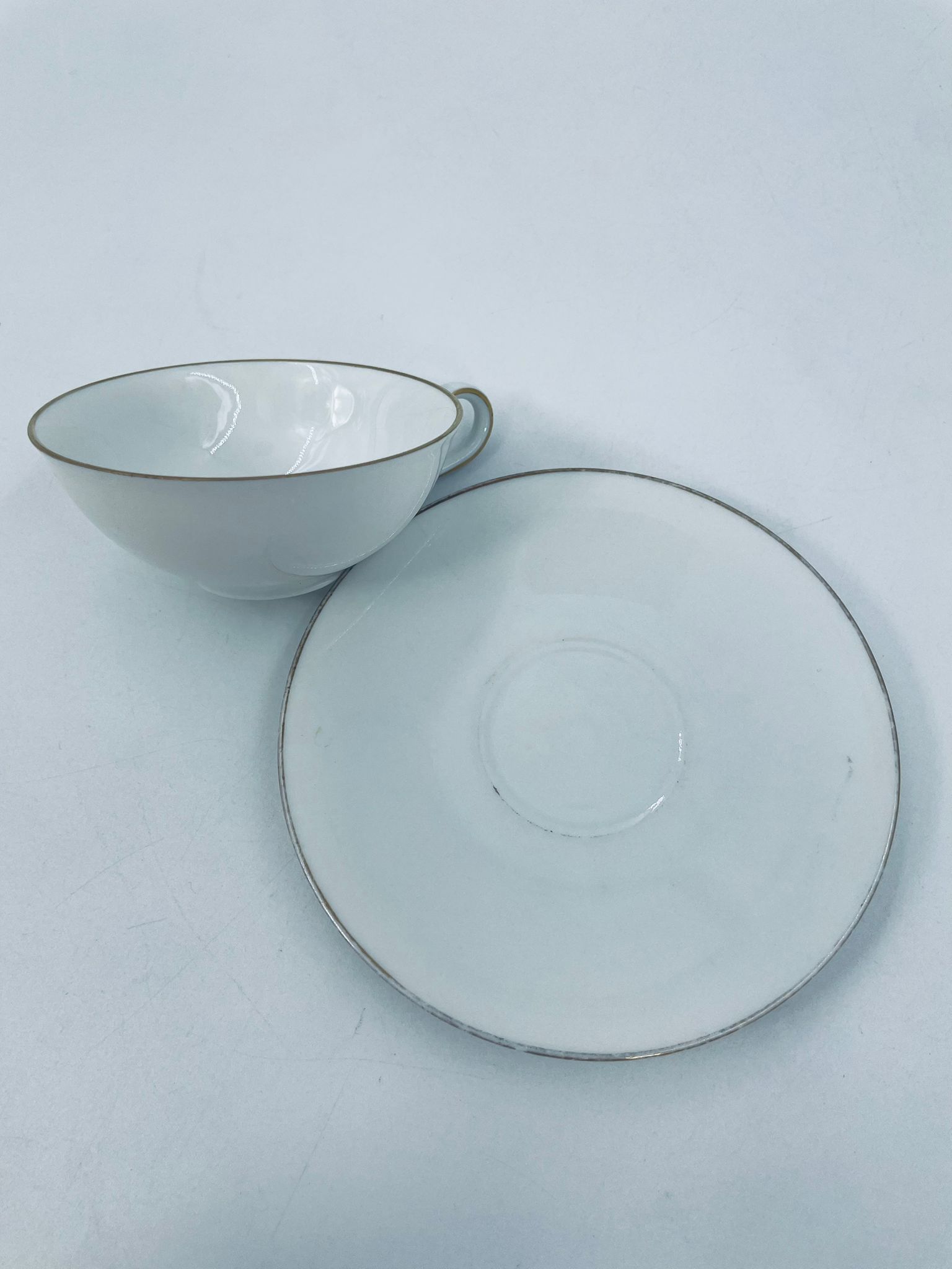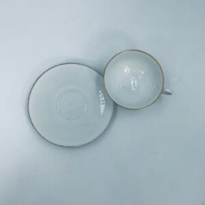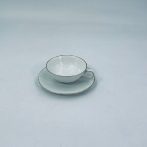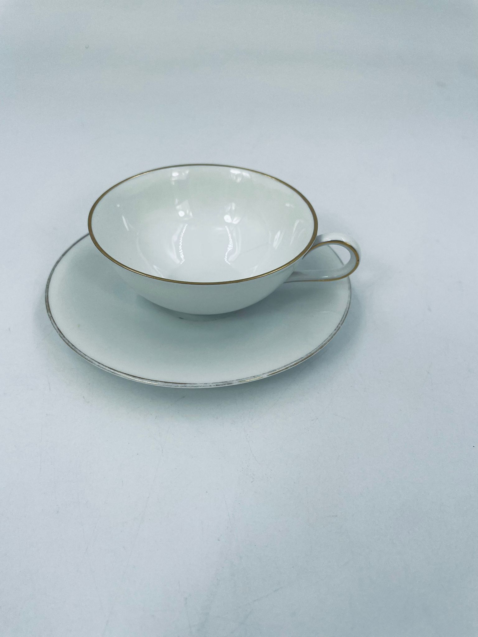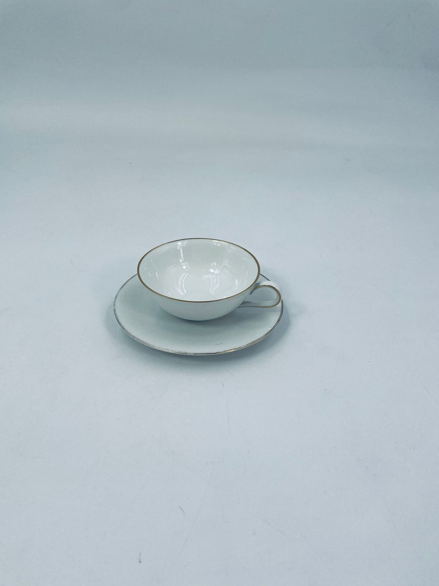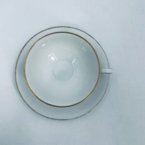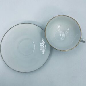 Zestaw duo, filiżanka i spodek wytwórni H&C HEINRICH Selb Bavaria, w kolorze białym z wykończeniem złotym.