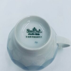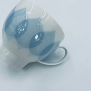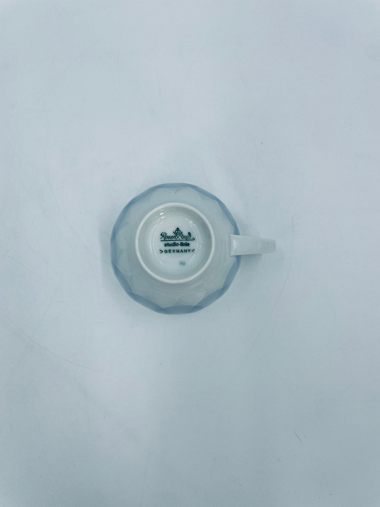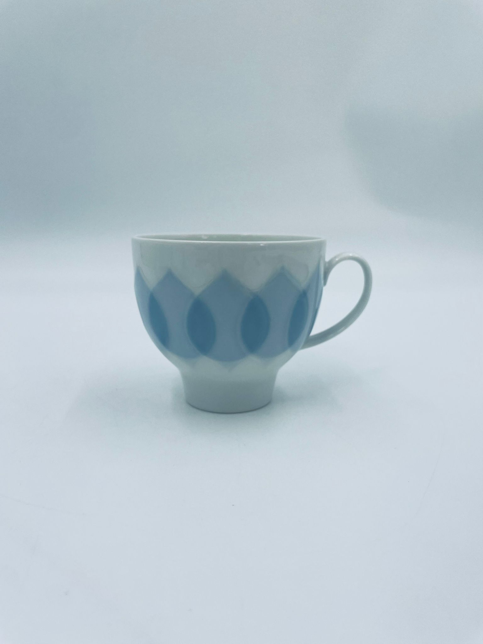 Filiżanka kolekcjonerska do herbaty renomowanej wytwórni Rosenthal Studio Line z serii Lotus Blau , zaprojektowana przez duńskiego artystę Bjorna Wiinblada w 1964r, wykonana z najwyższej jakości białej porcelany. Filiżanka ozdobiona wzorem „Blau”, charakteryzuje się delikatnym, geometrycznym motywem przypominający liście lotosu w niebieskim odcieniu.
