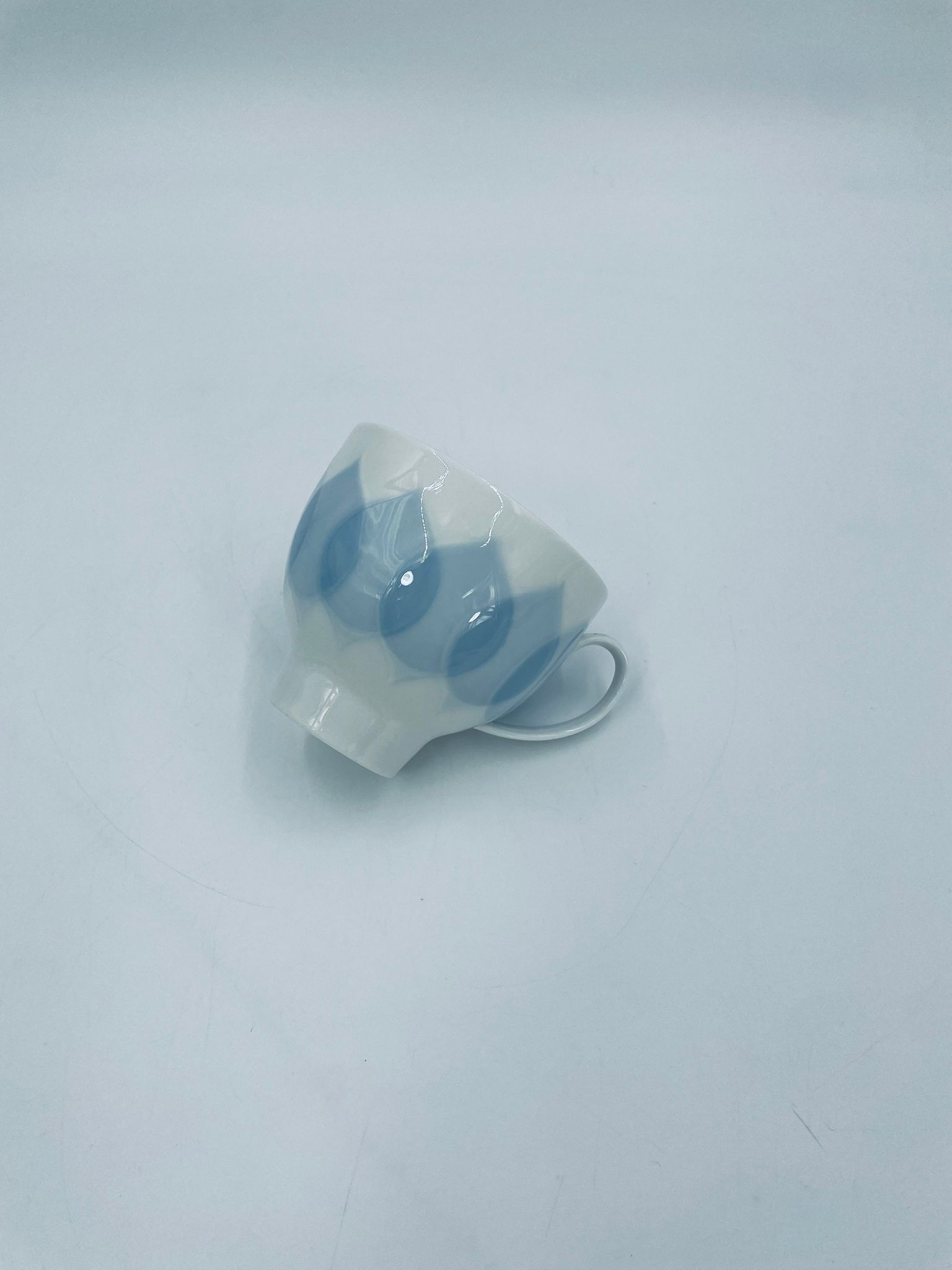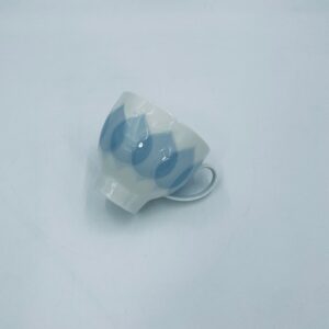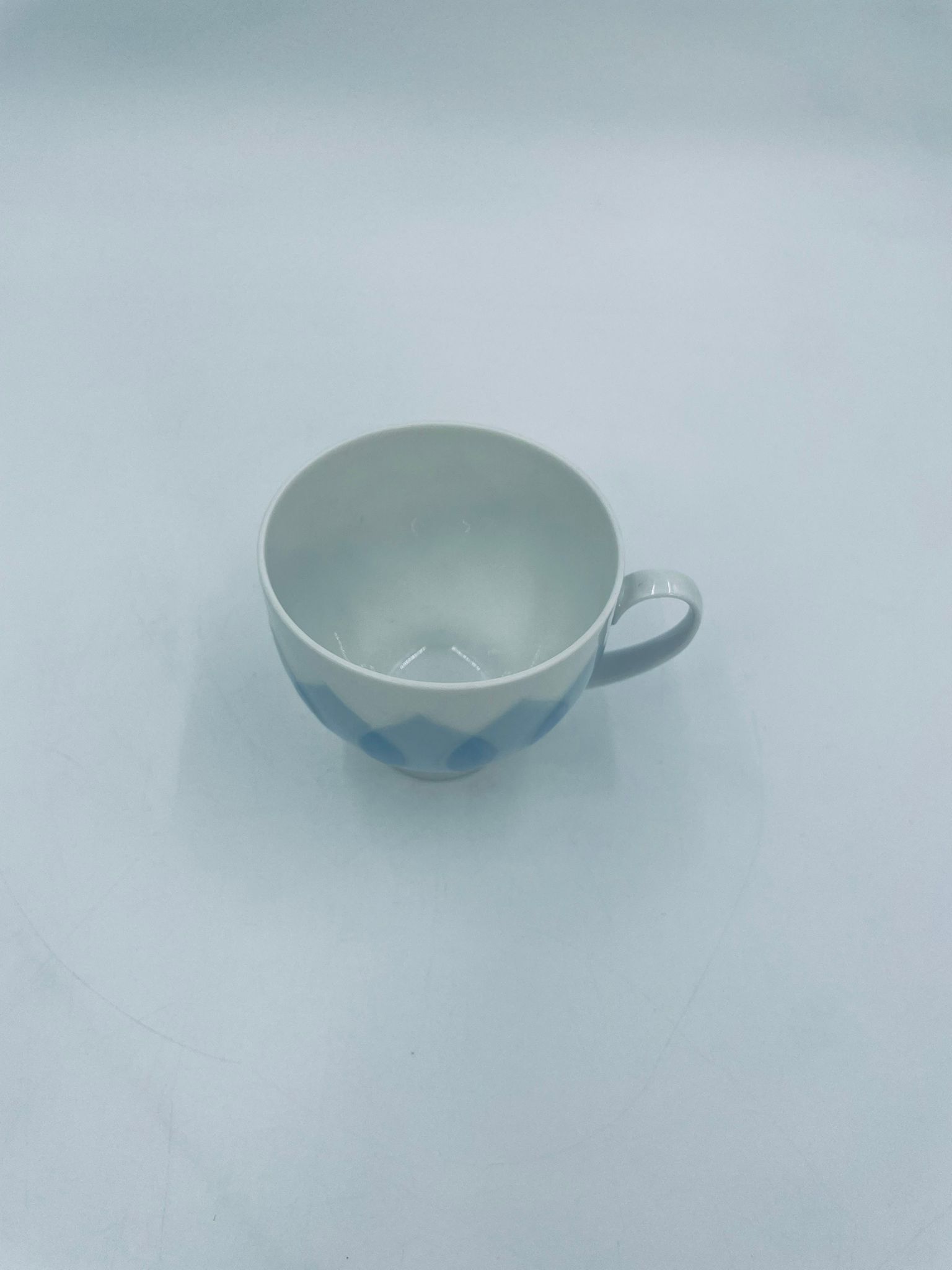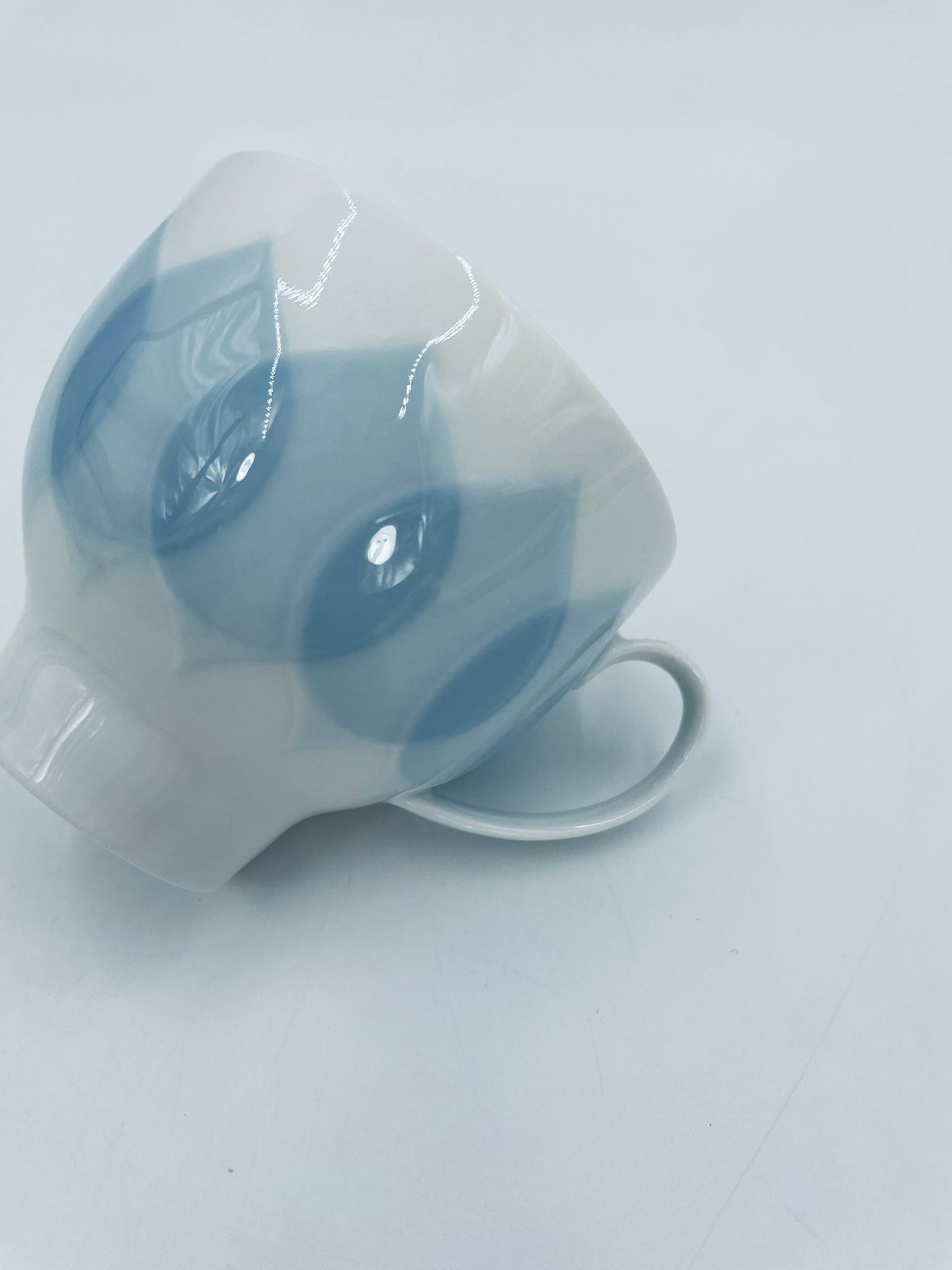 Filiżanka kolekcjonerska do herbaty renomowanej wytwórni Rosenthal Studio Line z serii Lotus Blau , zaprojektowana przez duńskiego artystę Bjorna Wiinblada w 1964r, wykonana z najwyższej jakości białej porcelany. Filiżanka ozdobiona wzorem „Blau”, charakteryzuje się delikatnym, geometrycznym motywem przypominający liście lotosu w niebieskim odcieniu.