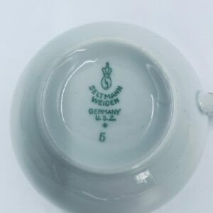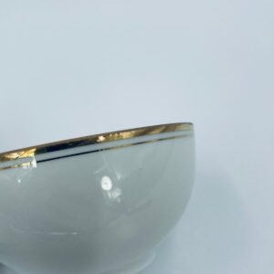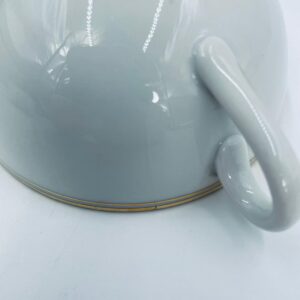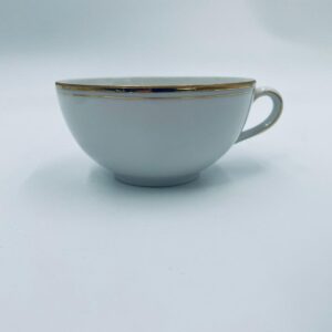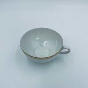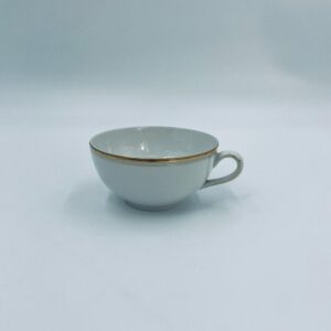 Filiżanka kolekcjonerska wytwórni Seltmann Weiden, wykonana z wysokiej jakości białej porcelany. Filiżanka klasyczna, ozdobiona złotym pasem przy górnej krawędzi. Posiada przetarcie na złoceniu i pęknięcie.