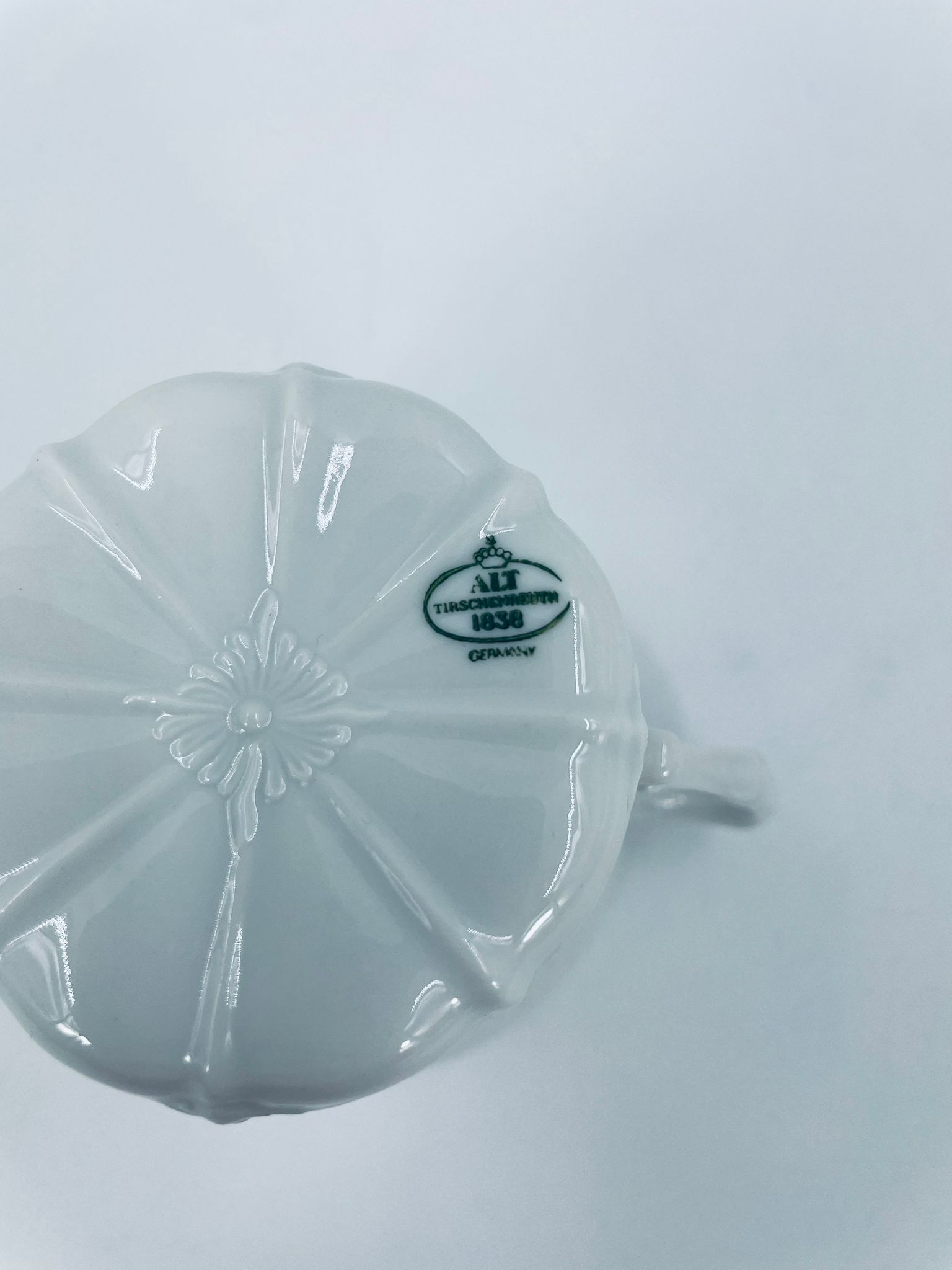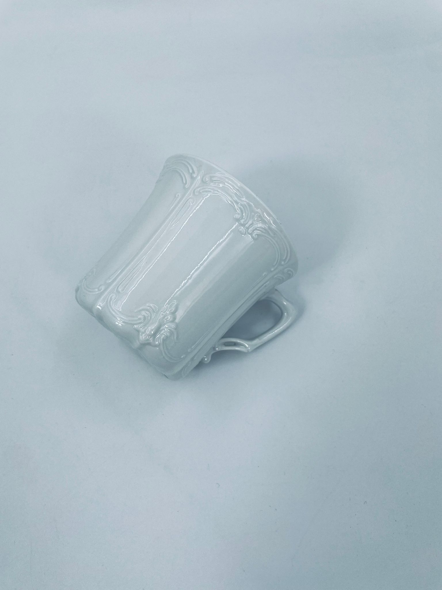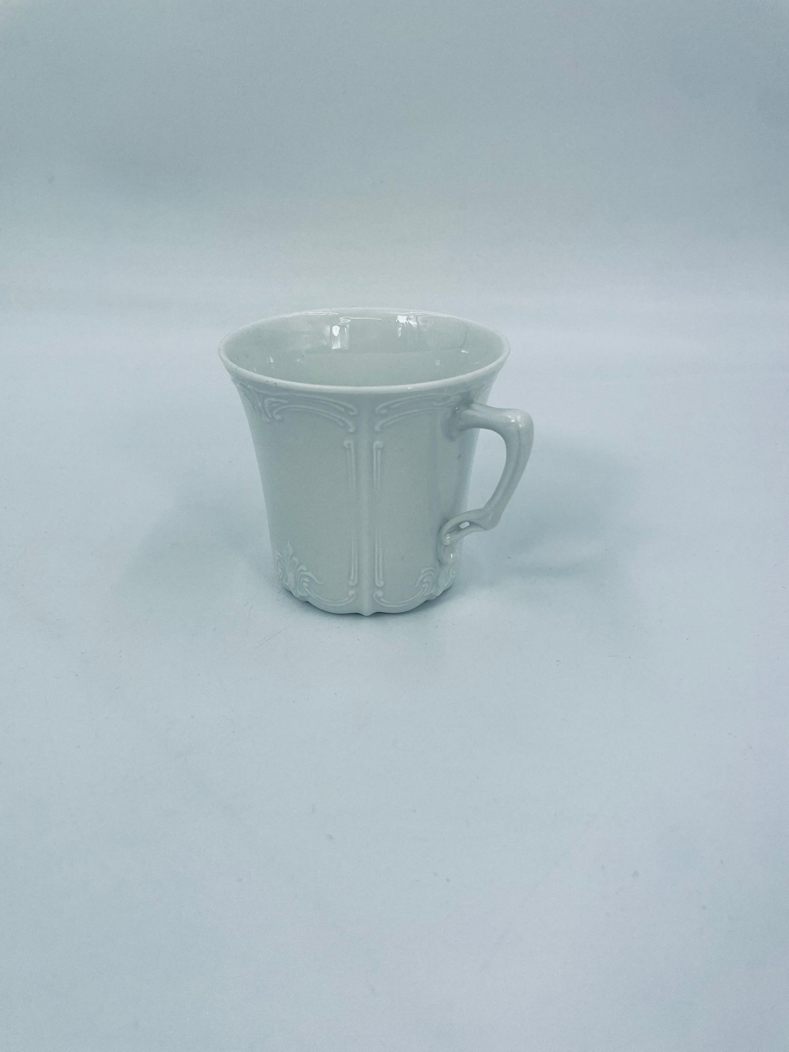 Filiżanka kolekcjonerska wytwórni Tirschenreuth wykonana z wysokiej jakości białej porcelany. Filiżanka charakteryzuje się ozdobnymi reliefami oraz ozdobnym uchwytem.