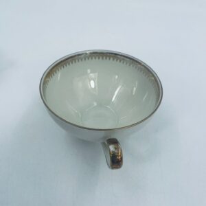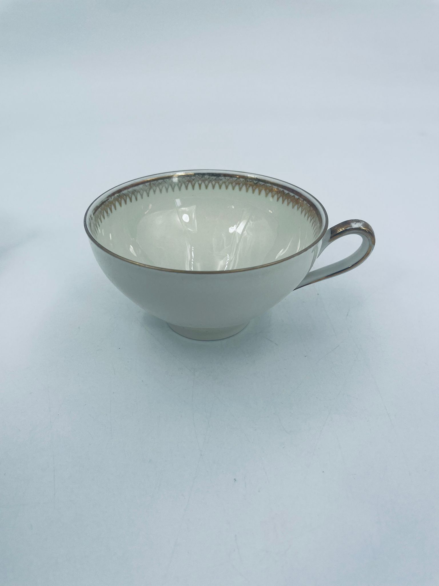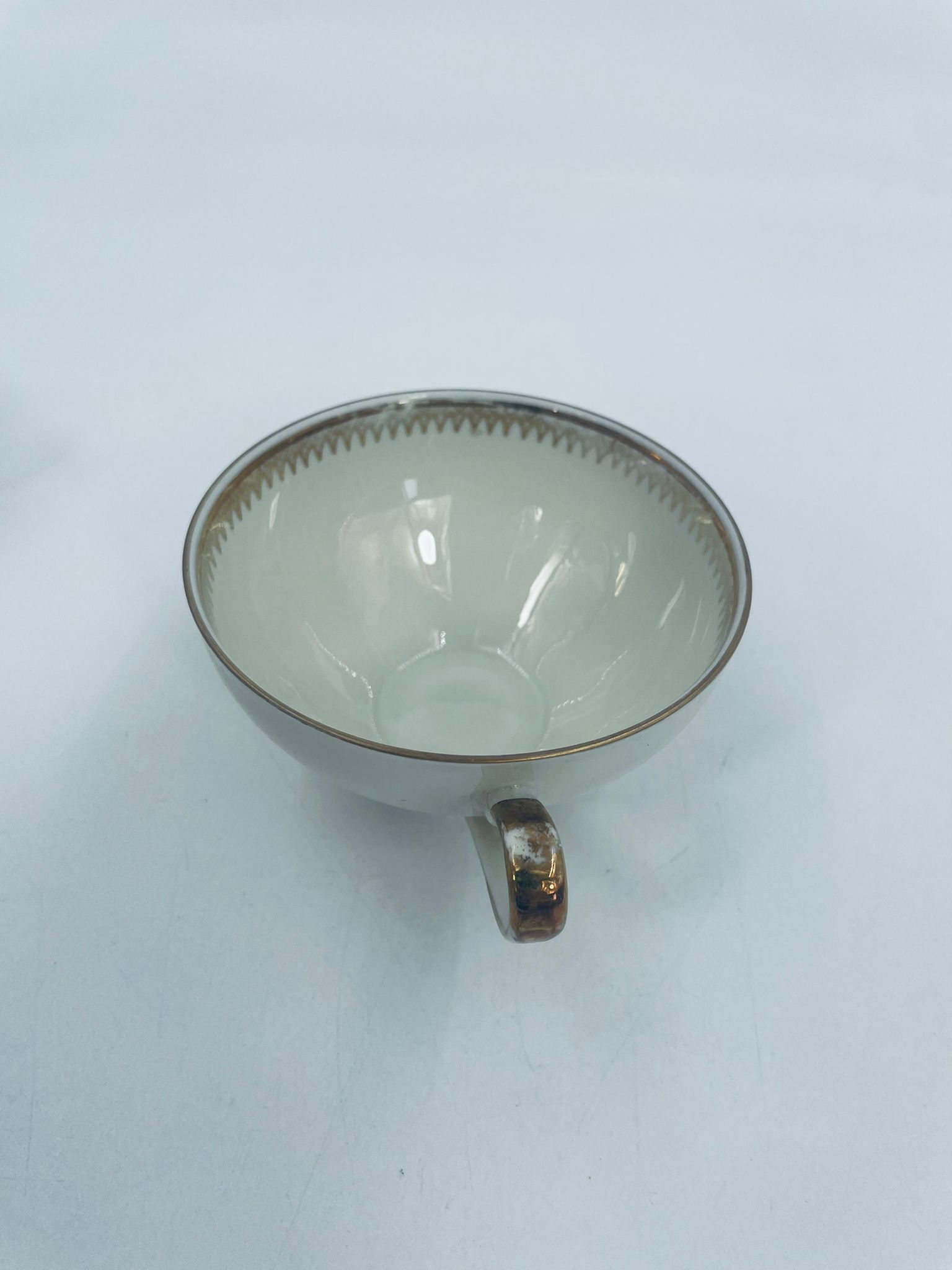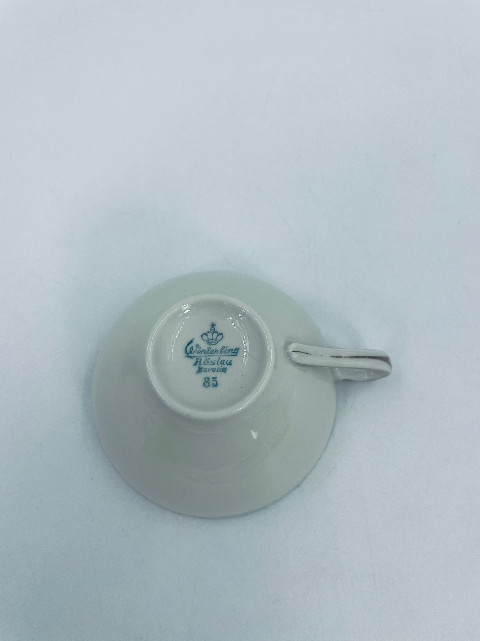 Filiżanka kolekcjonerska wytwórni Winterling Röslau Bavaria. Filiżanka porcelanowa w kolorze ecru ze złotymi zdobieniami w środku filiżanki , w jej górnej części. Filiżanka posiada przetarcia na złoceniach.
