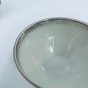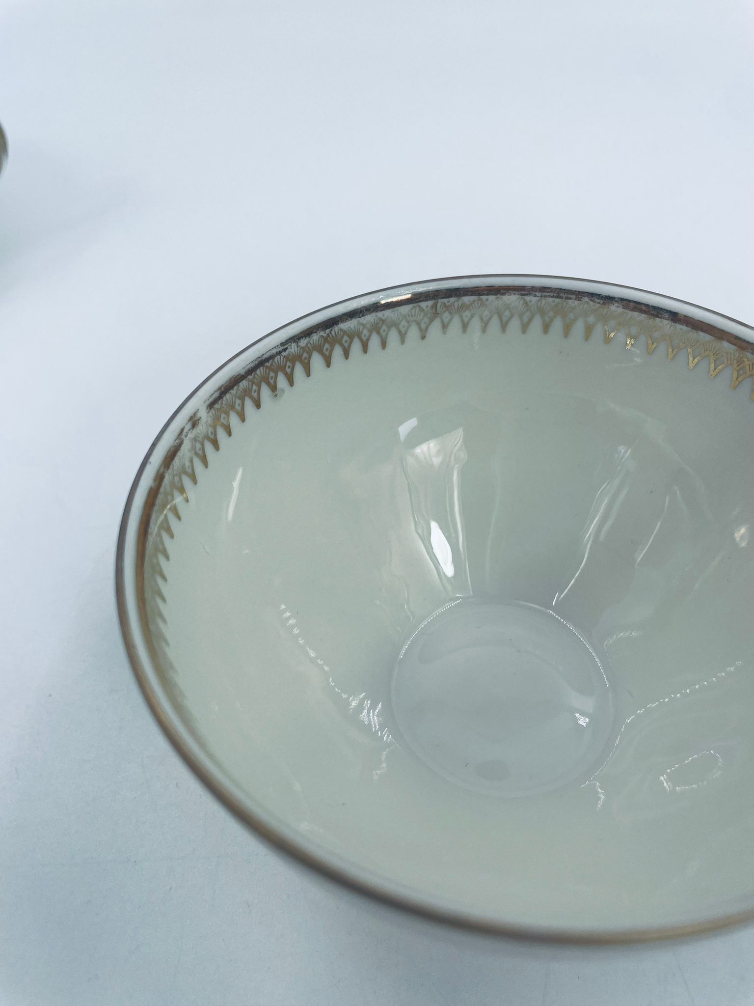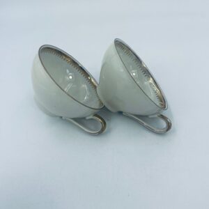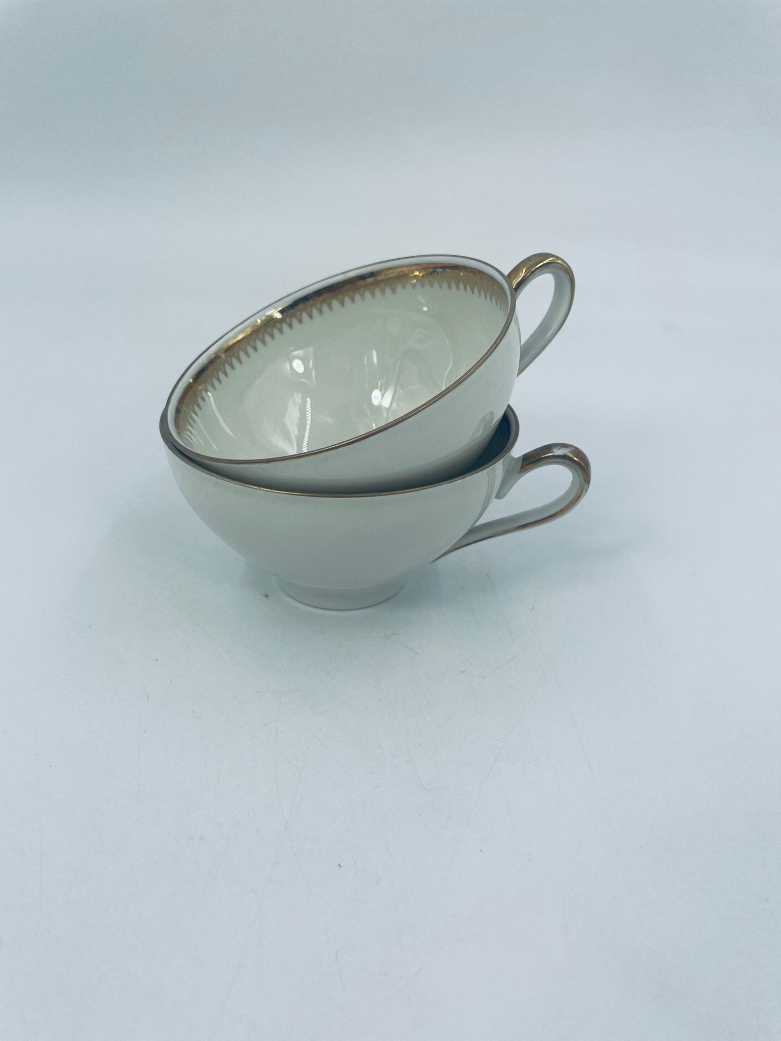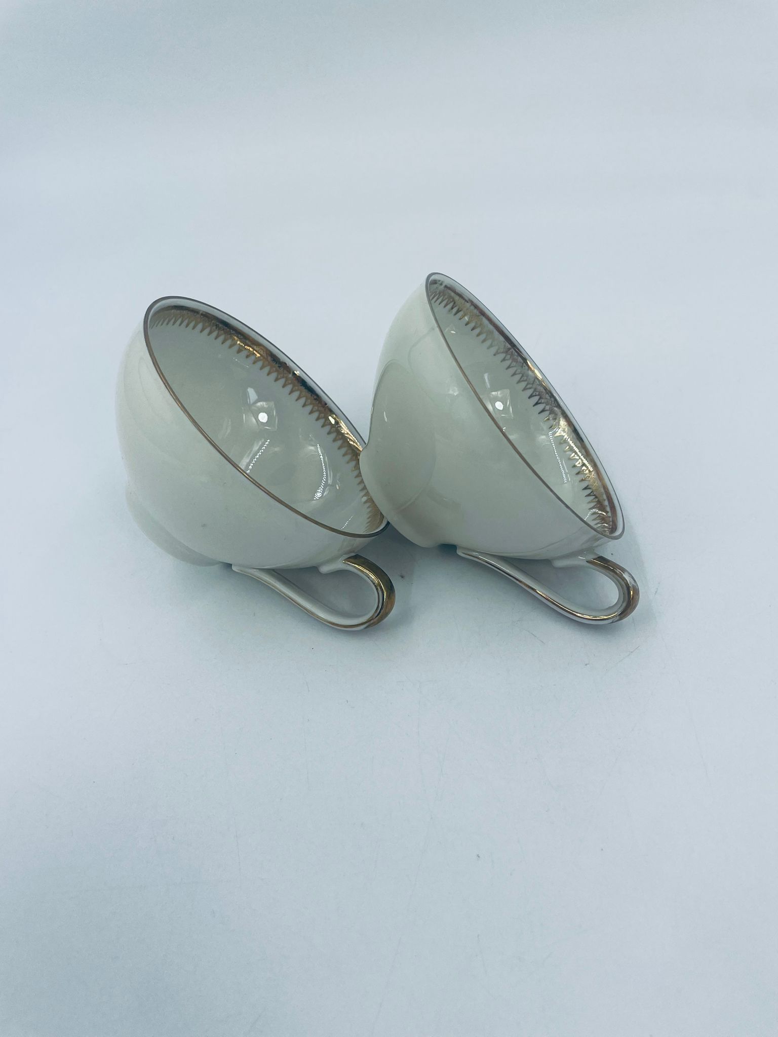 Filiżanka kolekcjonerska wytwórni Winterling Röslau Bavaria. Filiżanka porcelanowa w kolorze ecru ze złotymi zdobieniami w środku filiżanki , w jej górnej części. Filiżanka posiada przetarcia na złoceniach.