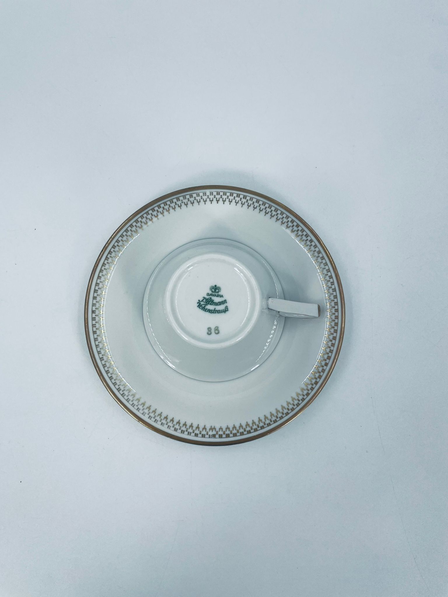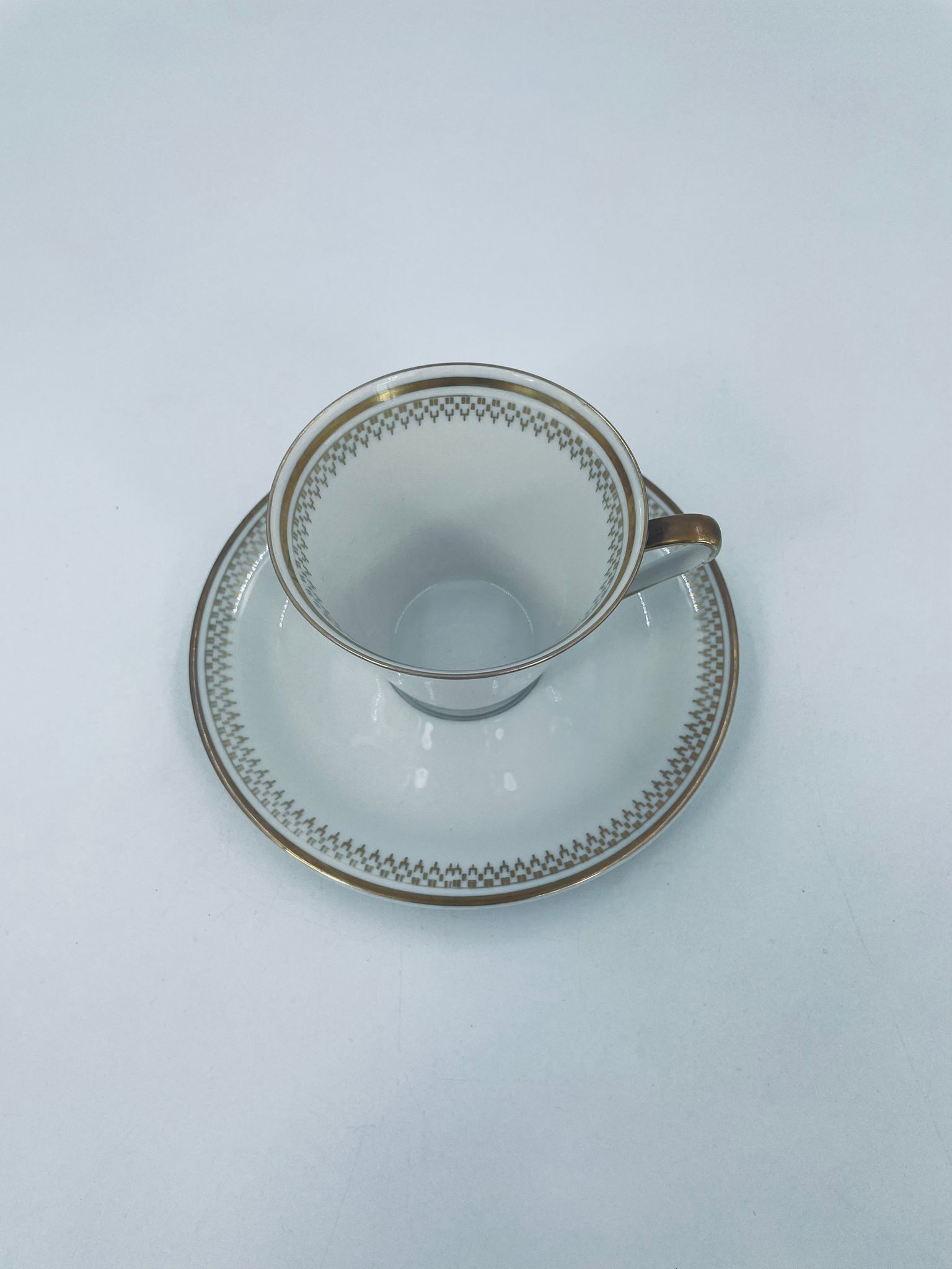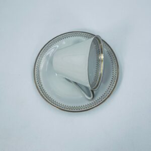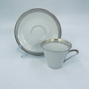 Filiżanka w zestawie duo wytwórni J Seltmann Vohenstraus z roku 1814 . Wysokiej jakości porcelana w kolorze białym z dekoracją w kolorze złotym.