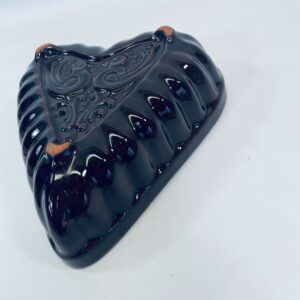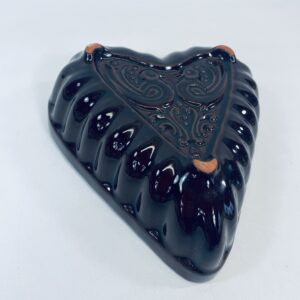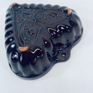 Foremka ceramiczna w kształcie serca w brązowym kolorze.