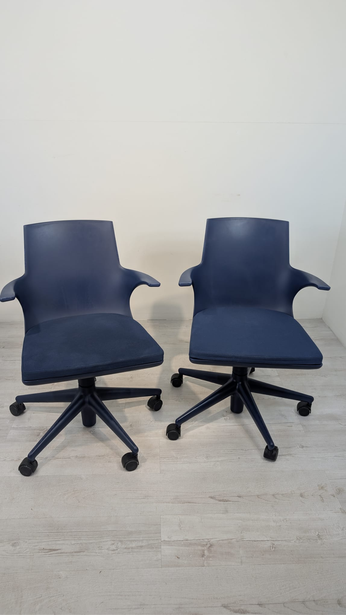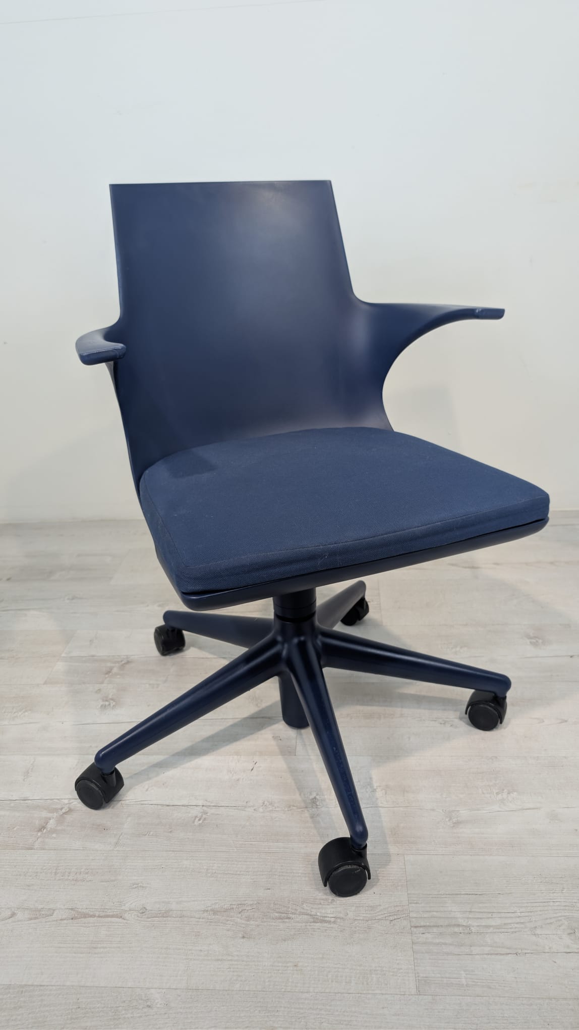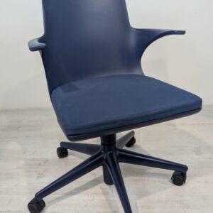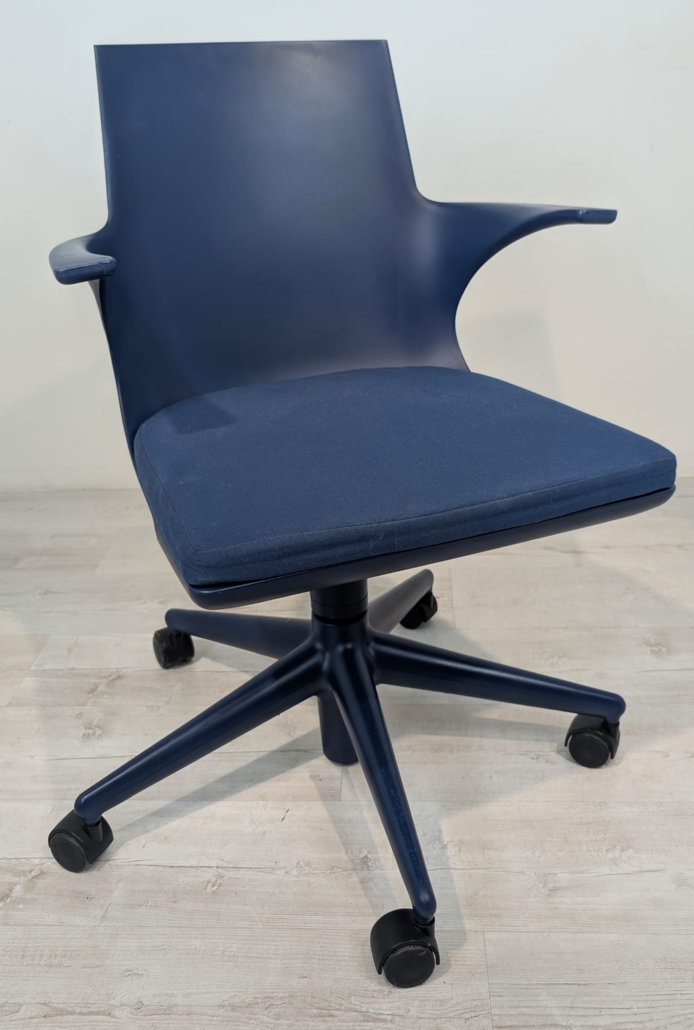 Stylowy, obrotowy fotel biurowy Kartell Spoon w kolorze granatowym.