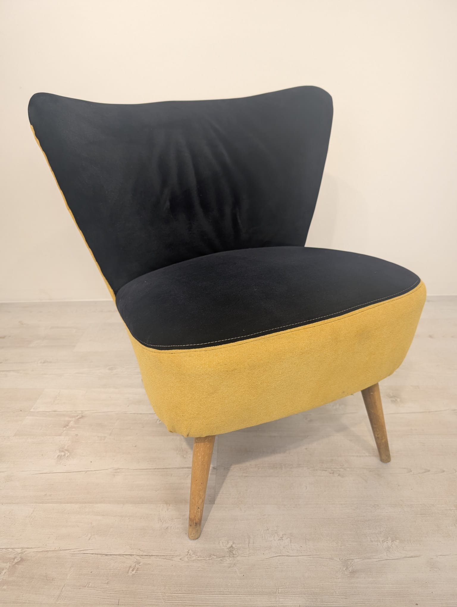 Fotel koktajlowy vintage z czasów PRL-u na sprężynach