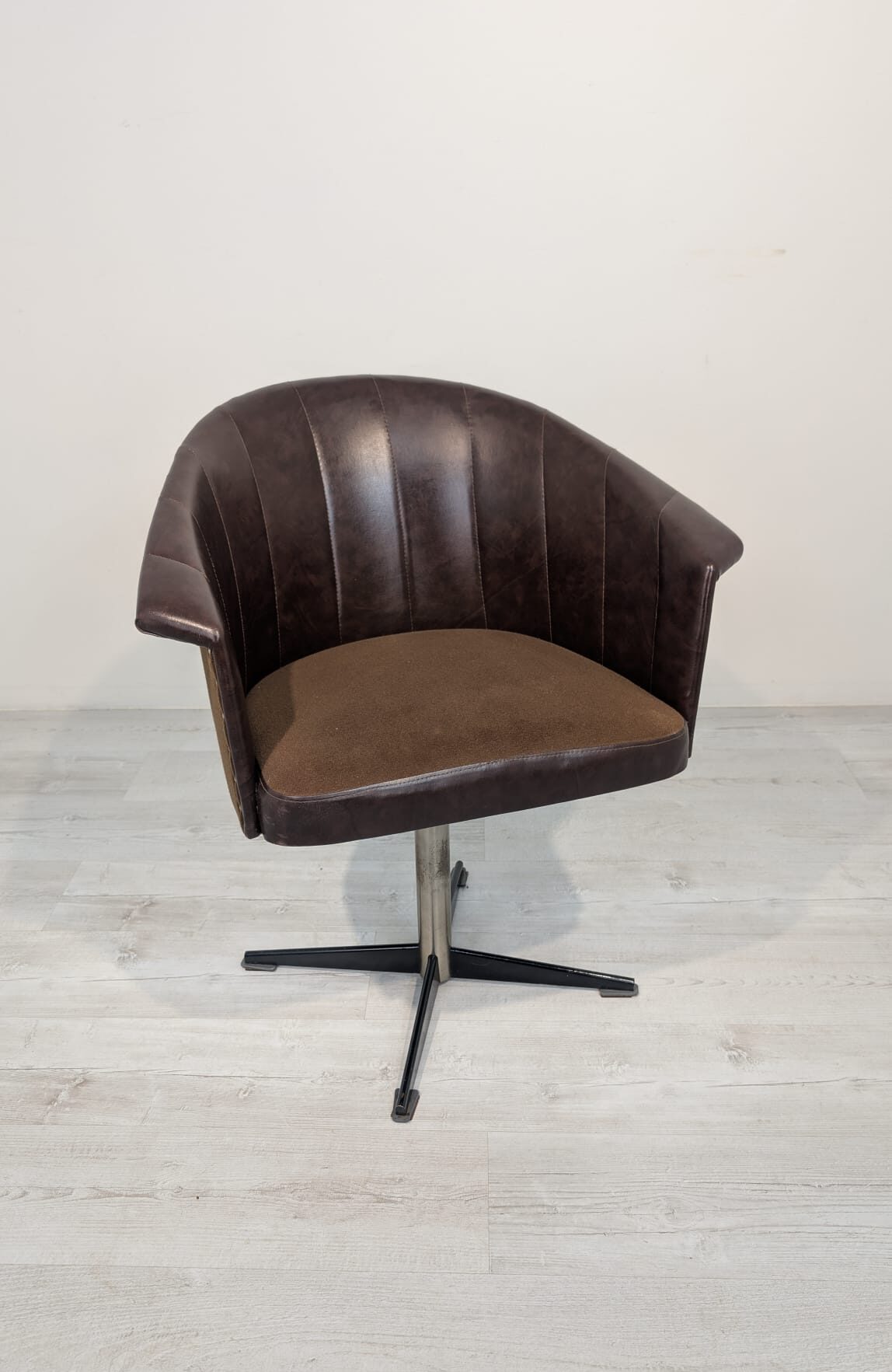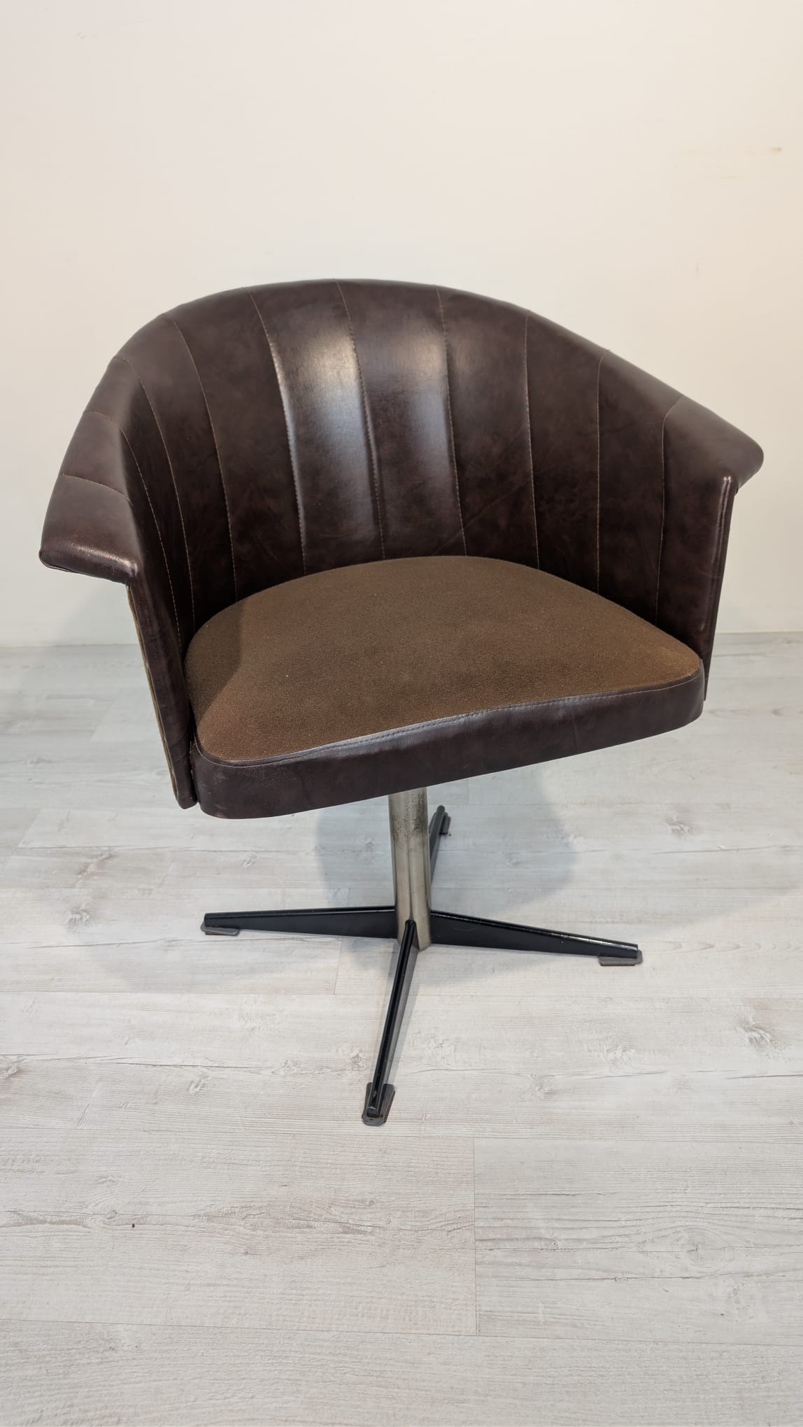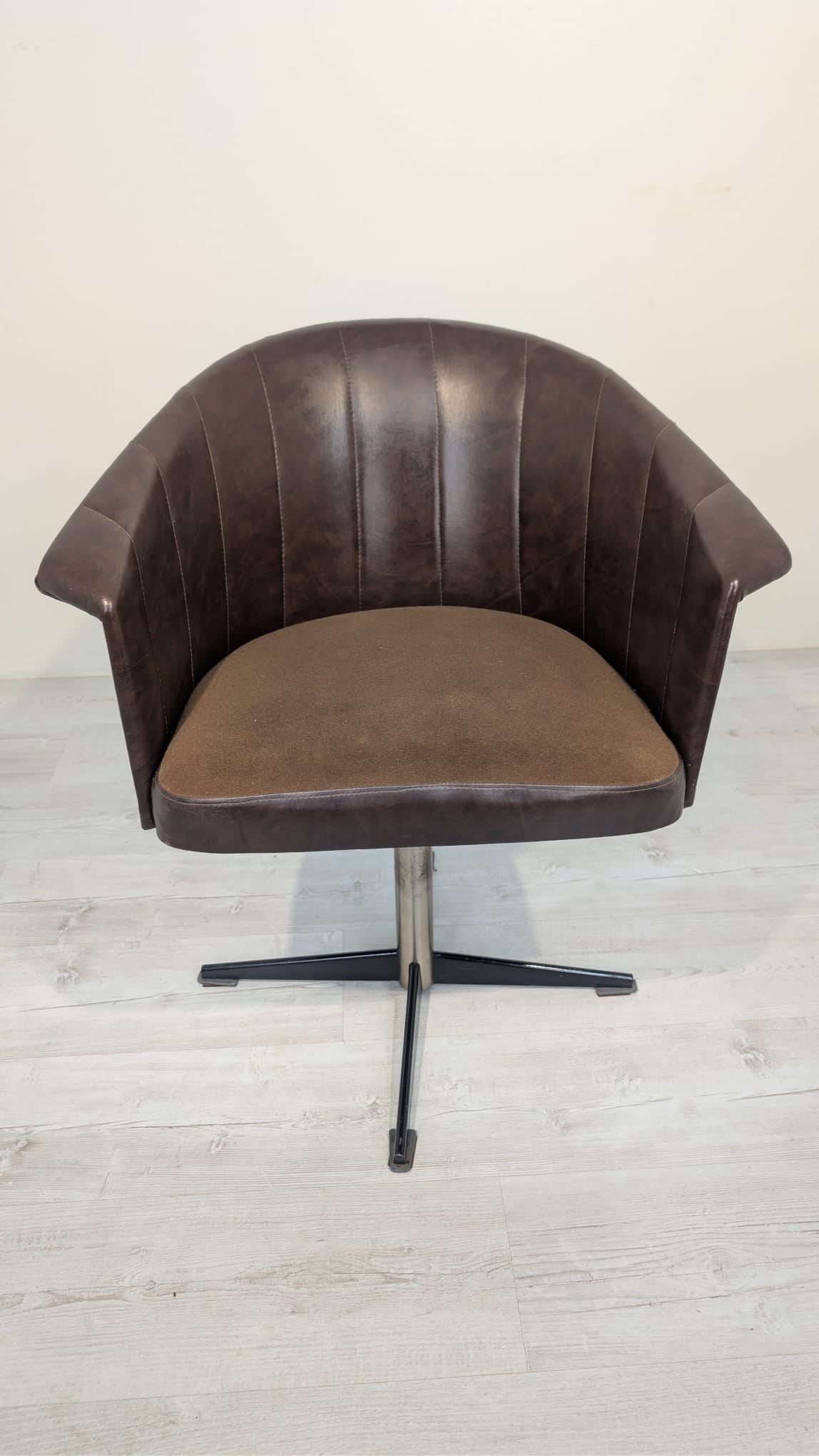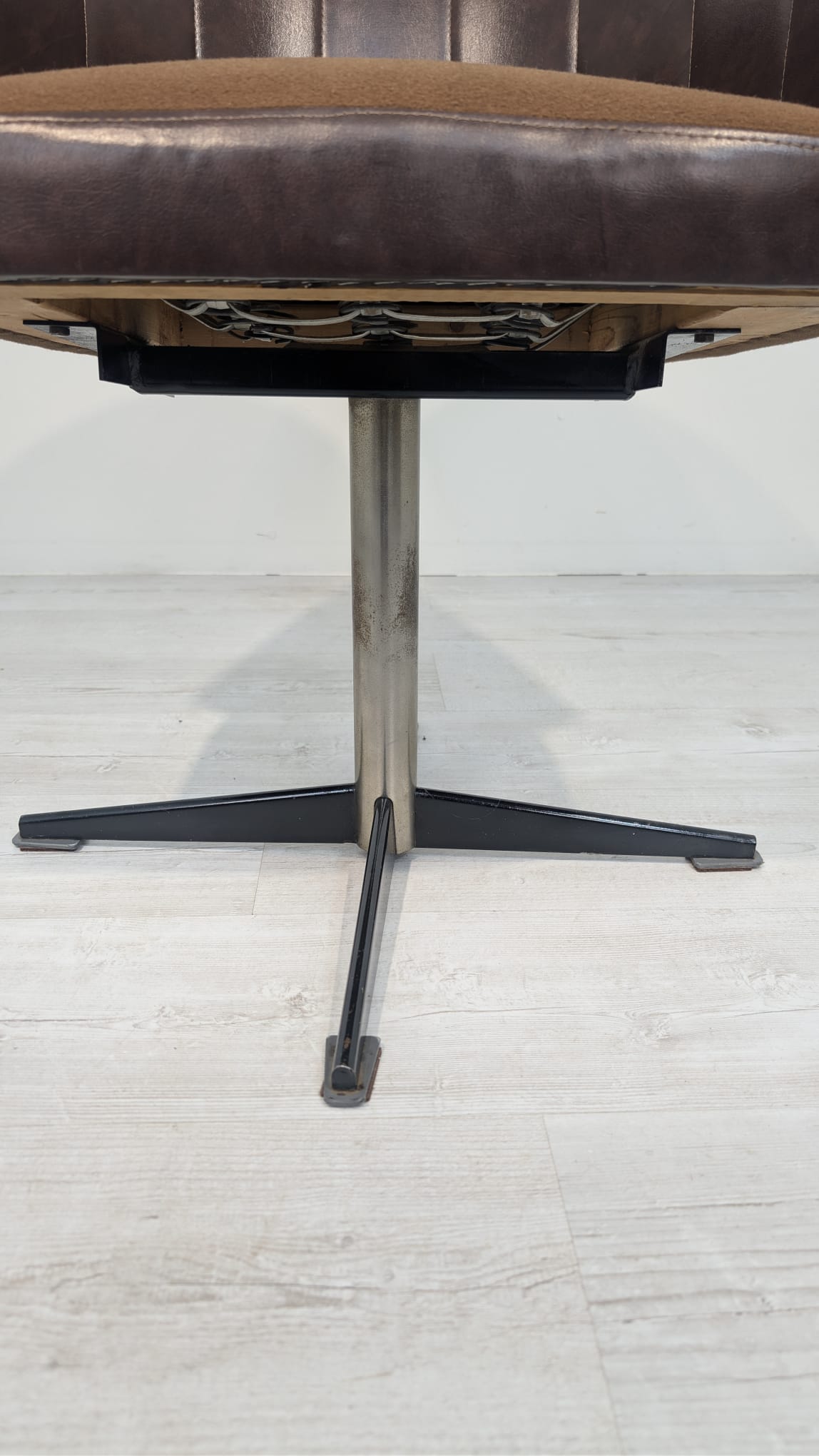 Fotel obrotowy designe, skóra naturalna, na sprężynach z lat 60-tych