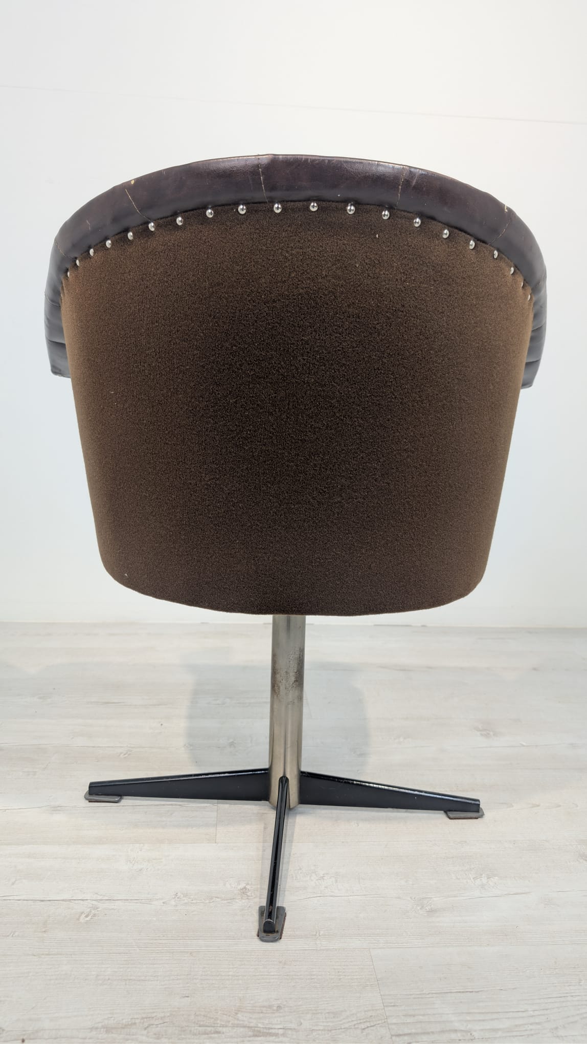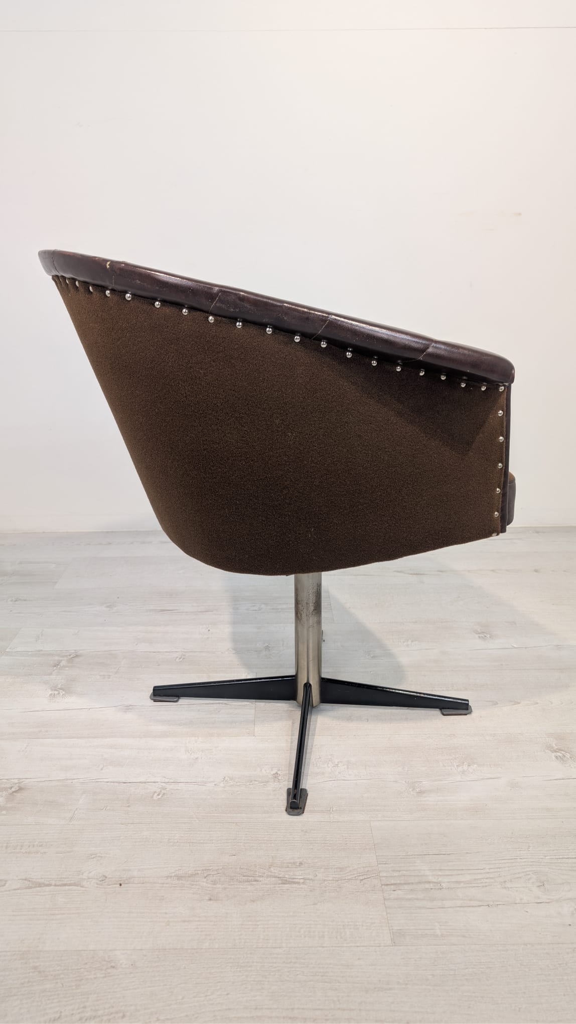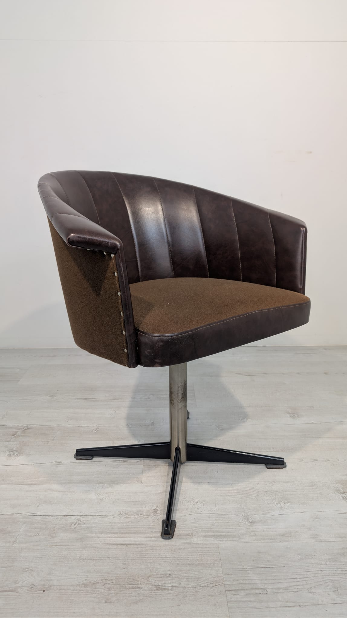 Fotel obrotowy designe, skóra naturalna, na sprężynach z lat 60-tych