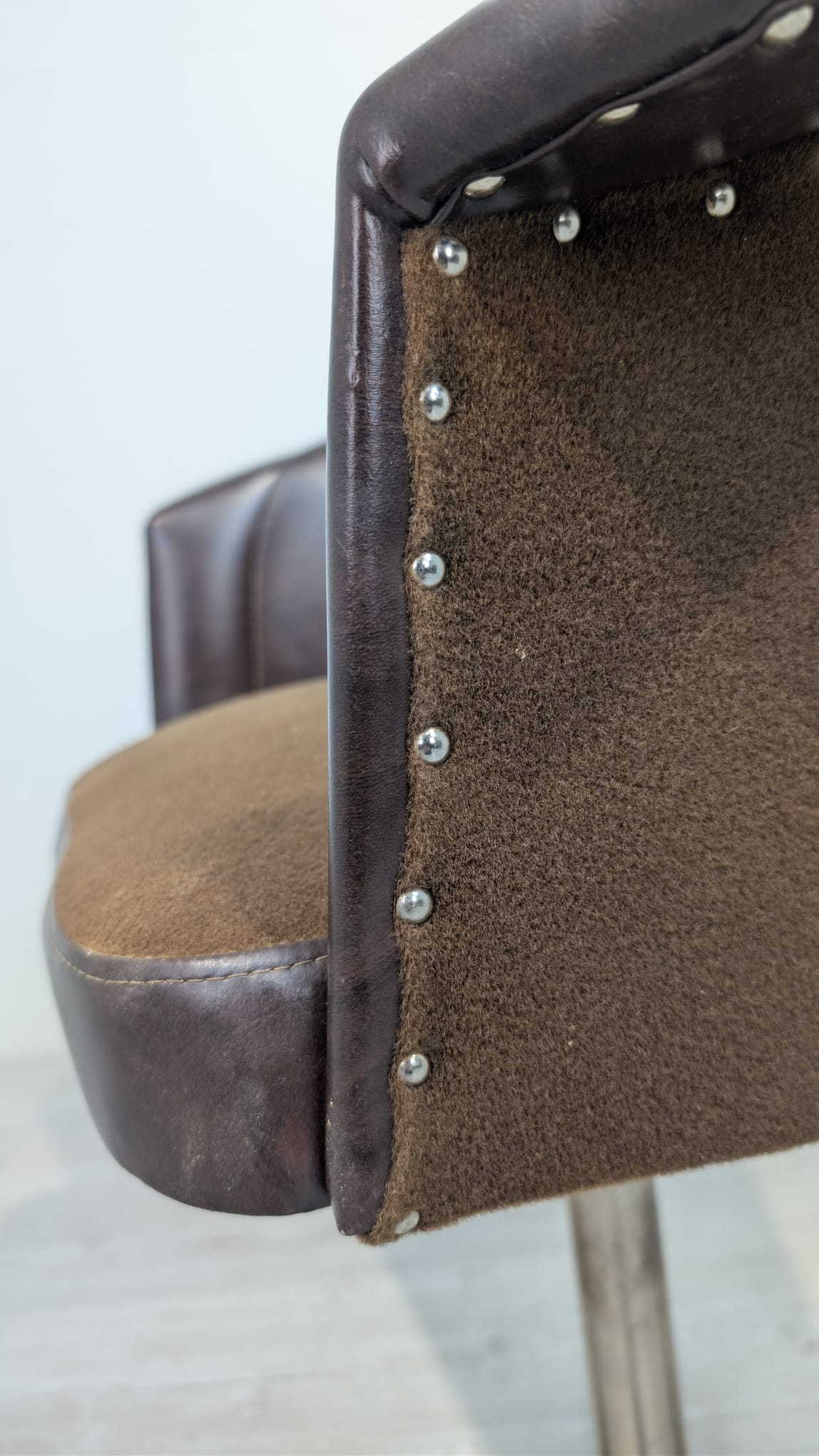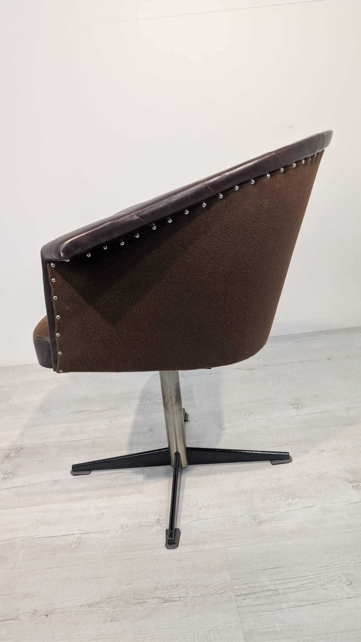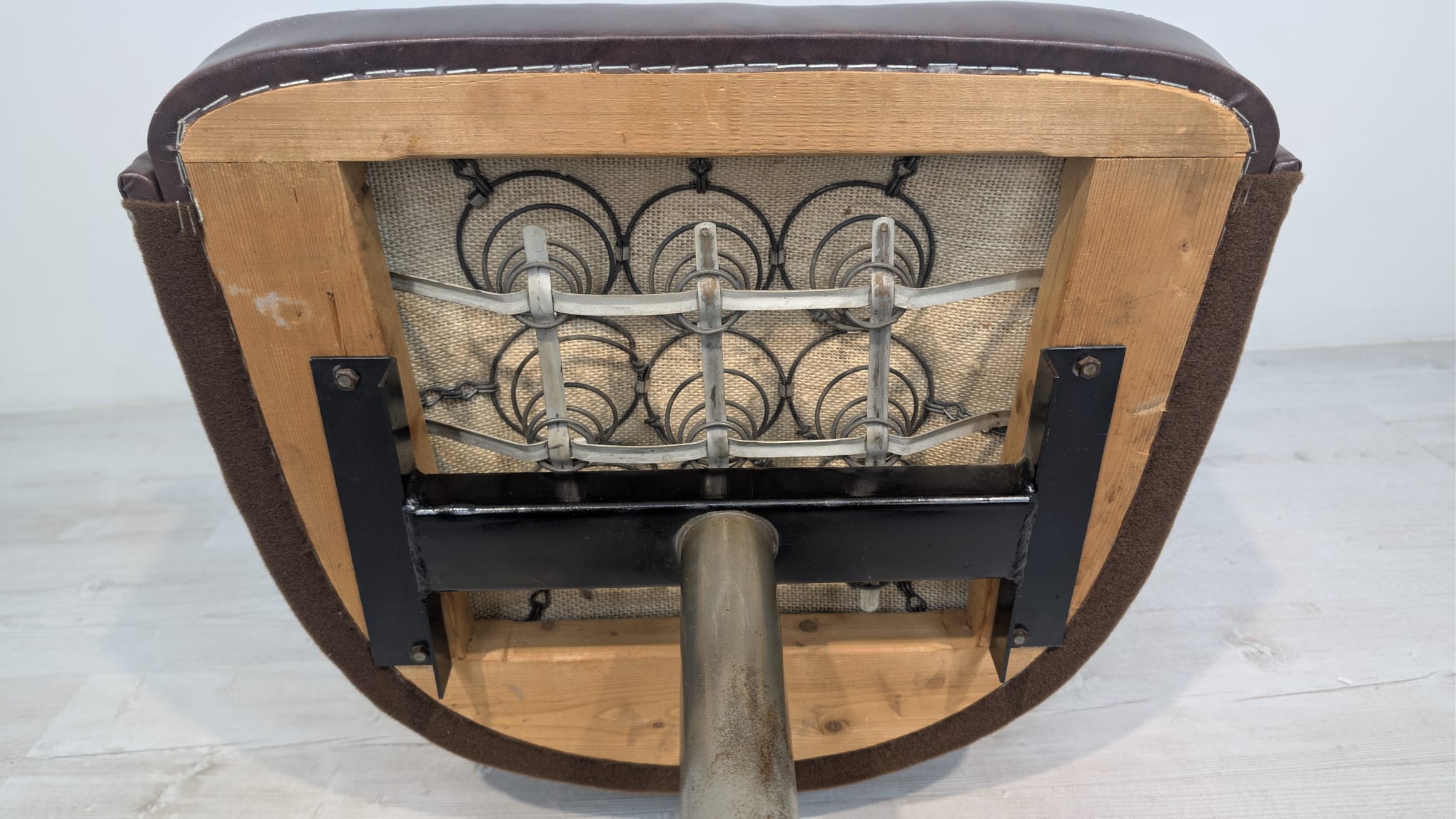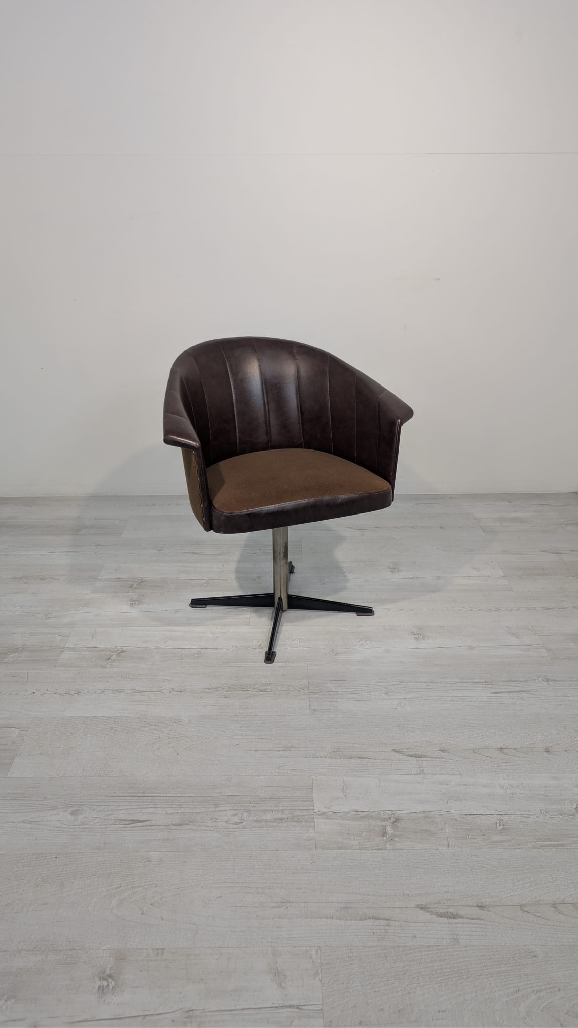 Fotel obrotowy designe, skóra naturalna, na sprężynach z lat 60-tych