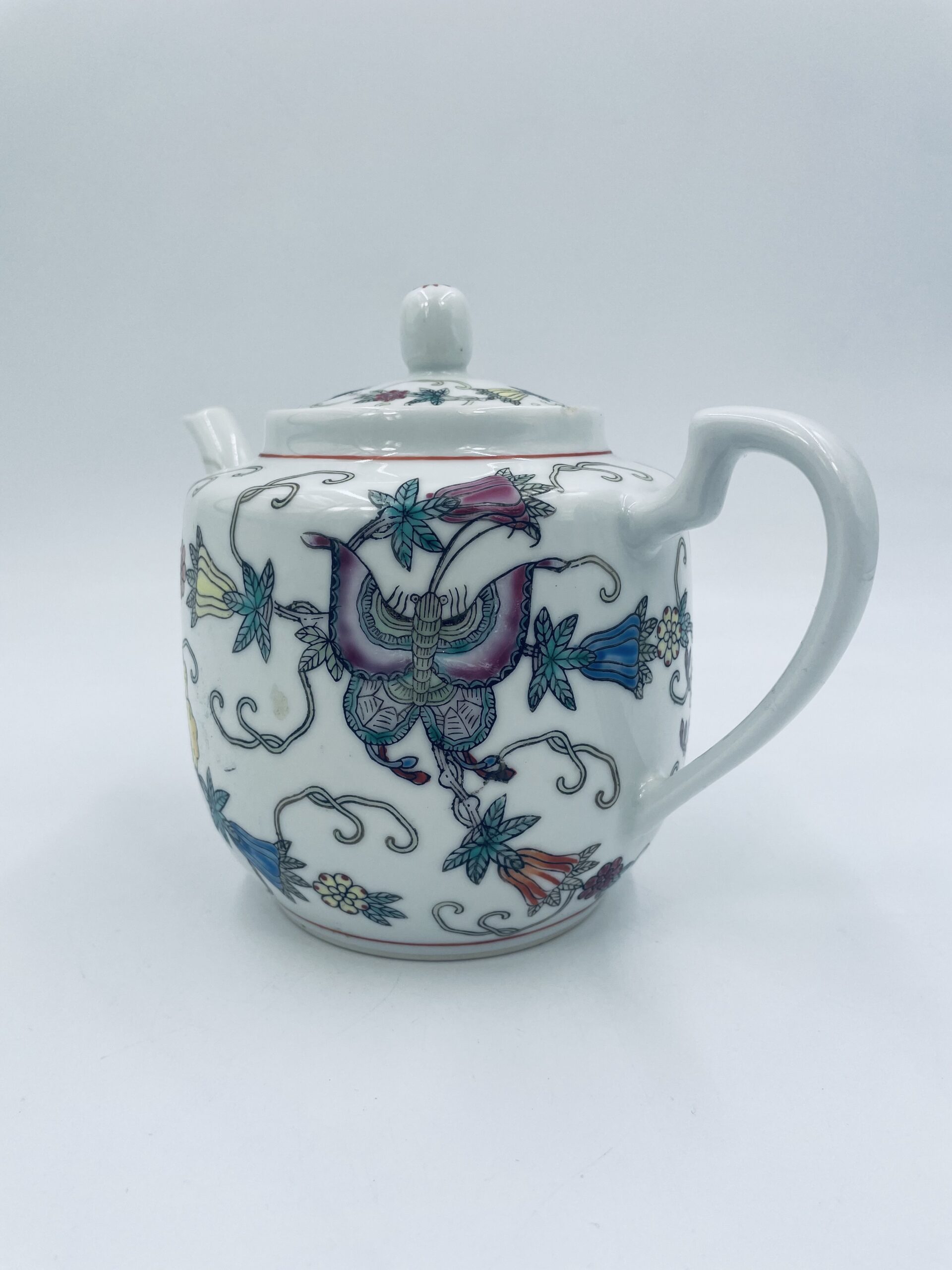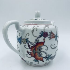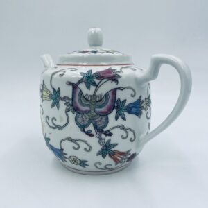 Czajnik ręcznie malowany w motywie motyli i kwiatów.
