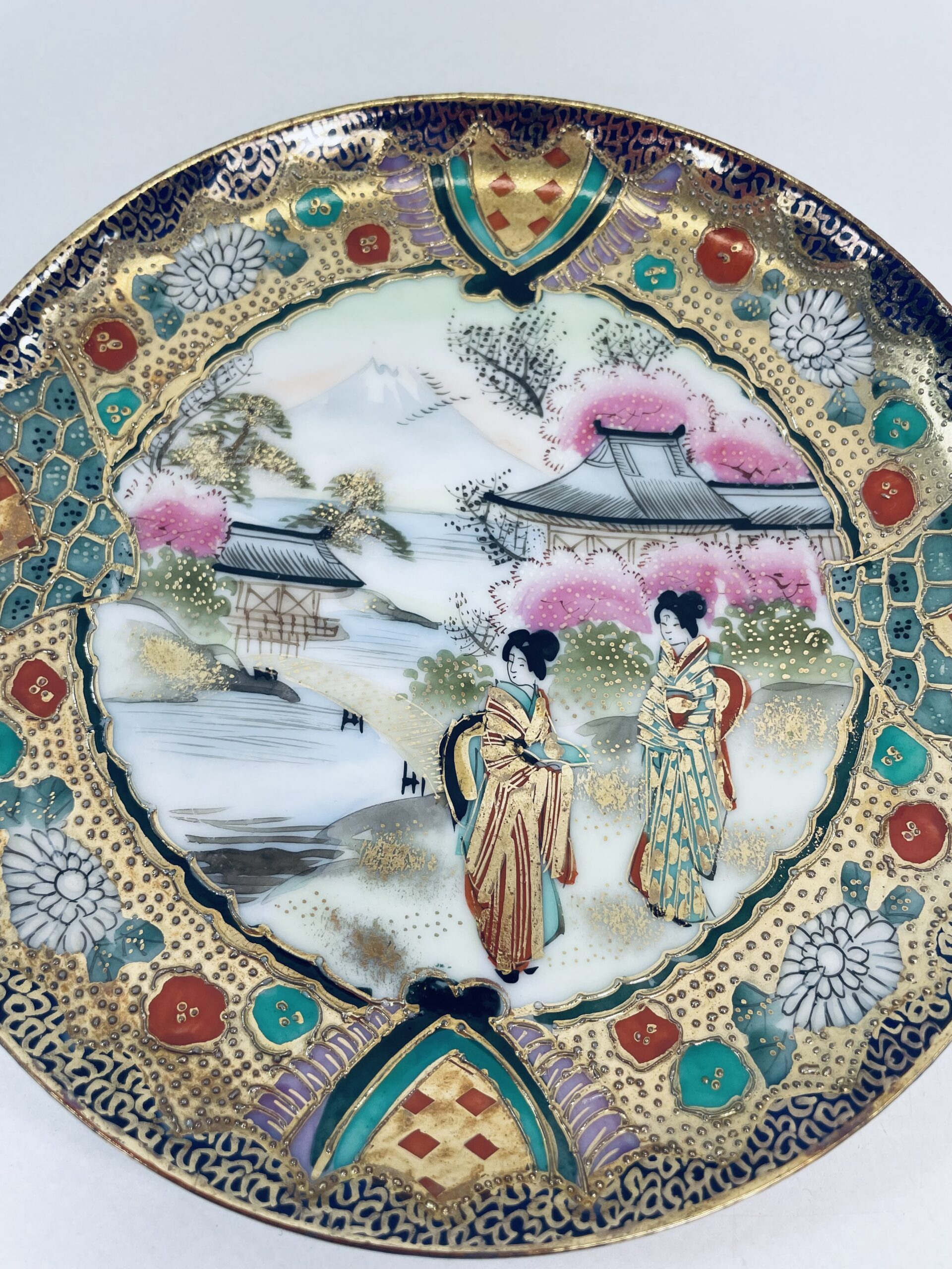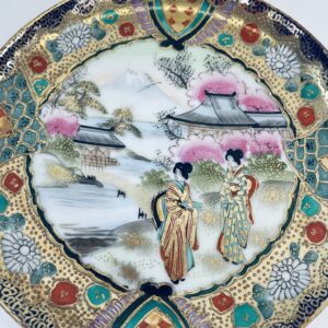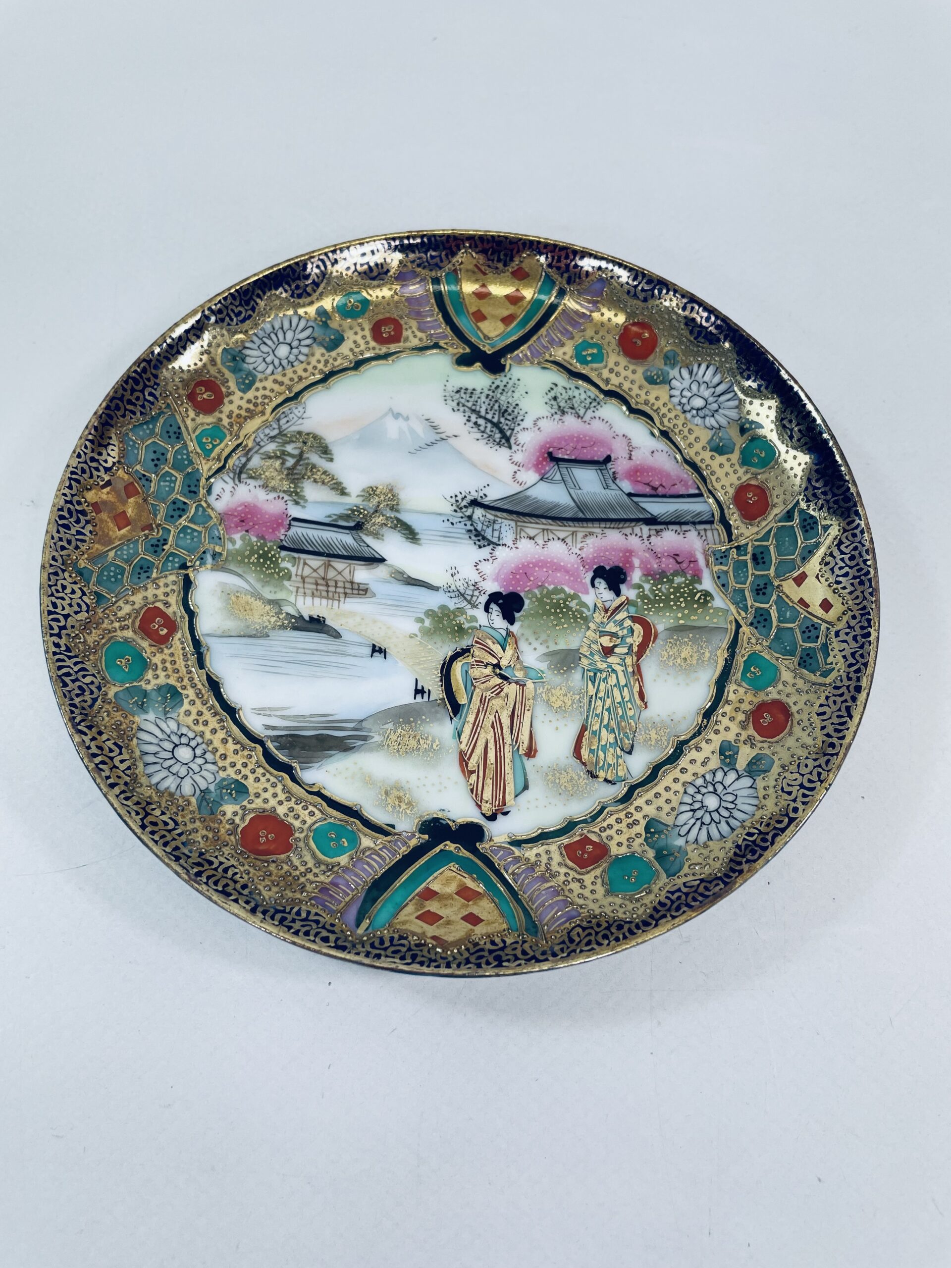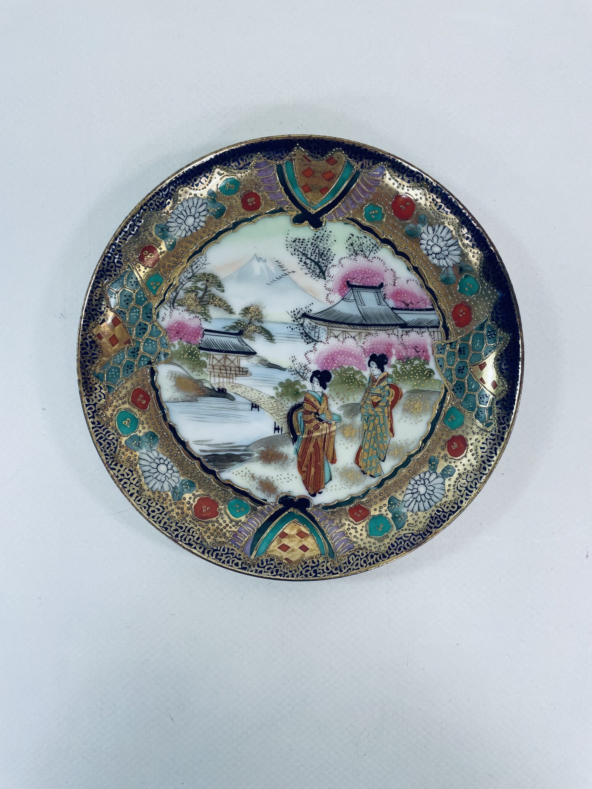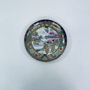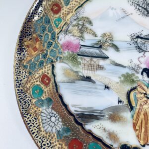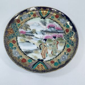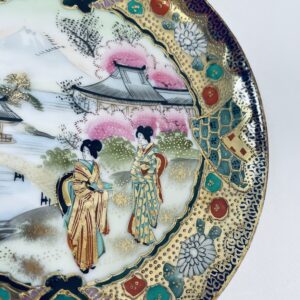 Japońska spodek ręcznie malowana w piękne malownicze kolory i złocona.