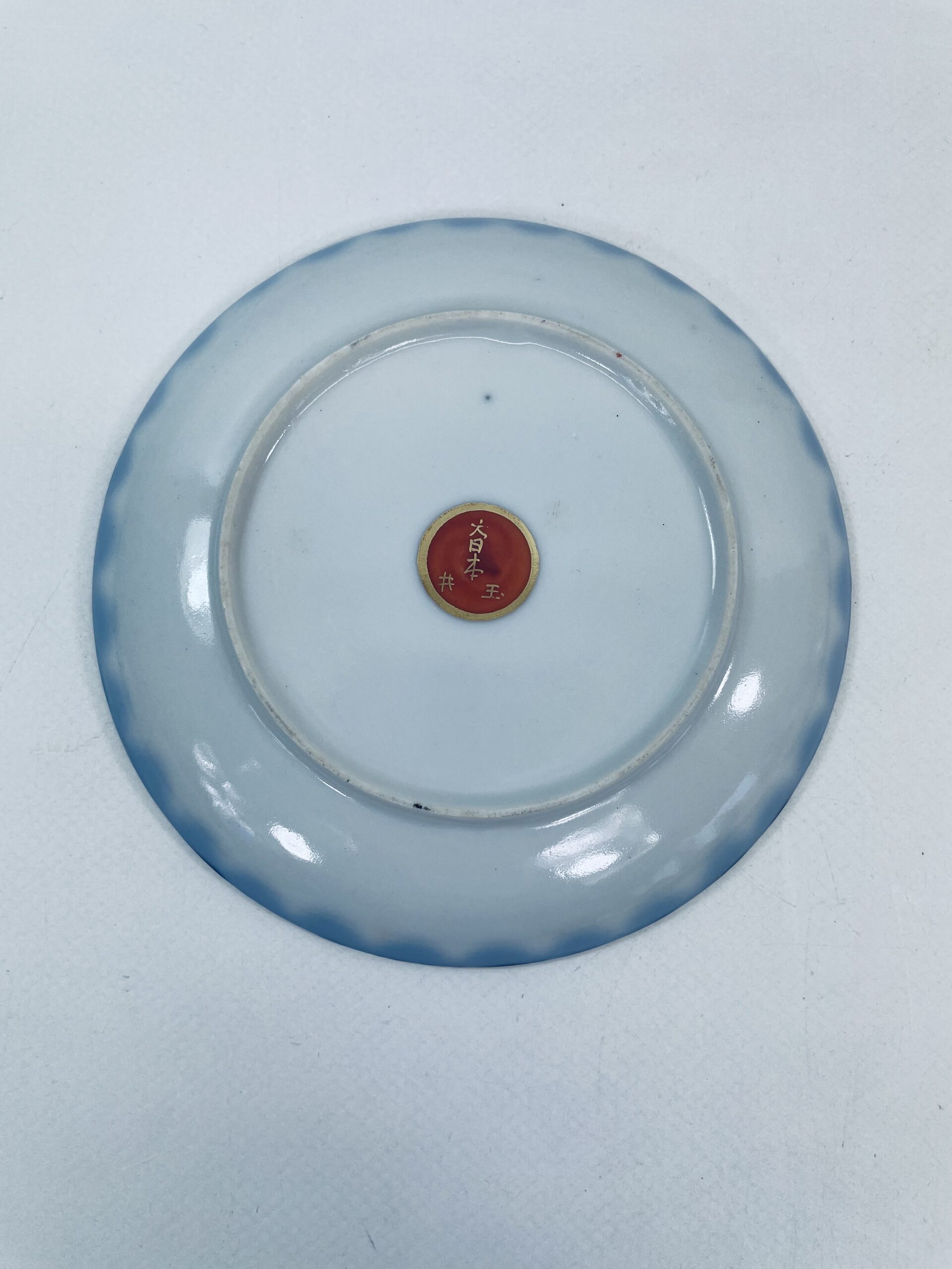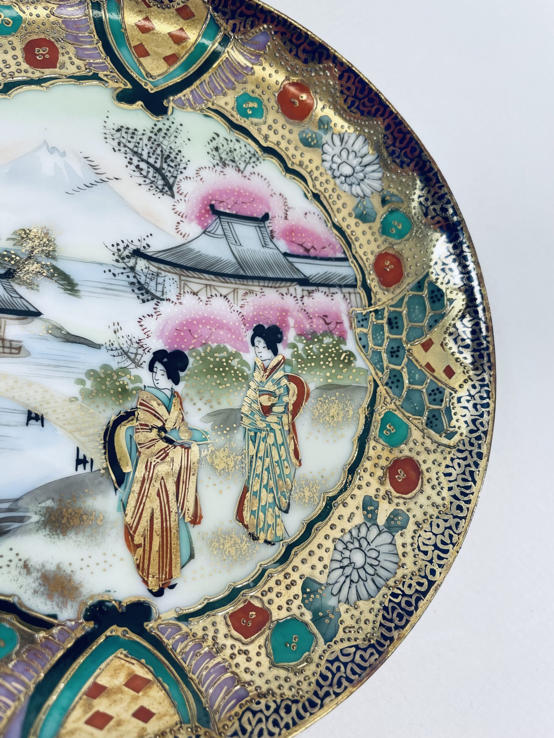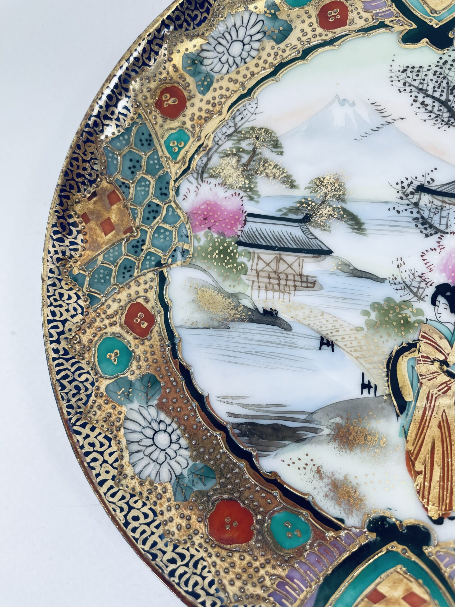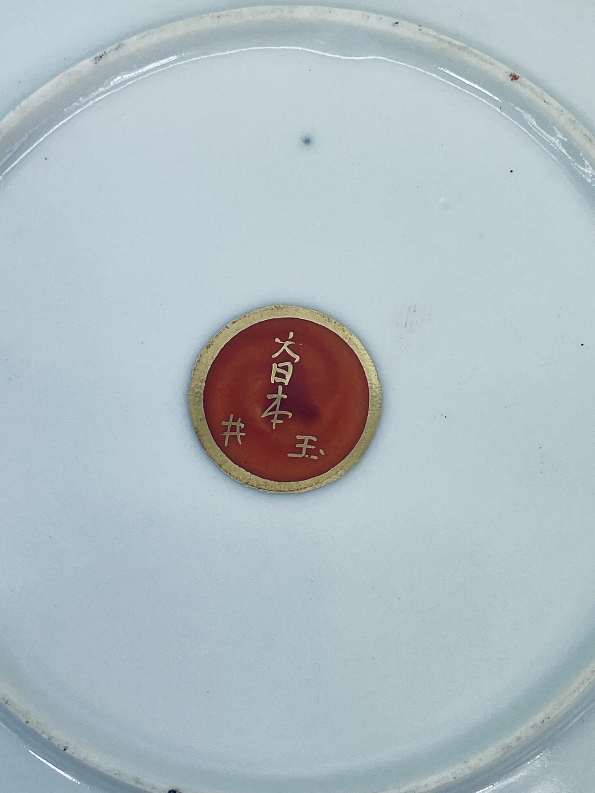 Japońska spodek ręcznie malowana w piękne malownicze kolory i złocona.