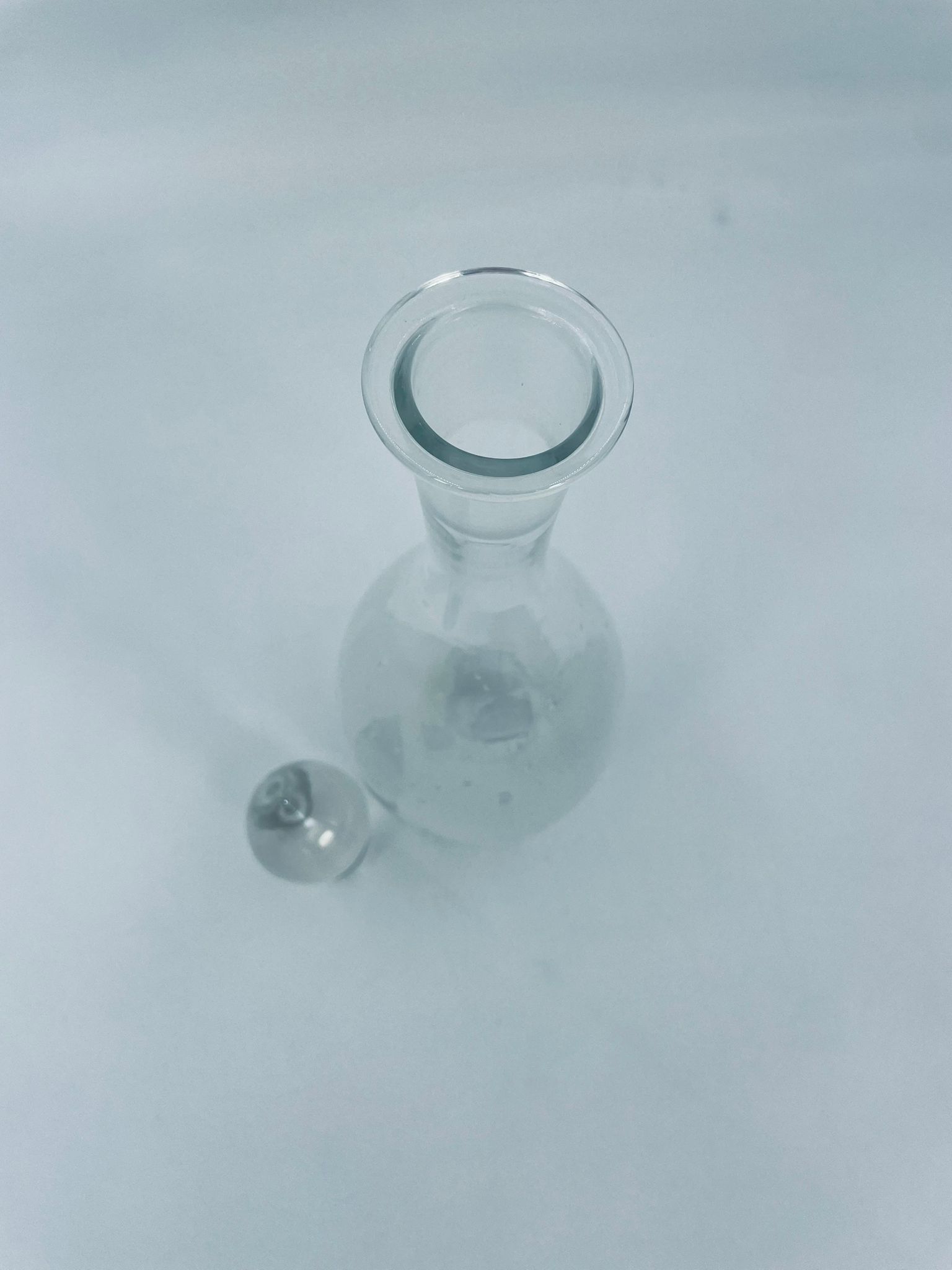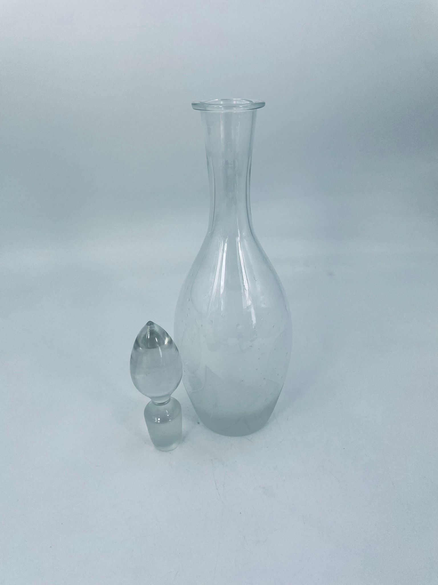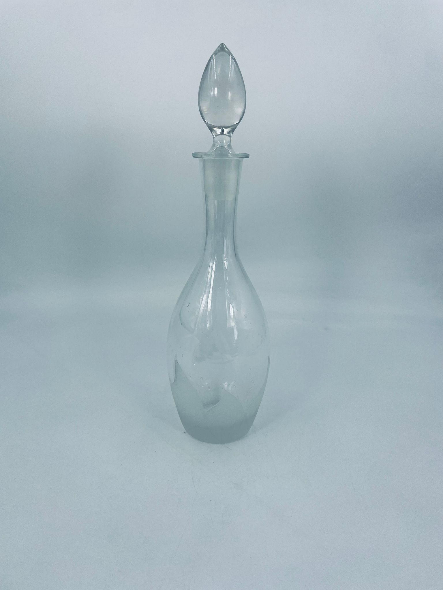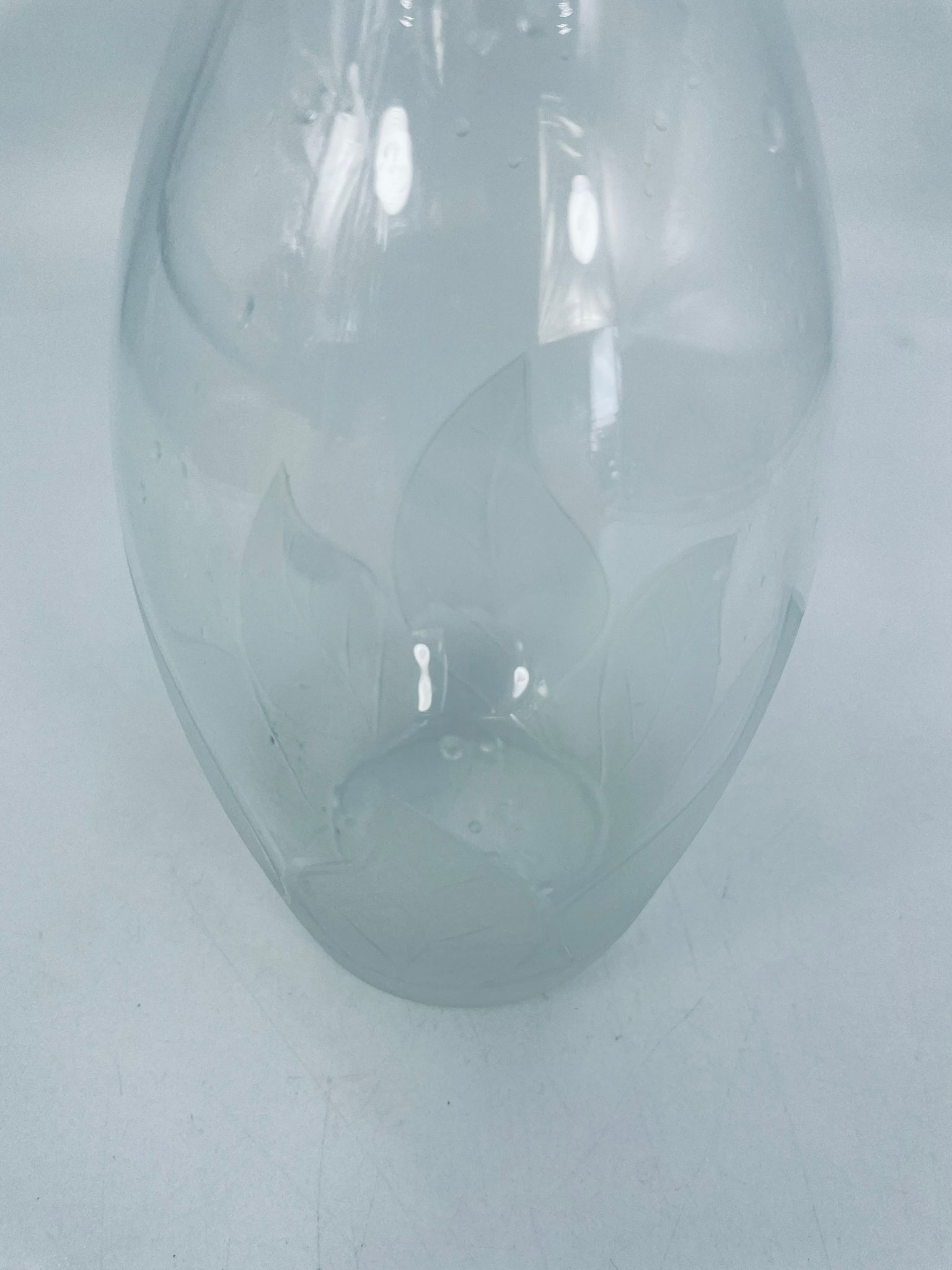 Szklana karafka do wody lub wina, przezroczysta ze szronionym tłem we wzorze liści.