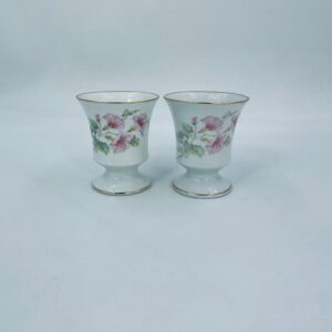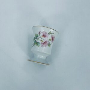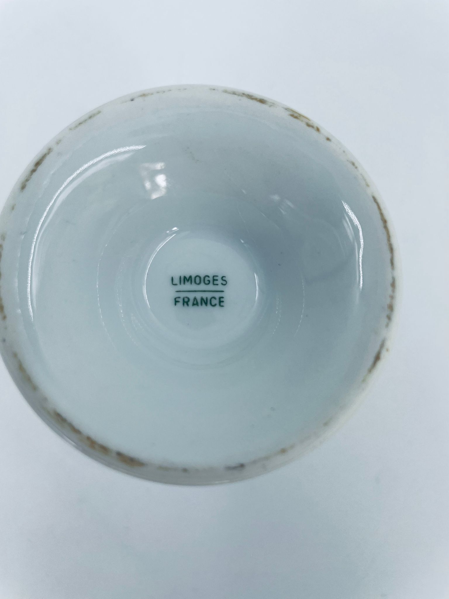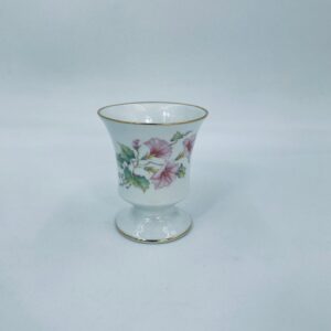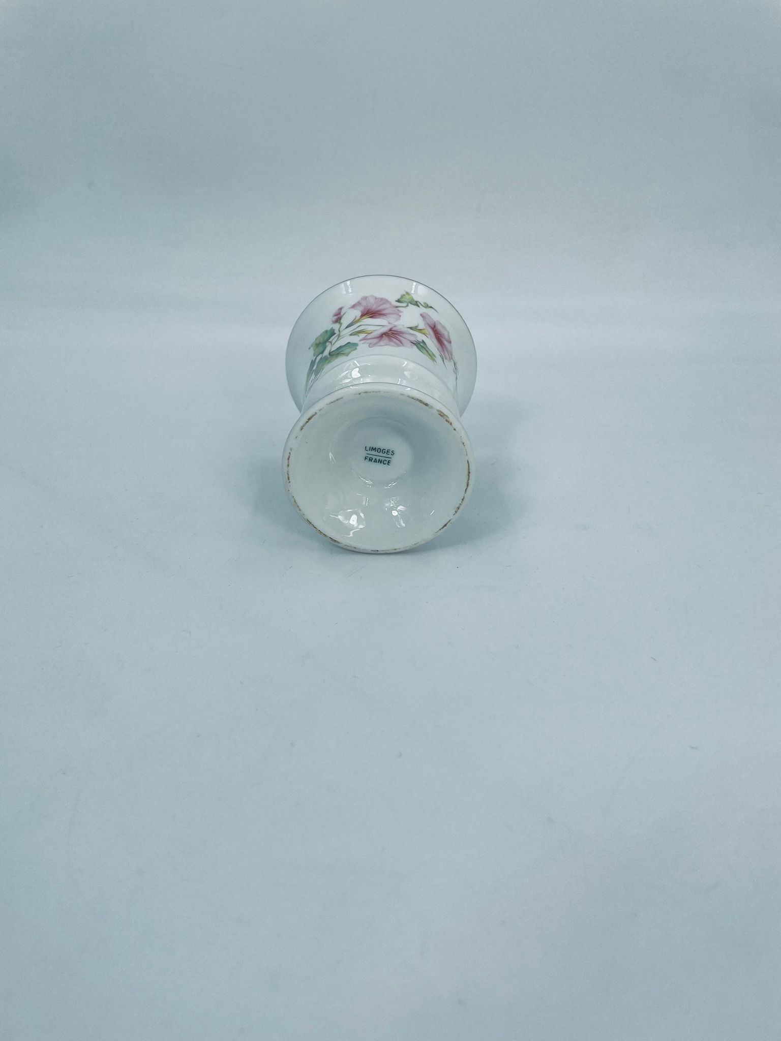 Kielich/ kubek wytwórni Limoges France, wykonany z wysokiej jakości białej porcelany. Kubek ozdobiony delikatnym motywem kwiatków i liści z pozłacanymi krawędziami.