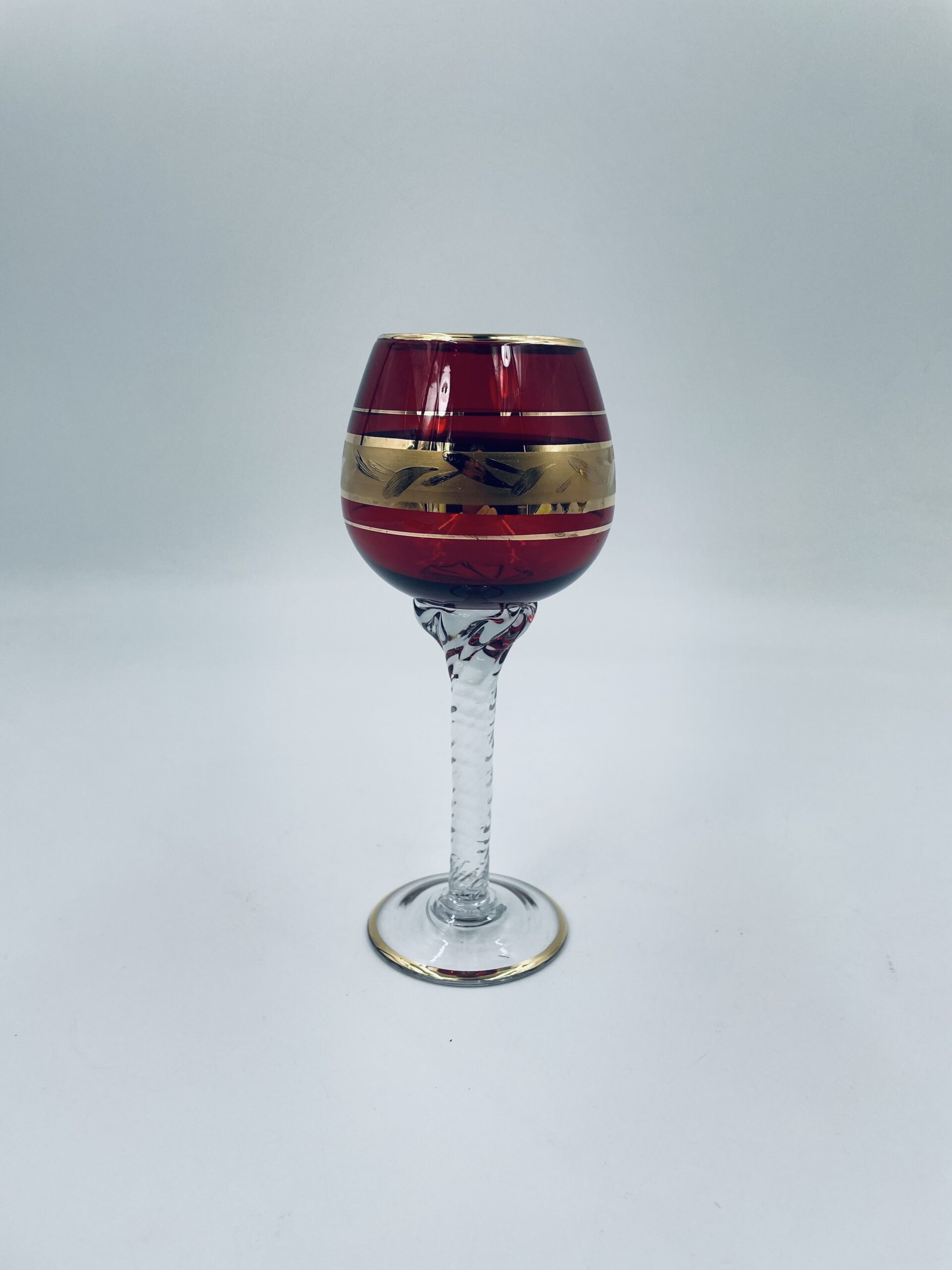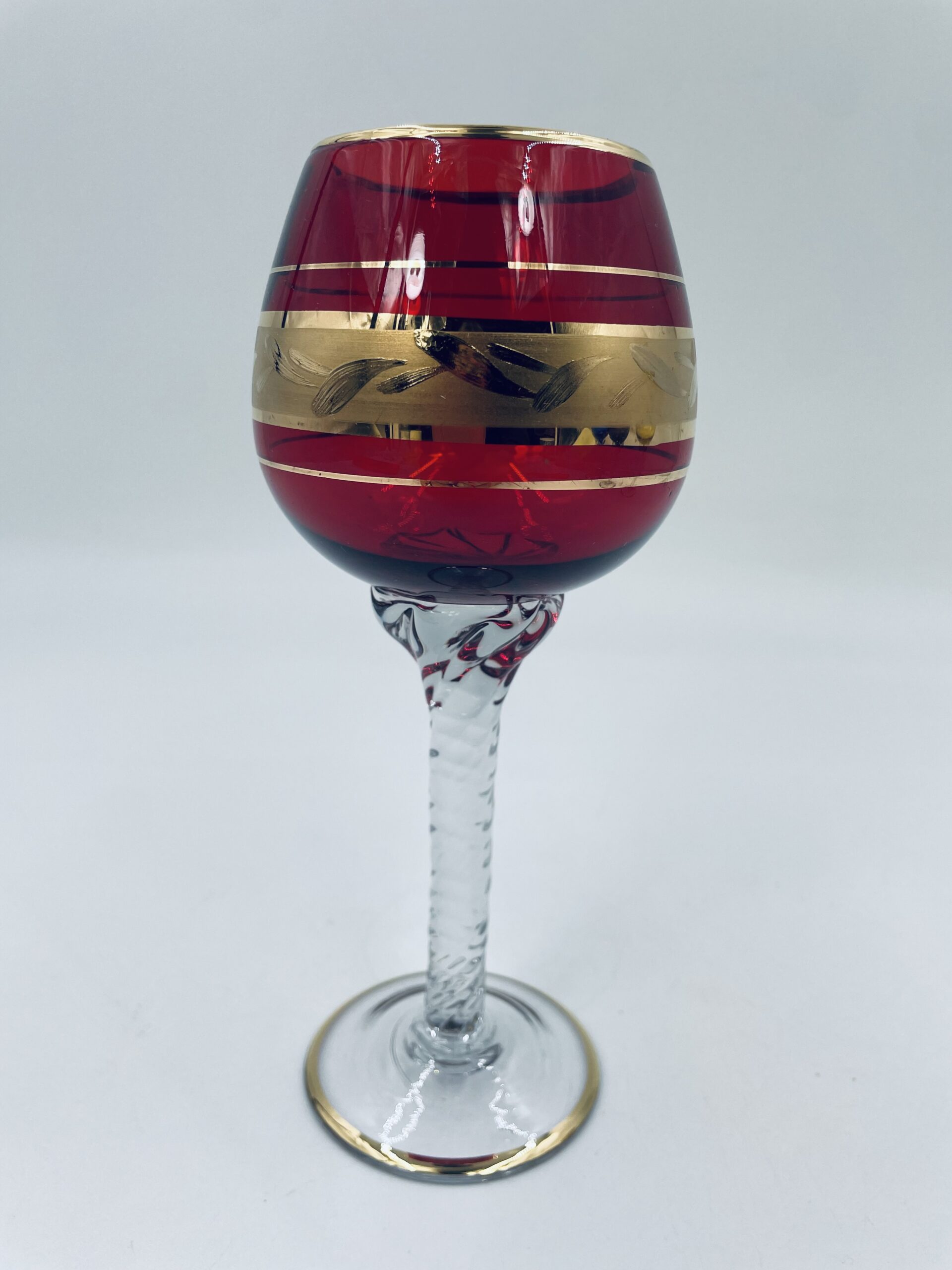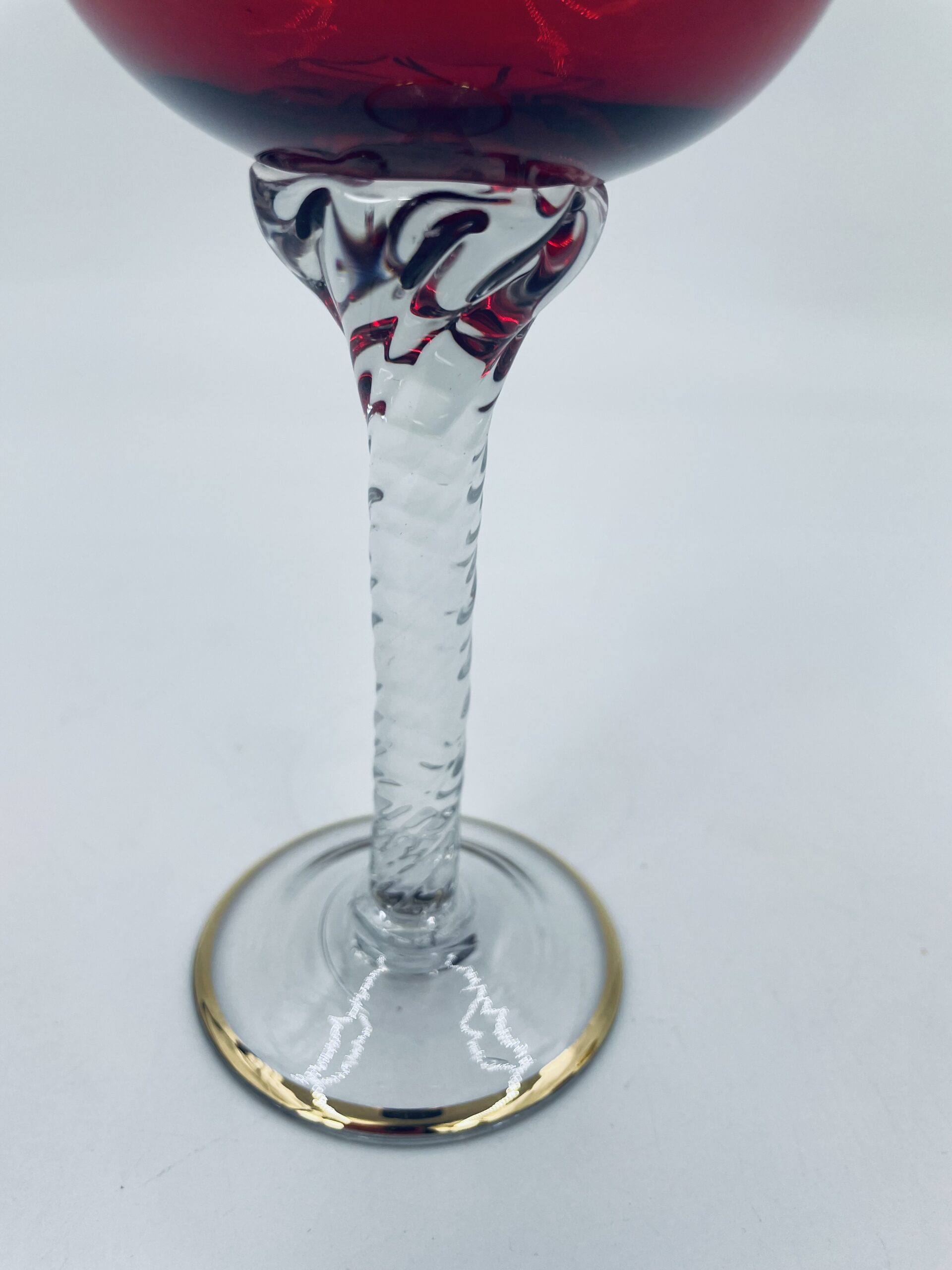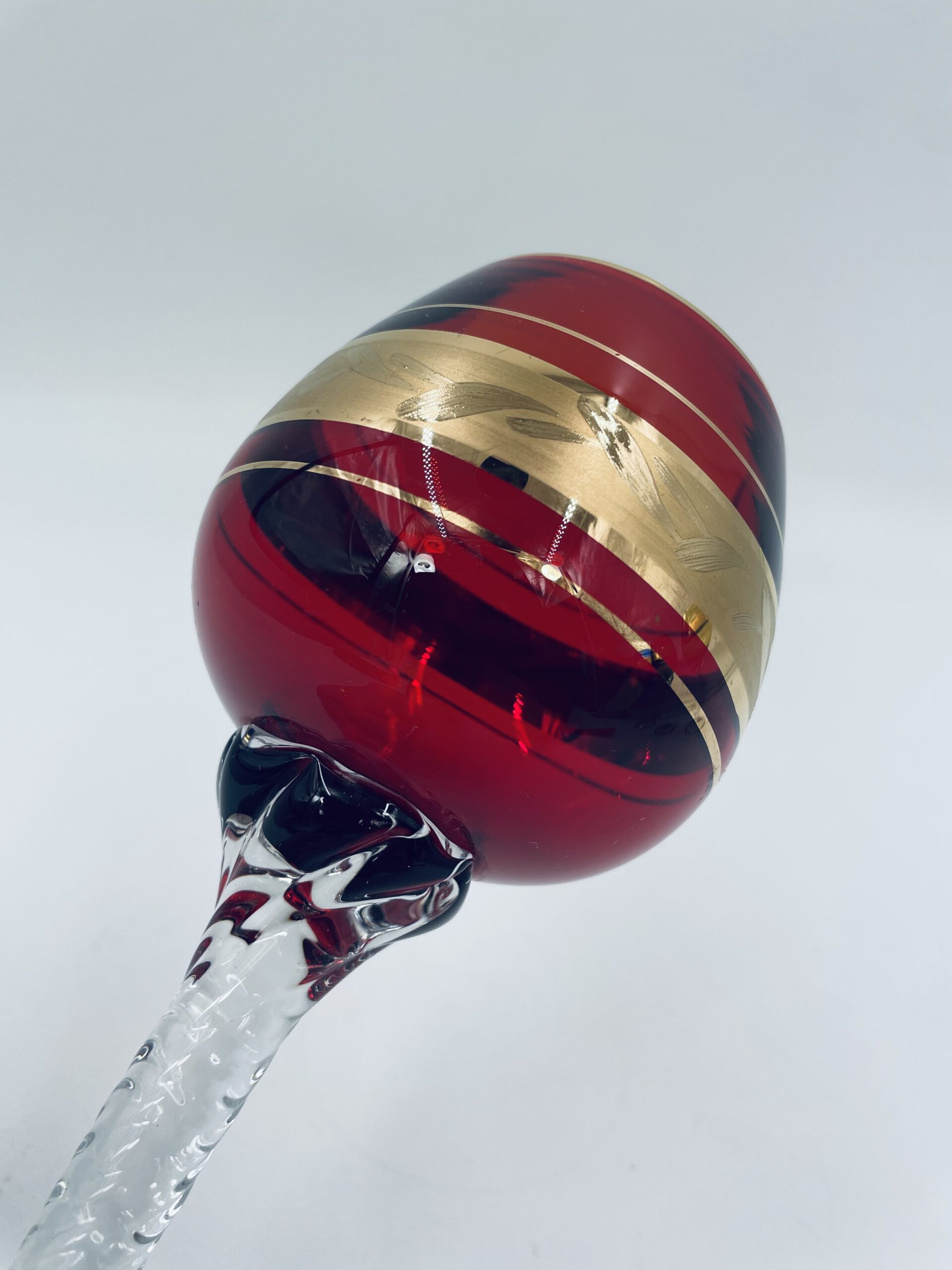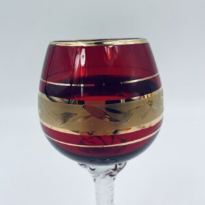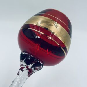 Czerwony kieliszek do wina wyprodukowany ze szkla Murano we Włoszech.