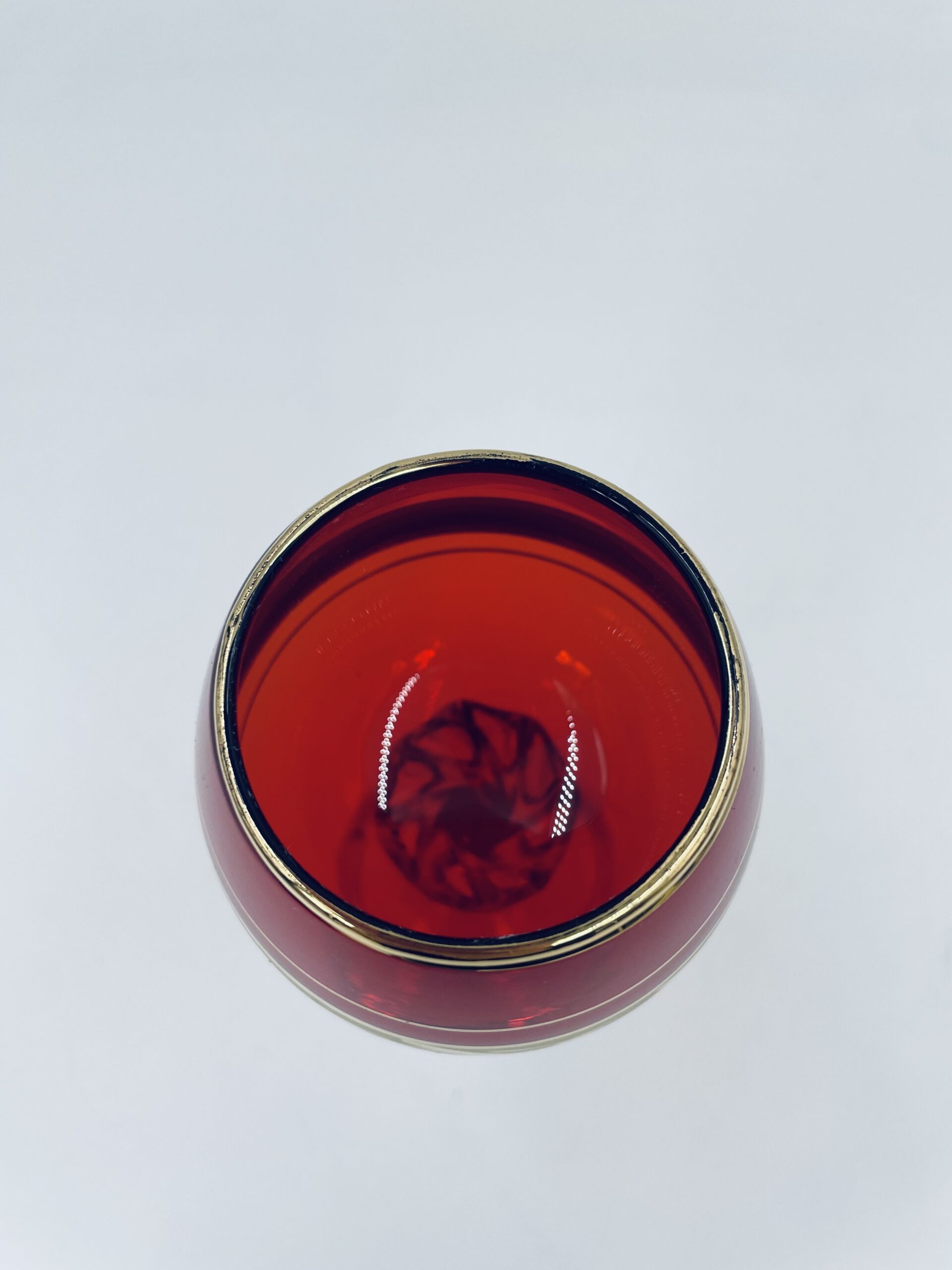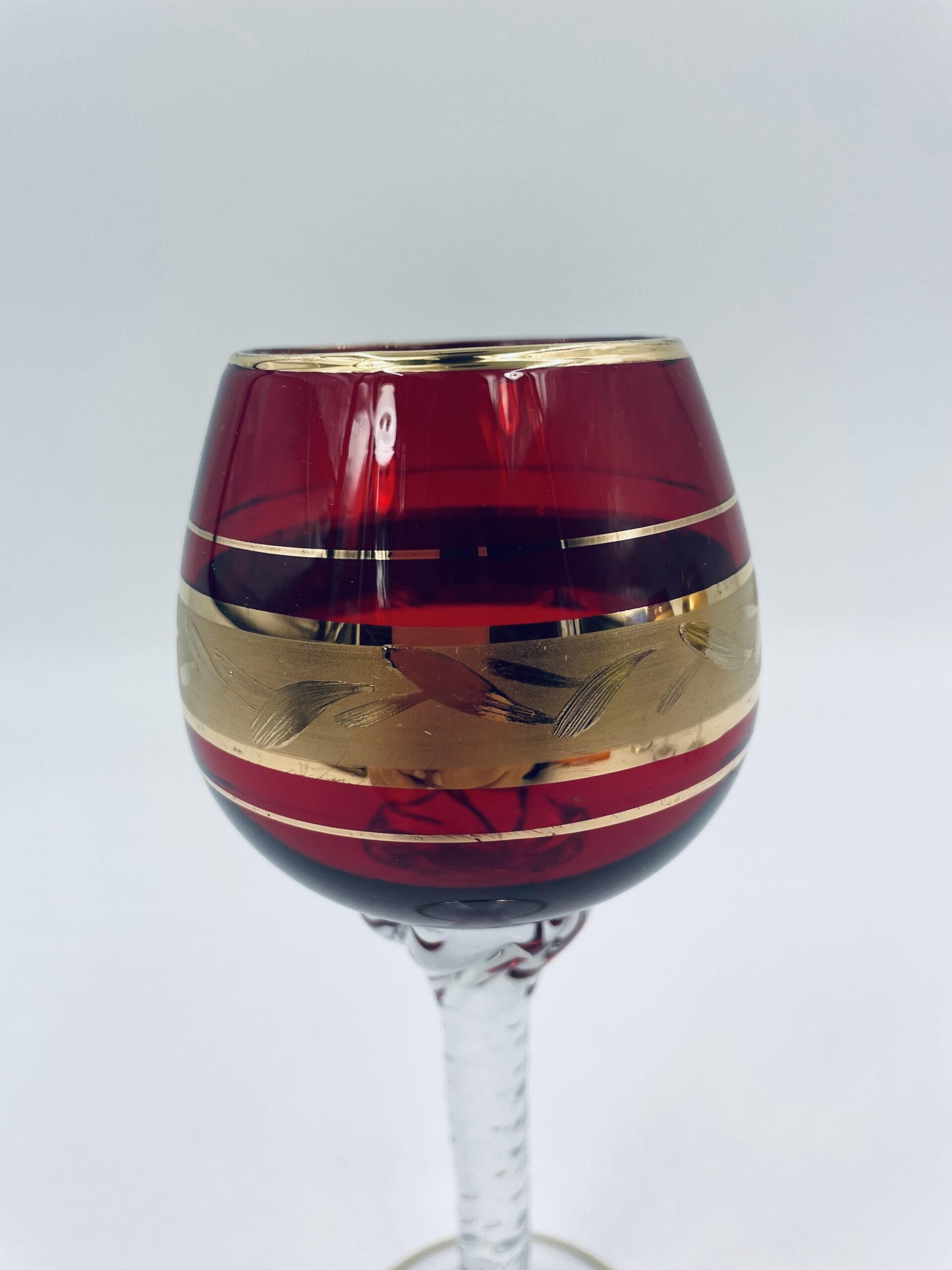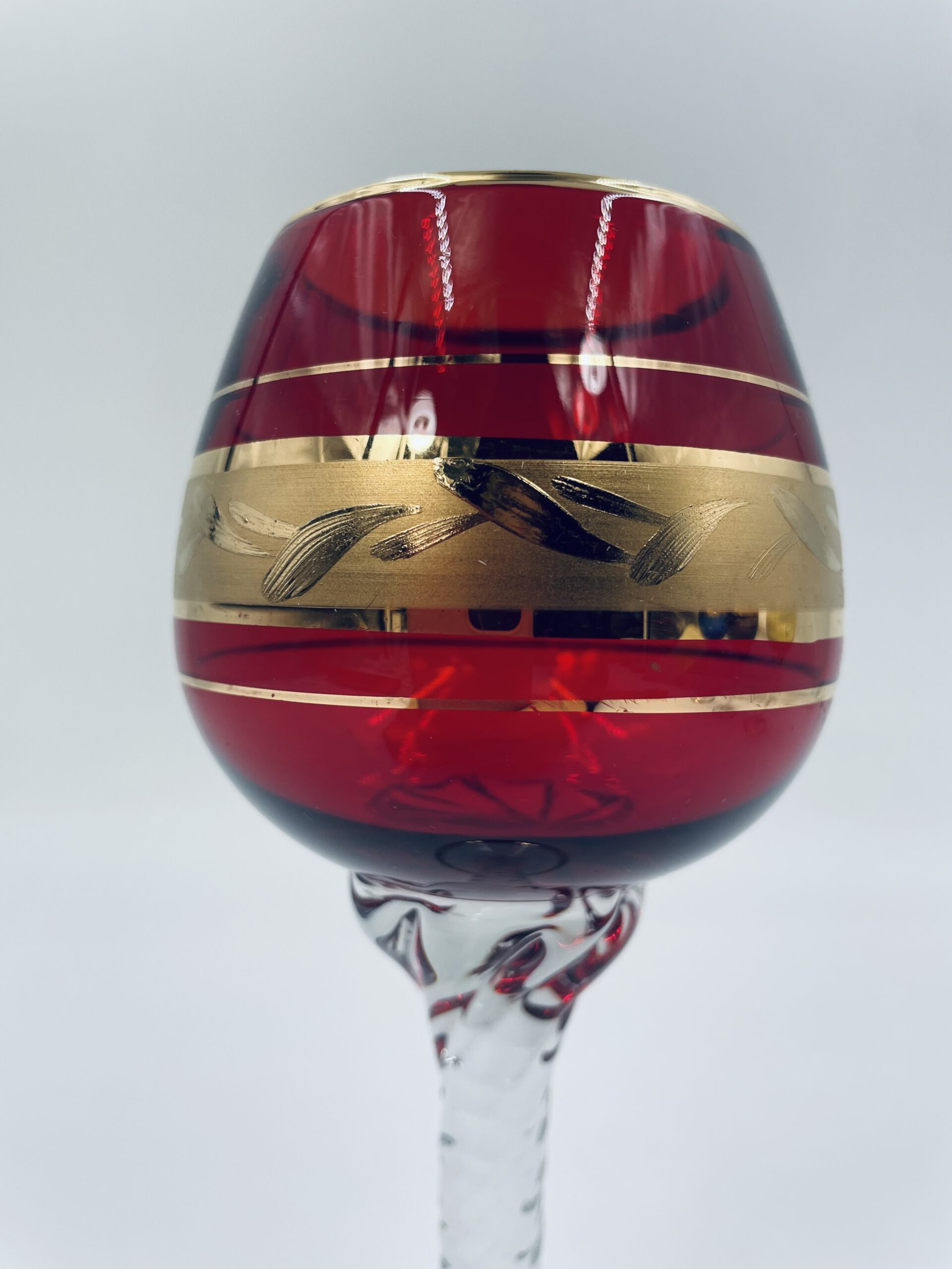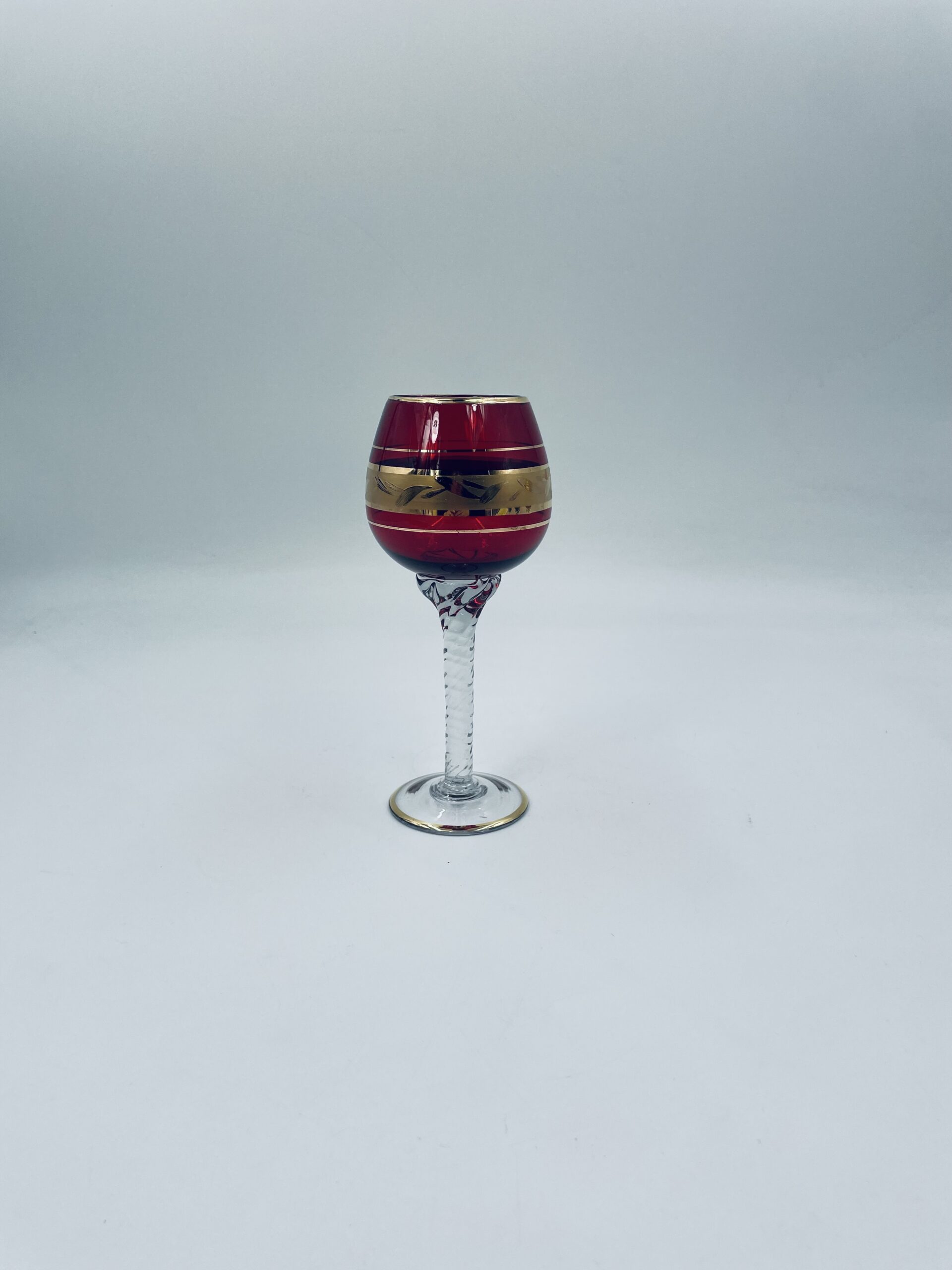 Czerwony kieliszek do wina wyprodukowany ze szkla Murano we Włoszech.