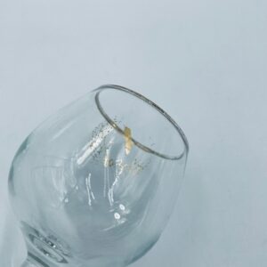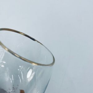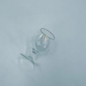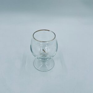 Kieliszek do koniaku, brandy Napoleon w stylu Vintage, wykonany z wysokie jakości Francuskiego szkła. Kieliszek posiada czarę z ozdobnym zdobieniem, krótką nóżkę i stabilną podstawę, wykończony złoceniem na rancie. Posiada przetarcie na złoceniu.