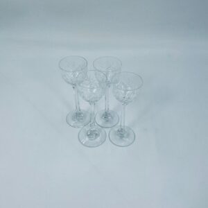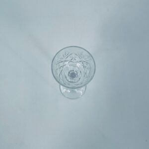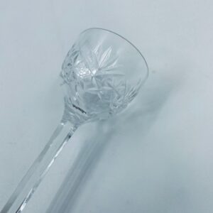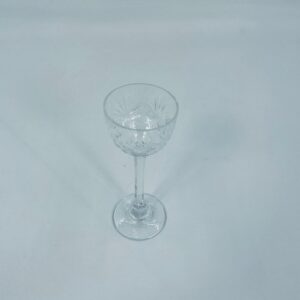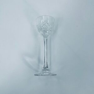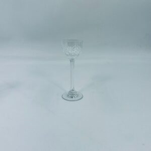 Kieliszek do nalewki, wykonany ze szkła kryształowego, przezroczystego. Charakteryzuje się ozdobnymi wachlarzowymi nacięciami i długa ozdobna nóżką.