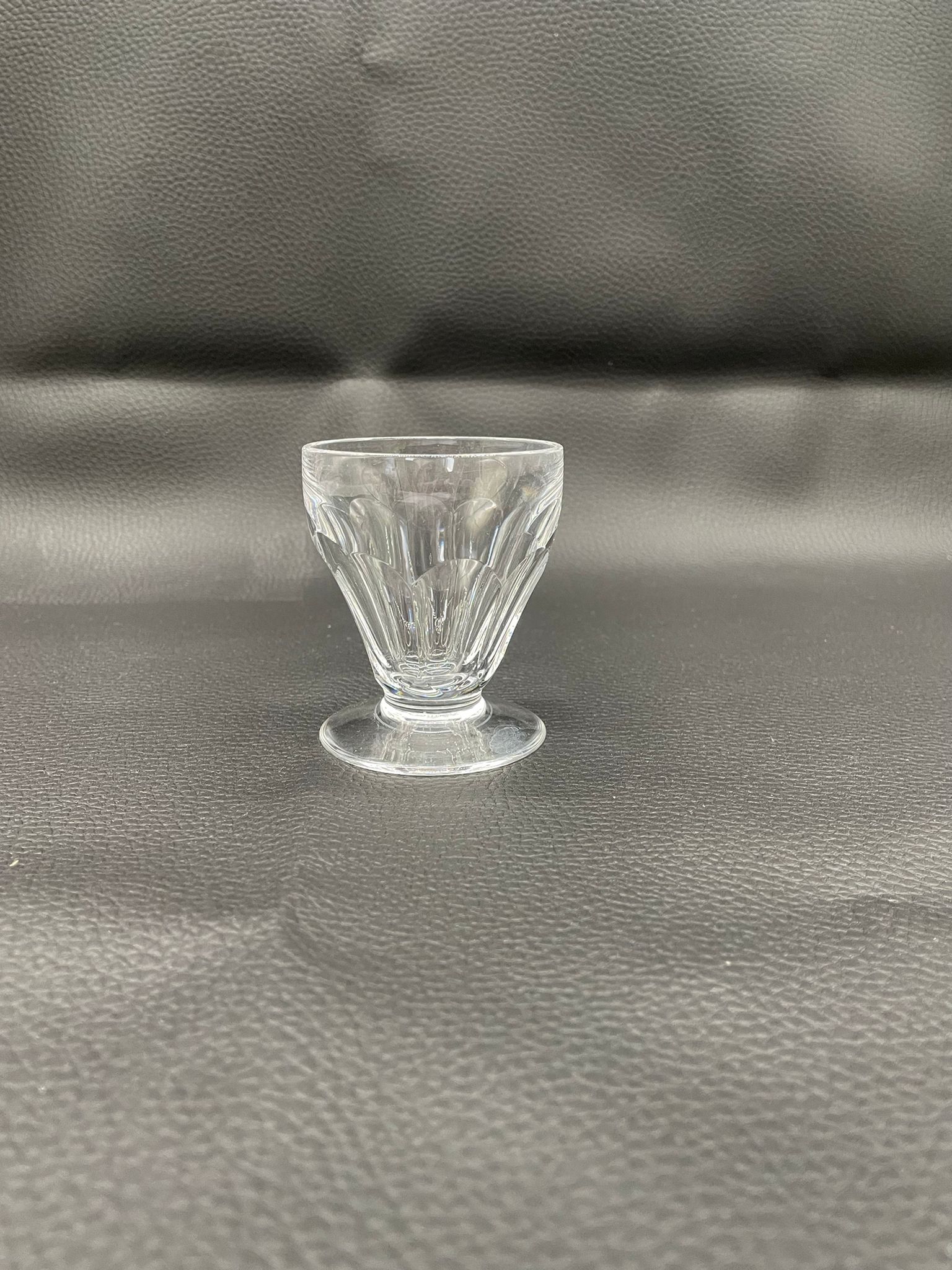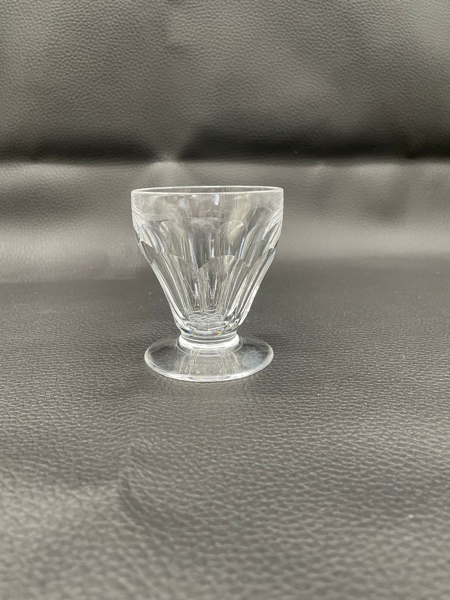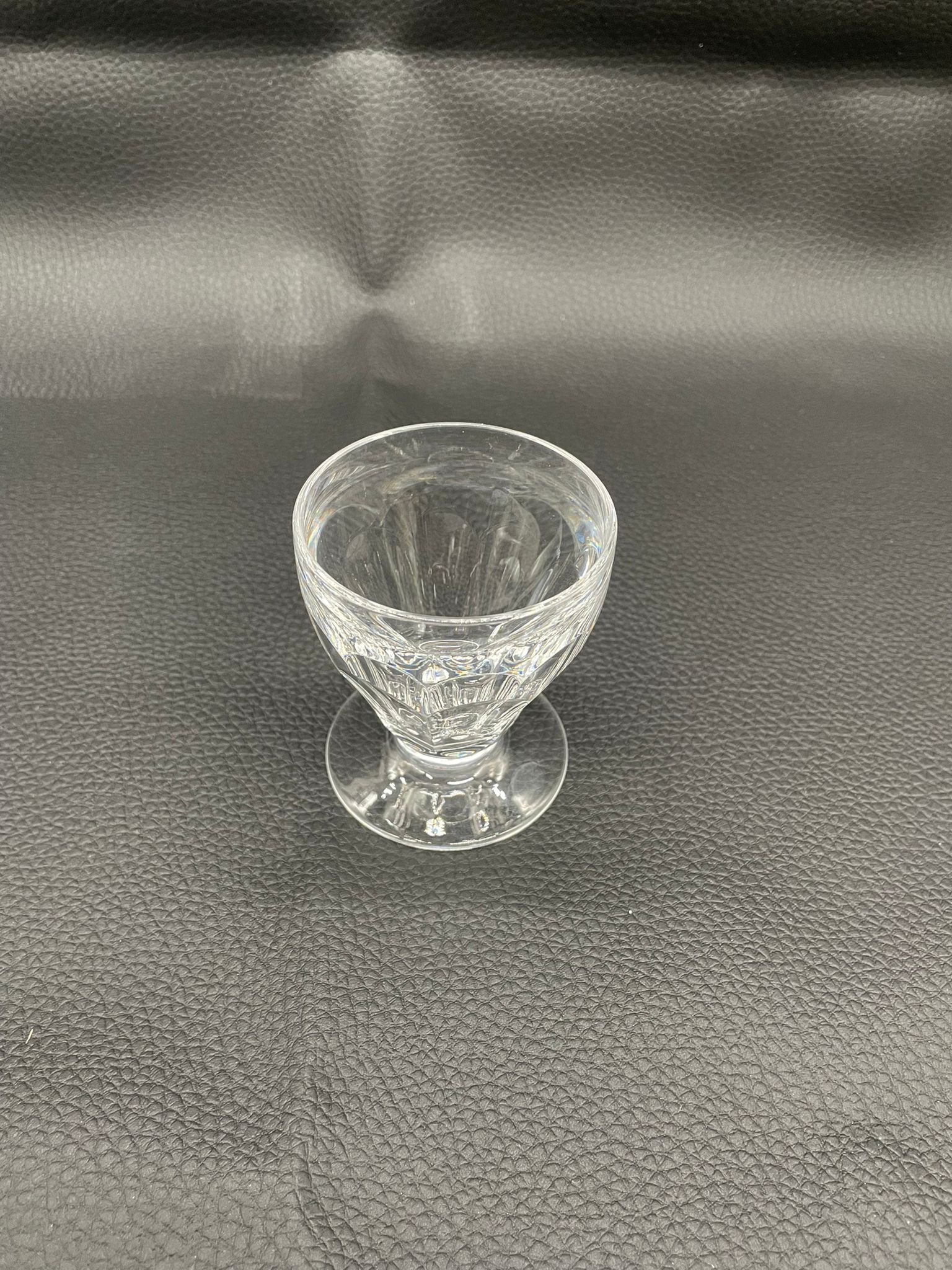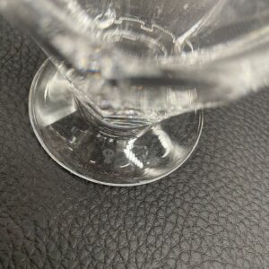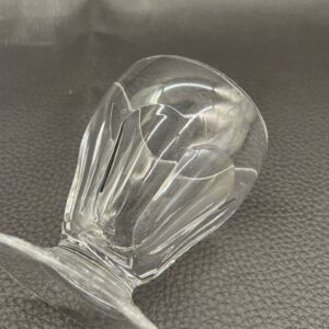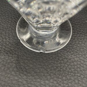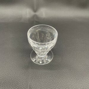 Kieliszek do nalewki wyprodukowany przez Niemiecka hutę szkła Peill & Putzler z serii „Marion” z lat 70tych., wykonany z wysokiej jakości szkła kryształowego ołowiowego. Kieliszek charakteryzuje się ręcznie ciętą, przezroczystą, fasetowana czarą ze stabilną podstawą. Posiada uszczerbek.