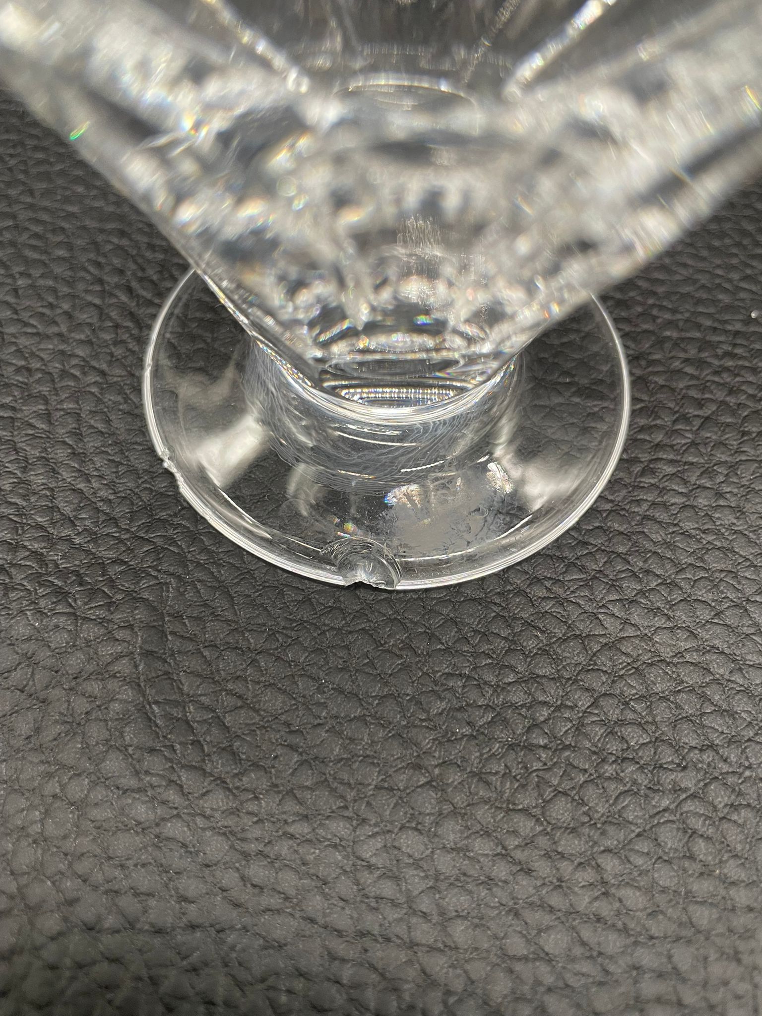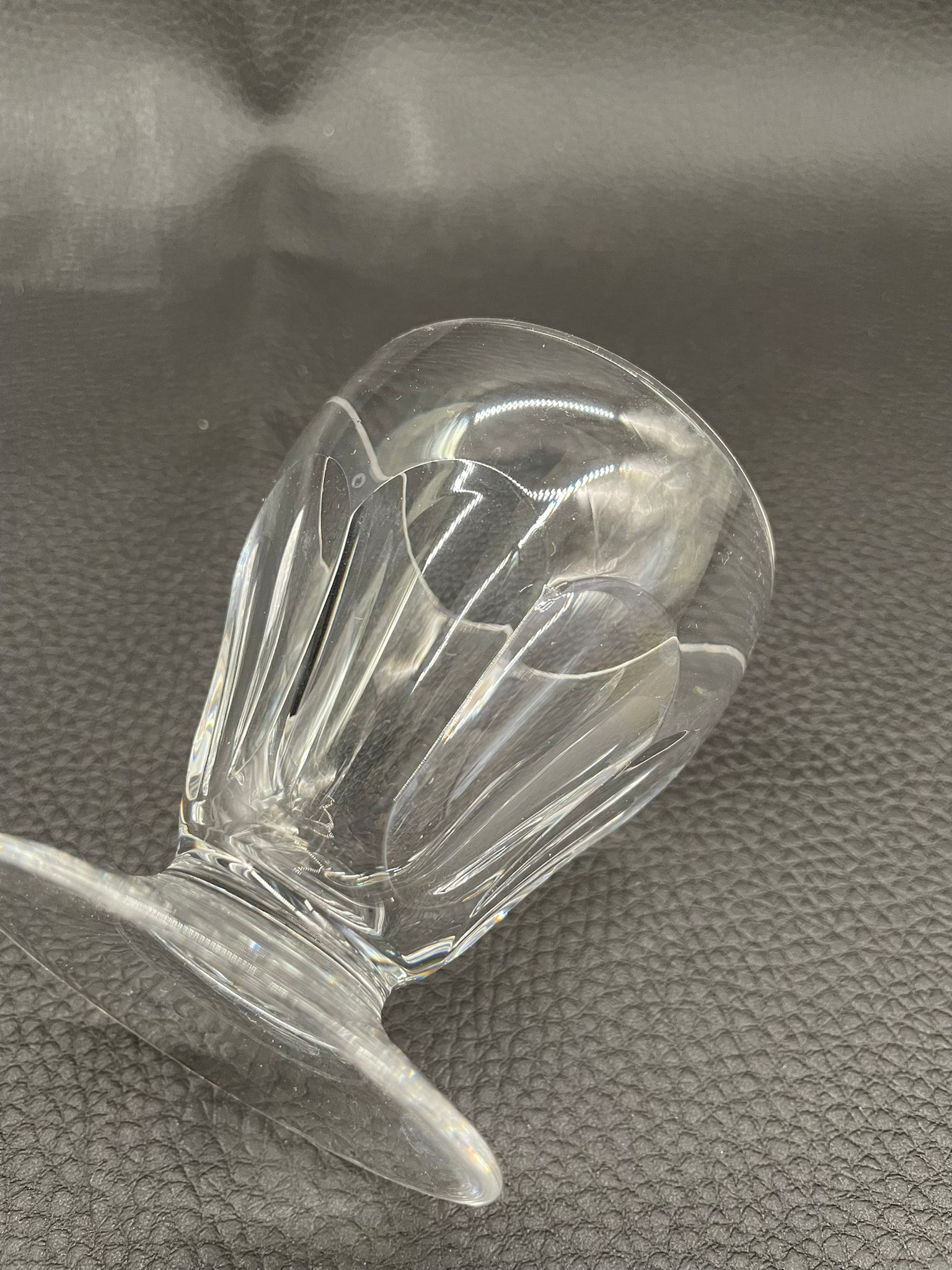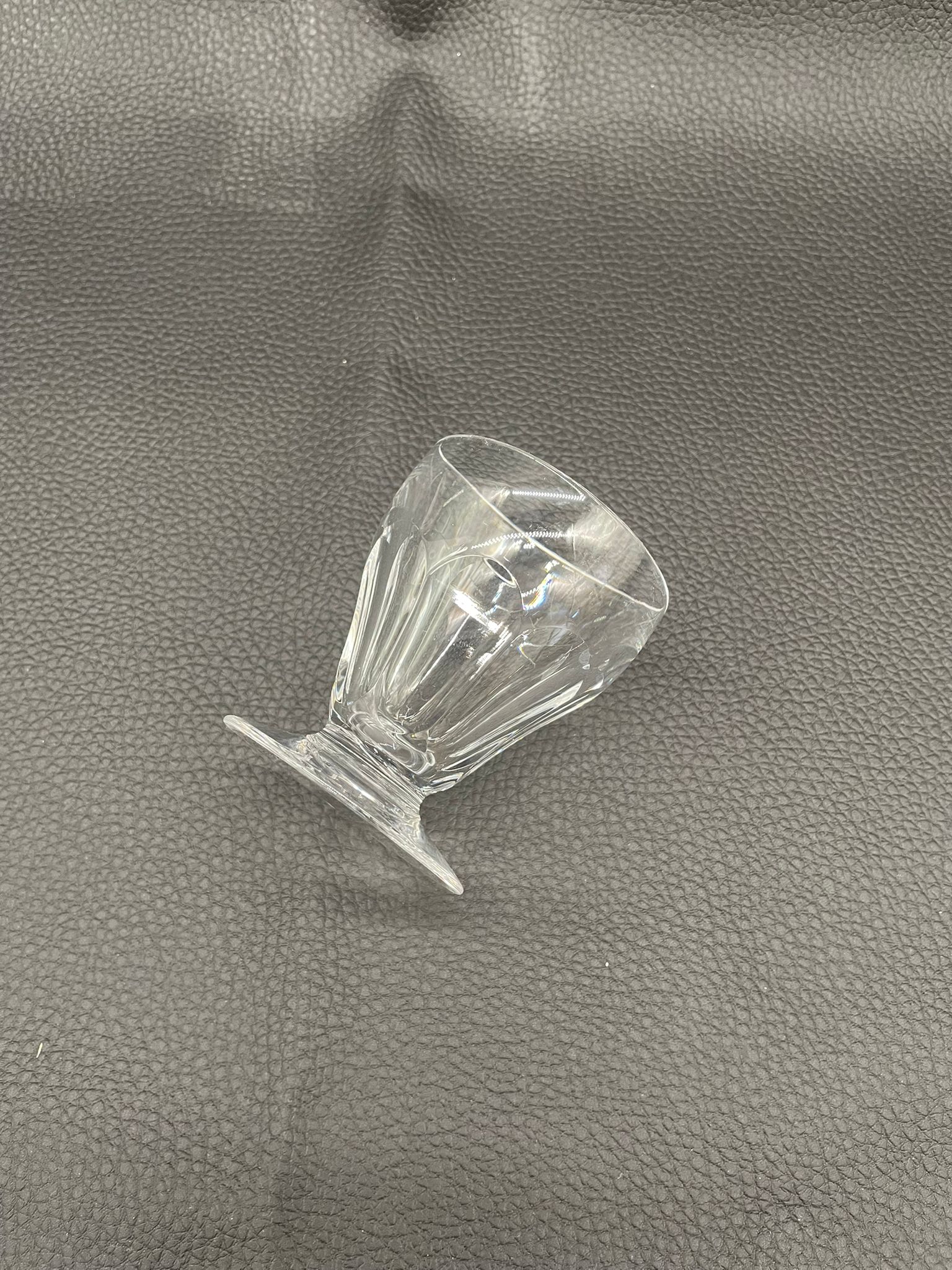 Kieliszek do nalewki wyprodukowany przez Niemiecka hutę szkła Peill & Putzler z serii „Marion” z lat 70tych., wykonany z wysokiej jakości szkła kryształowego ołowiowego. Kieliszek charakteryzuje się ręcznie ciętą, przezroczystą, fasetowana czarą ze stabilną podstawą. Posiada uszczerbek.