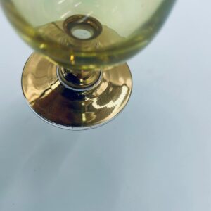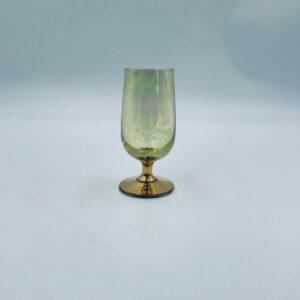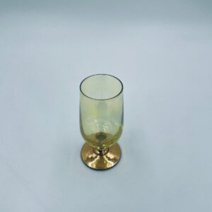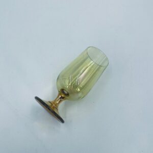 Kieliszek do nalewki w stylu Vintage, wykonany z wysokiej jakości szkła kryształowego. Kieliszek barwiony na kolor żółty ze złota nóżka i podstawa. Posiada przetarcie na złoceniu.