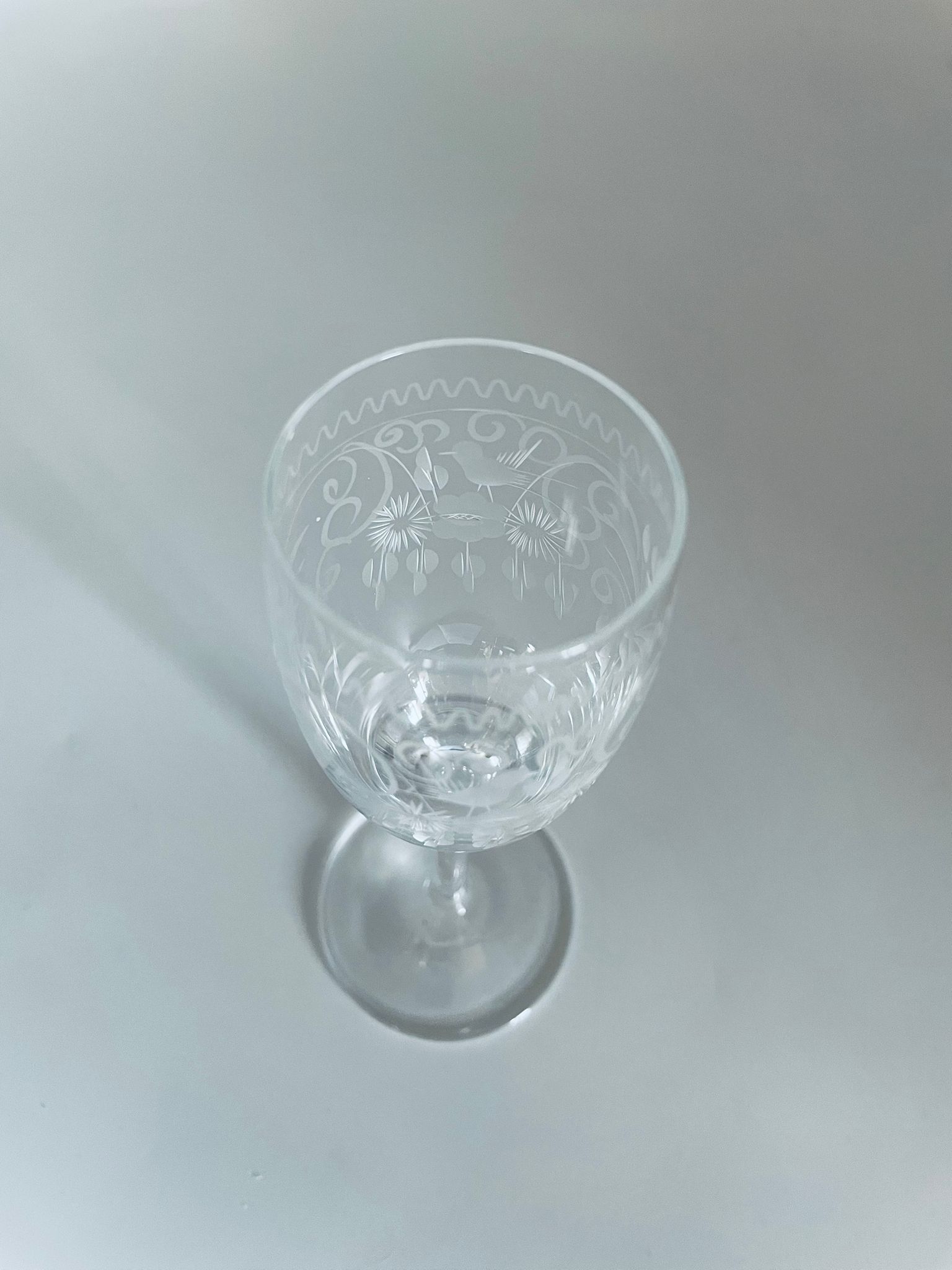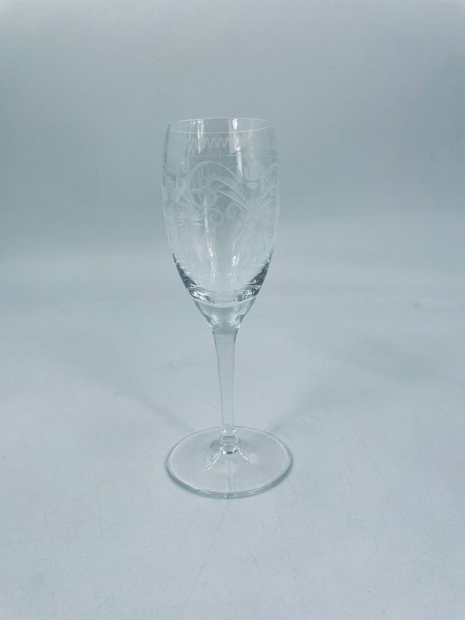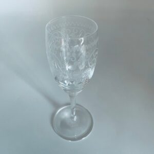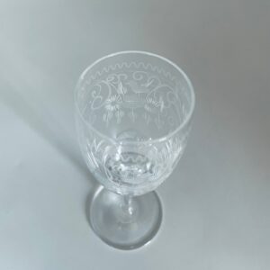 Kieliszek szklany do nalewki w stylu Vintage, z trawionym wzorem, charakteryzuje się optycznym szkłem i ciekawym grawerowanym wzorem.