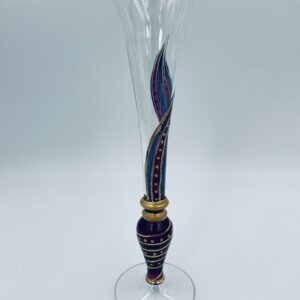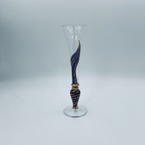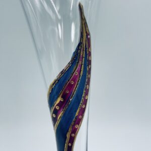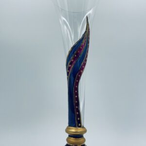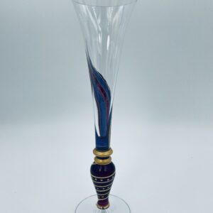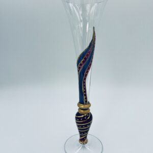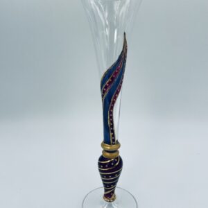 Piękny, wysoki kieliszek do szampana wykonany ręcznie oraz ręcznie malowany i złocony.