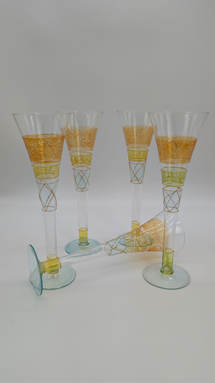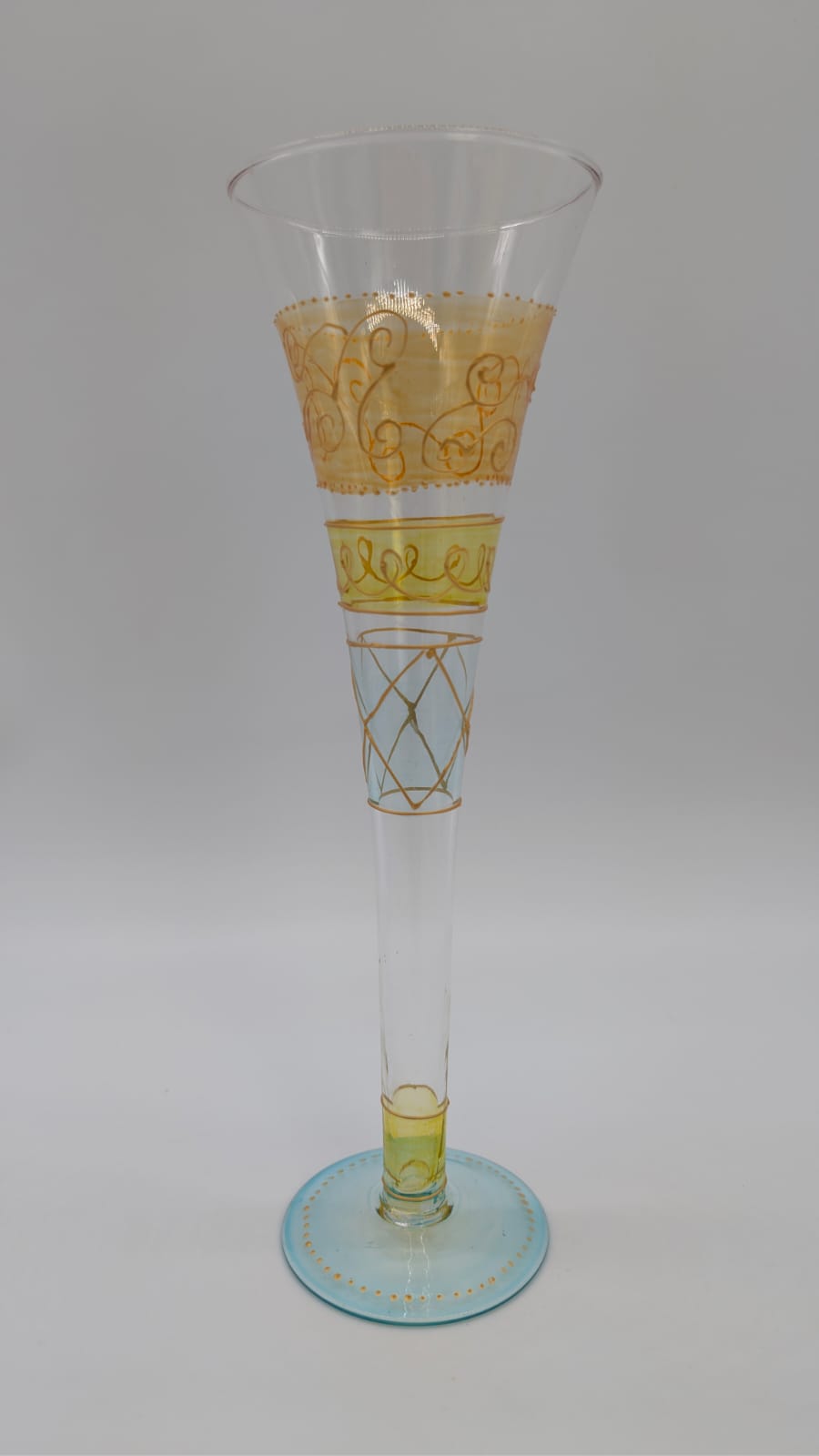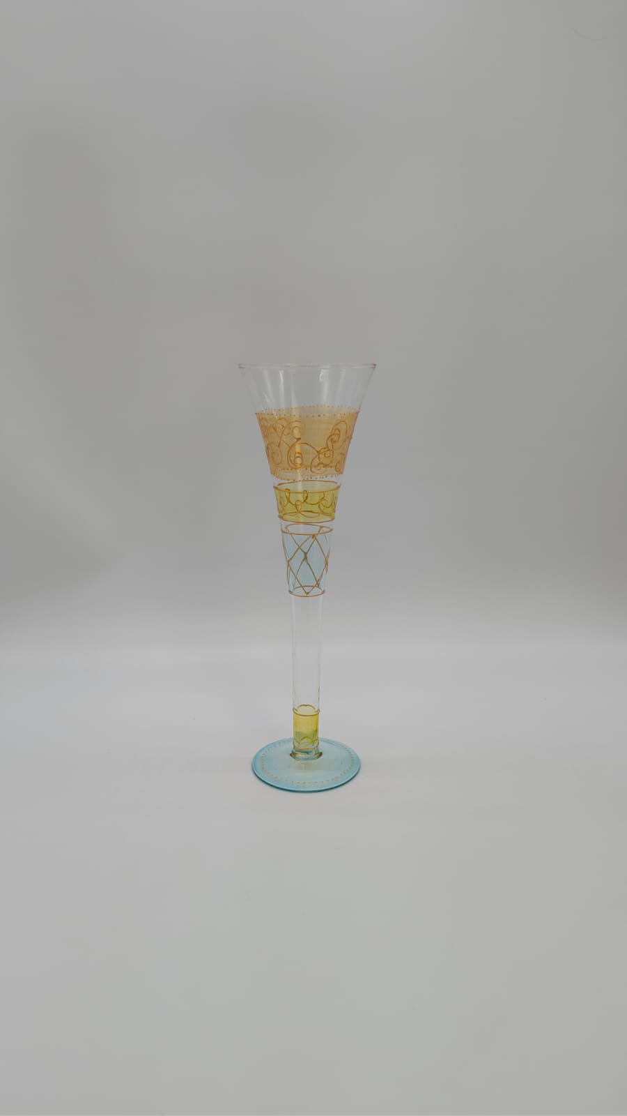 Ręcznie malowana szklanka do szampana. Elegancki dodatek do serwowania napojów, który ozdobi każdy stół. Unikatowy, ręcznie malowany wzór sprawia, że każda szklanka jest wyjątkowa.