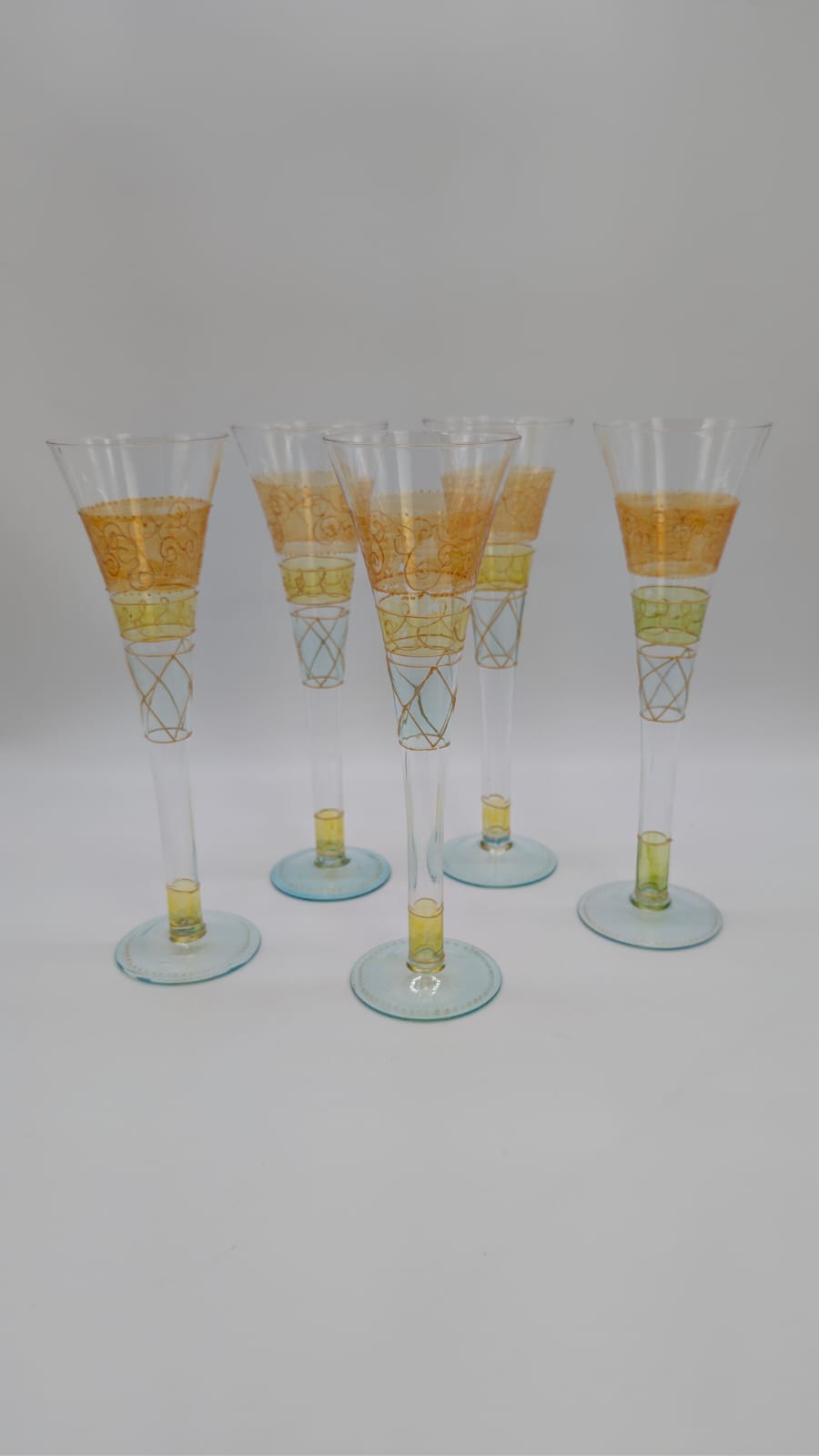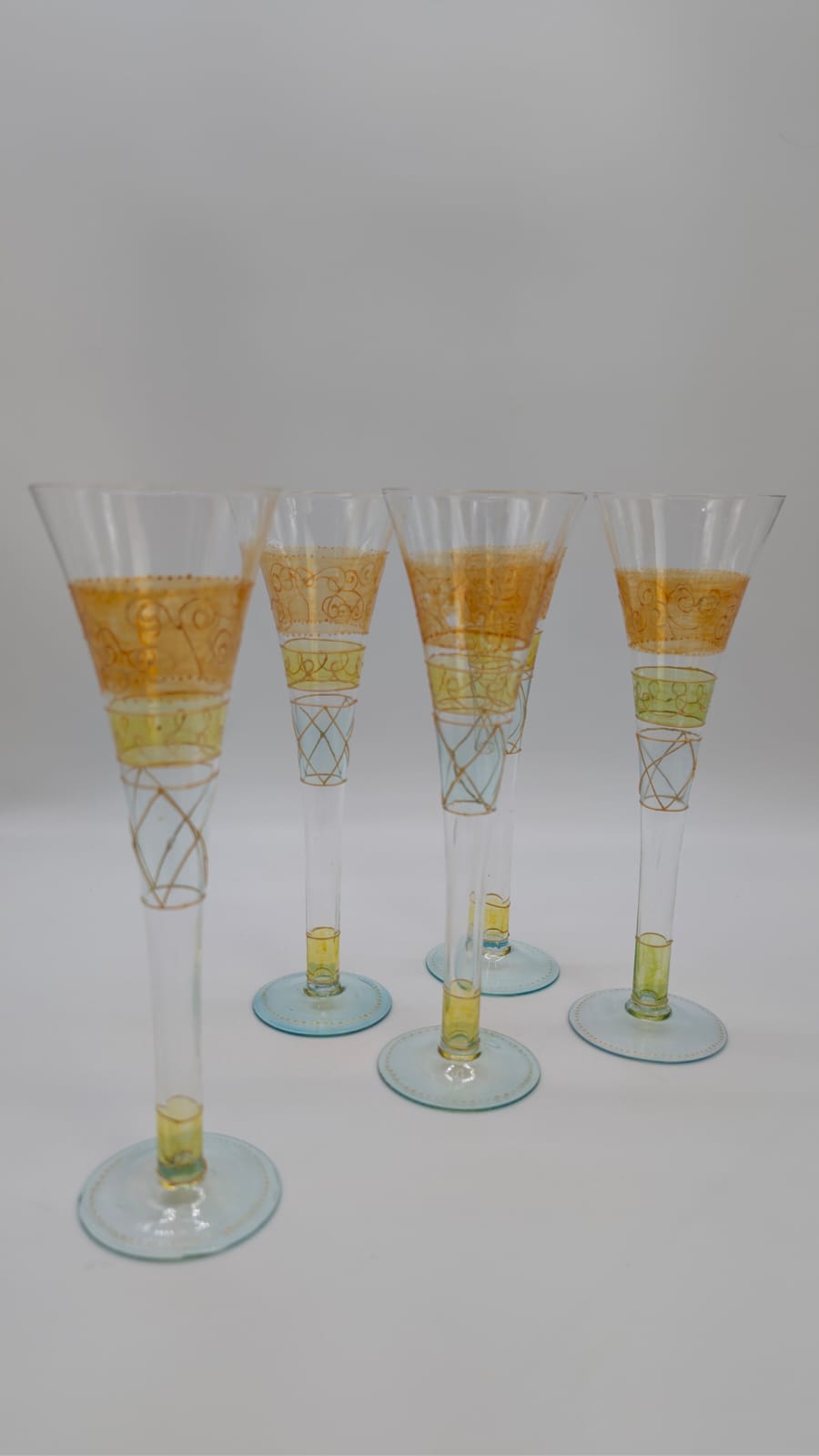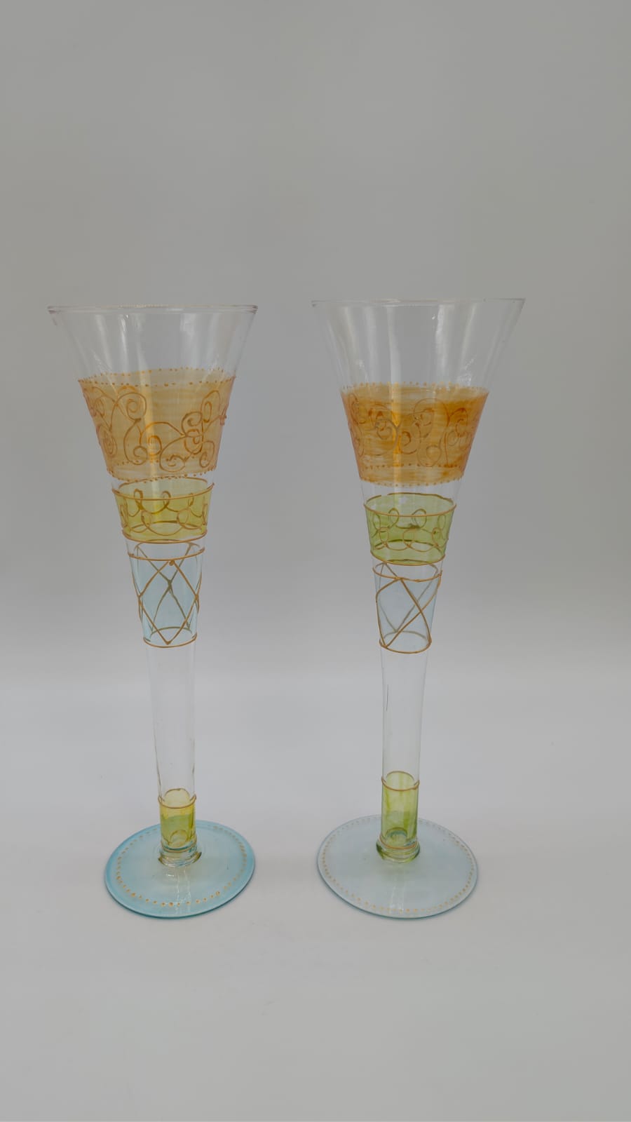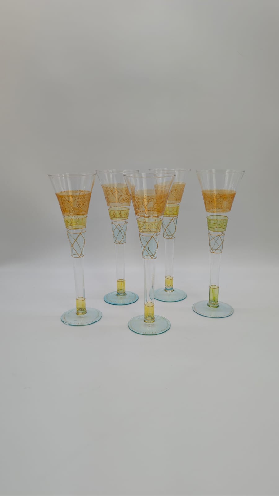 Ręcznie malowana szklanka do szampana. Elegancki dodatek do serwowania napojów, który ozdobi każdy stół. Unikatowy, ręcznie malowany wzór sprawia, że każda szklanka jest wyjątkowa.