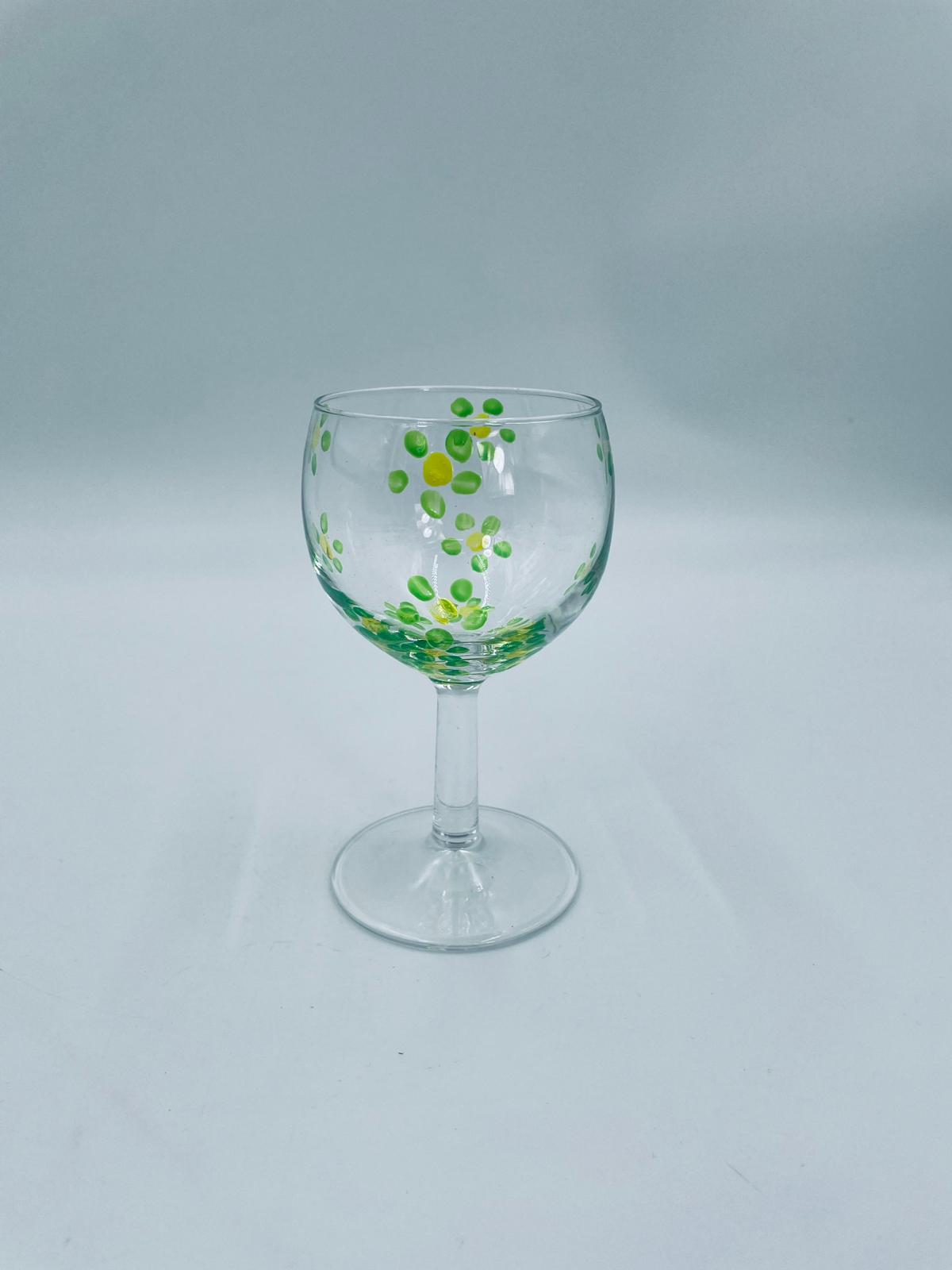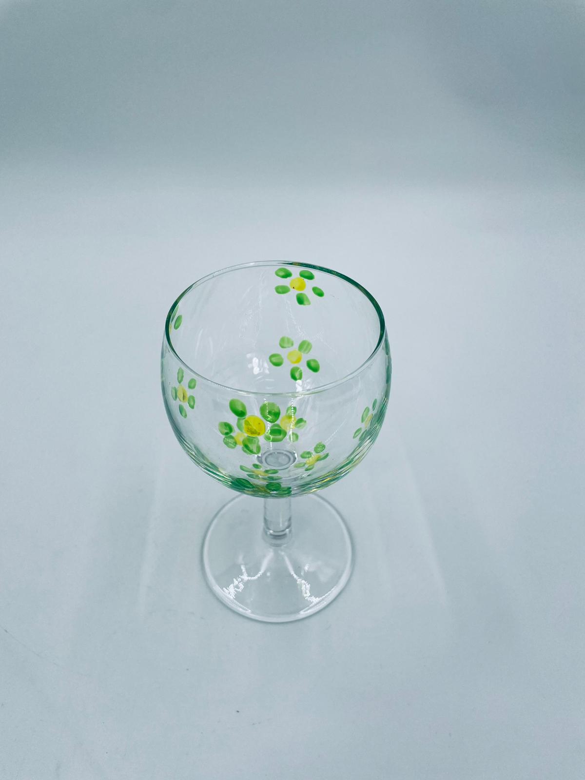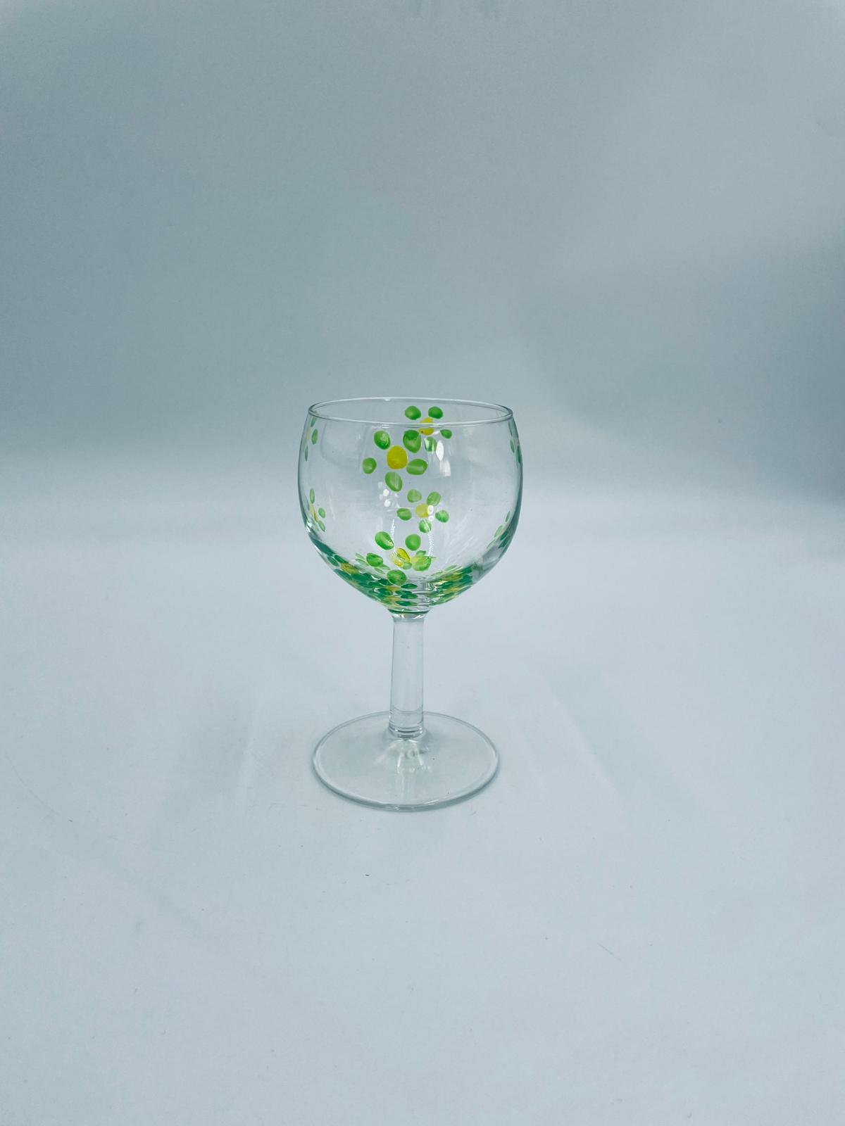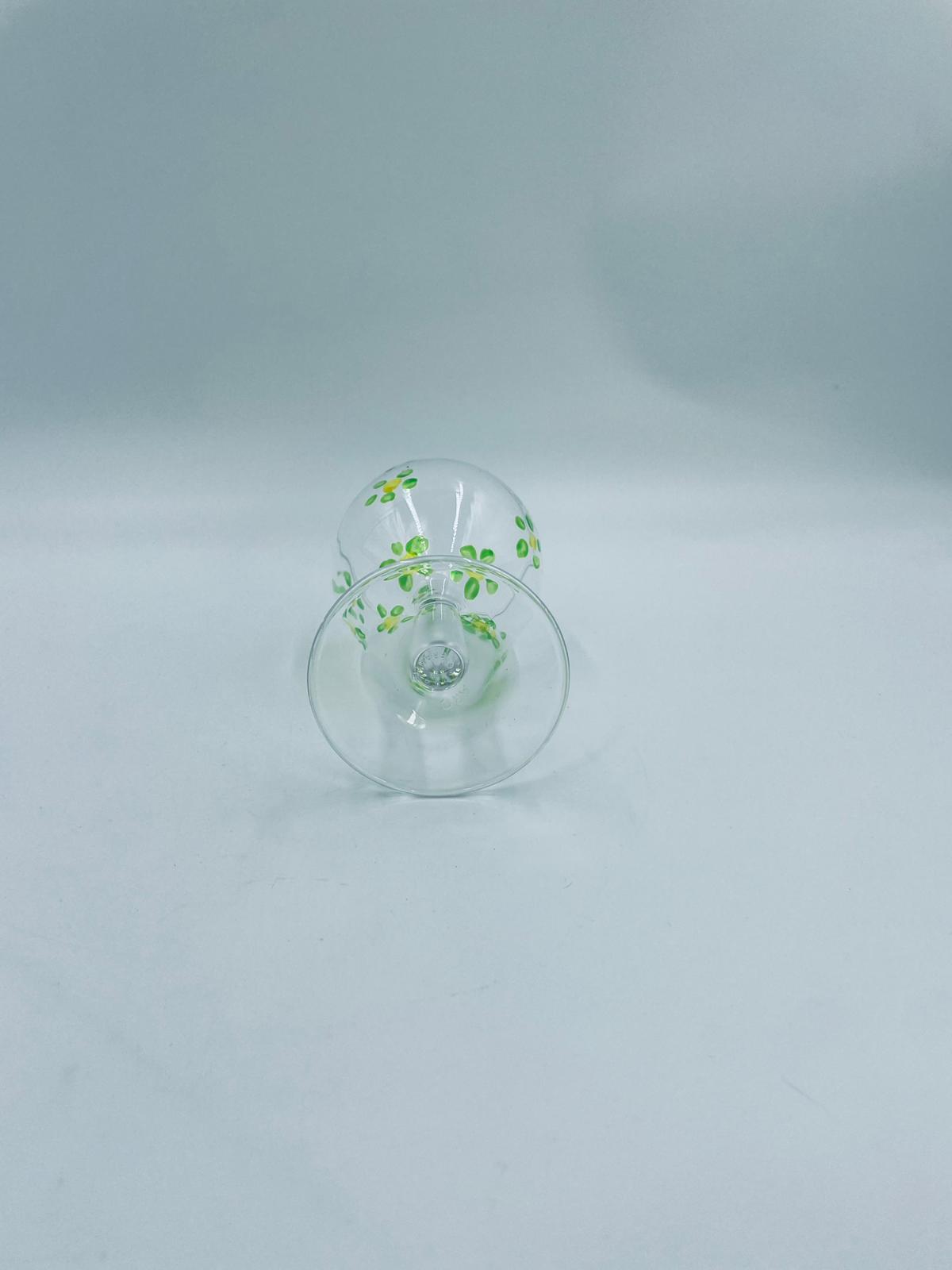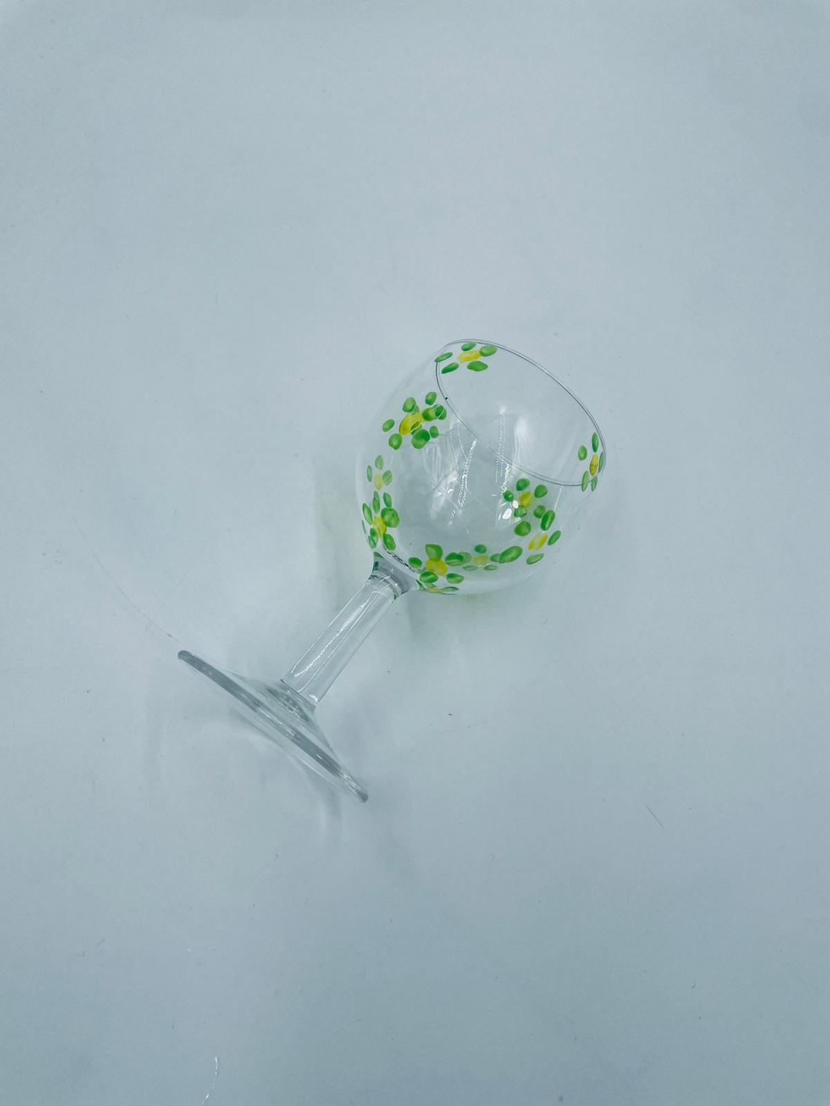 Kieliszek do wina francuskiej marki ARC, wykonany z wysokiej jakości szkła kryształowego. Kieliszek klasyczny, ozdobiony ręcznie malowanym wzorem zielonych kwiatków.