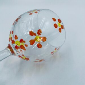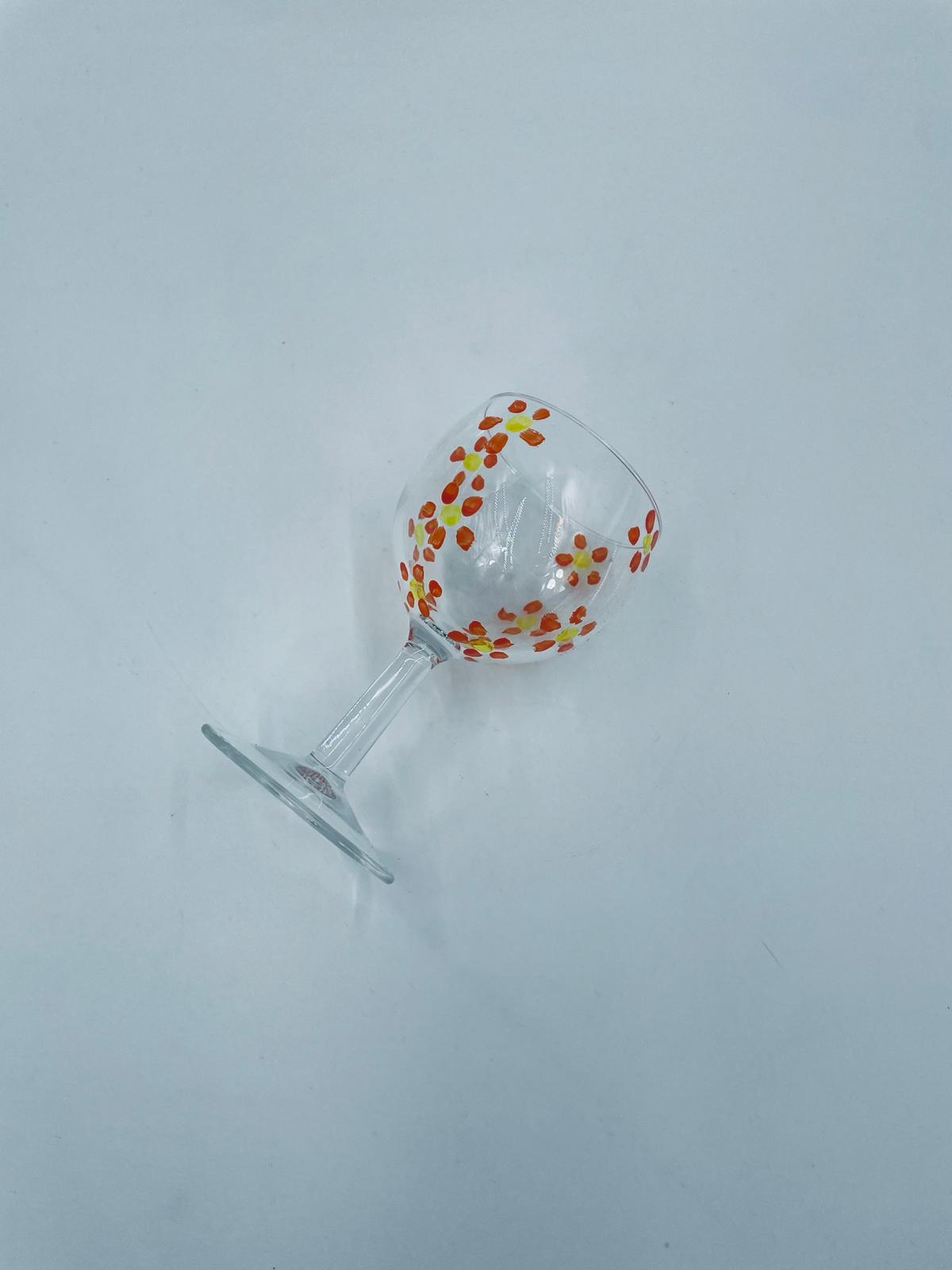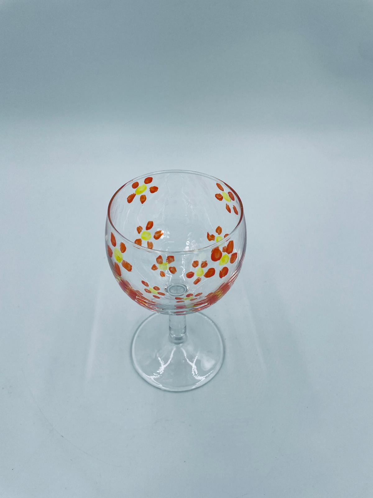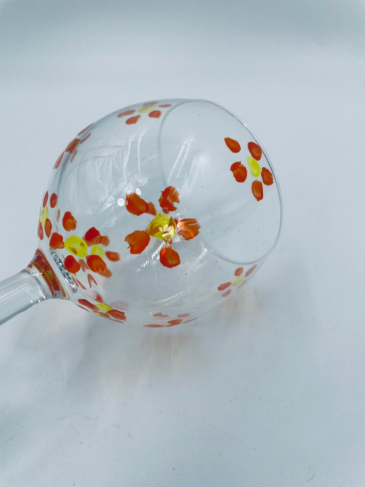 Kieliszek do wina francuskiej marki ARC, wykonany z wysokiej jakości szkła kryształowego. Kieliszek klasyczny, ozdobiony ręcznie malowanym wzorem pomarańczowych kwiatków.