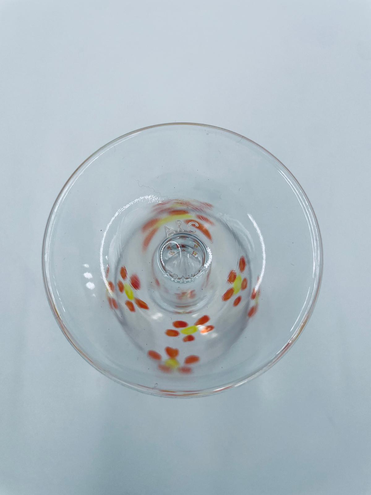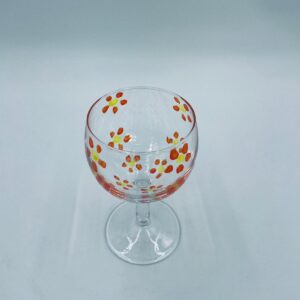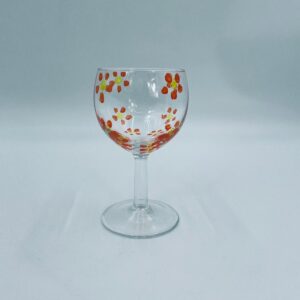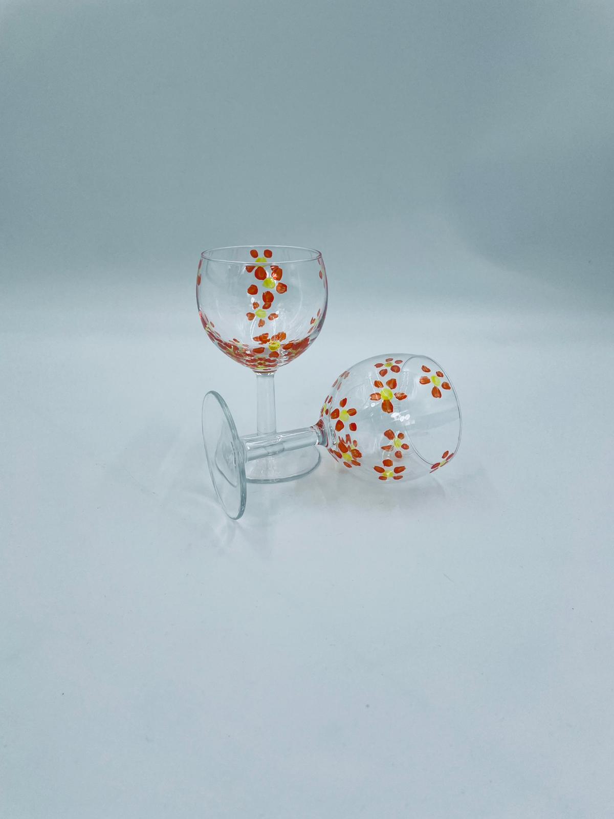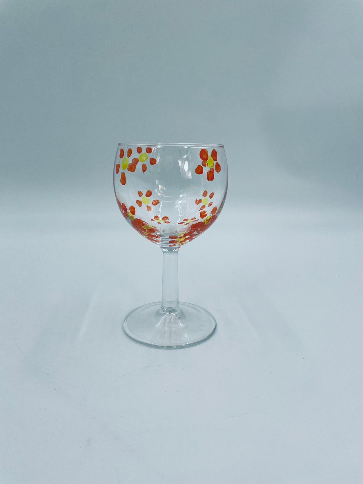 Kieliszek do wina francuskiej marki ARC, wykonany z wysokiej jakości szkła kryształowego. Kieliszek klasyczny, ozdobiony ręcznie malowanym wzorem pomarańczowych kwiatków.