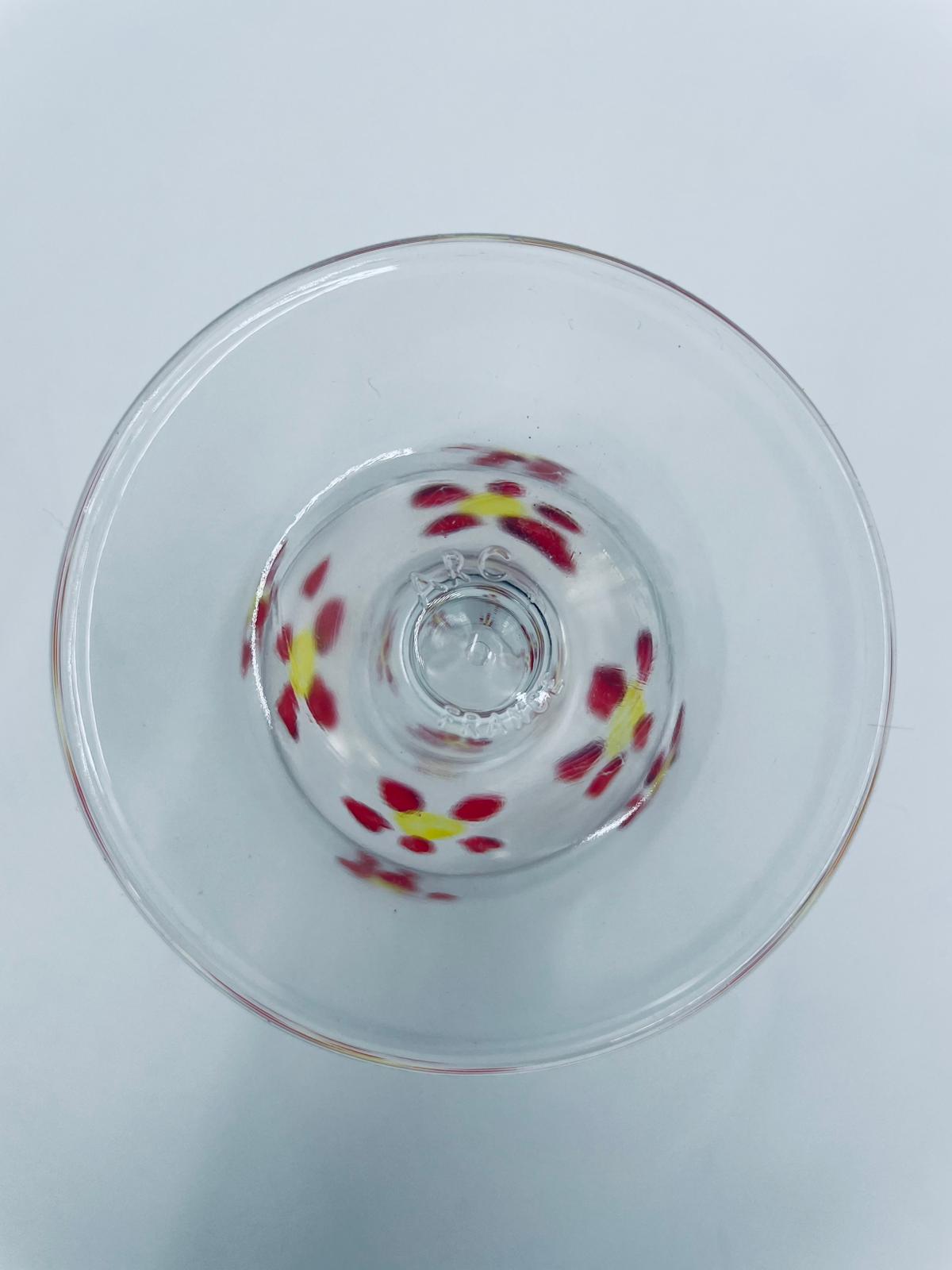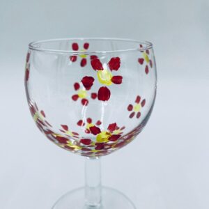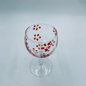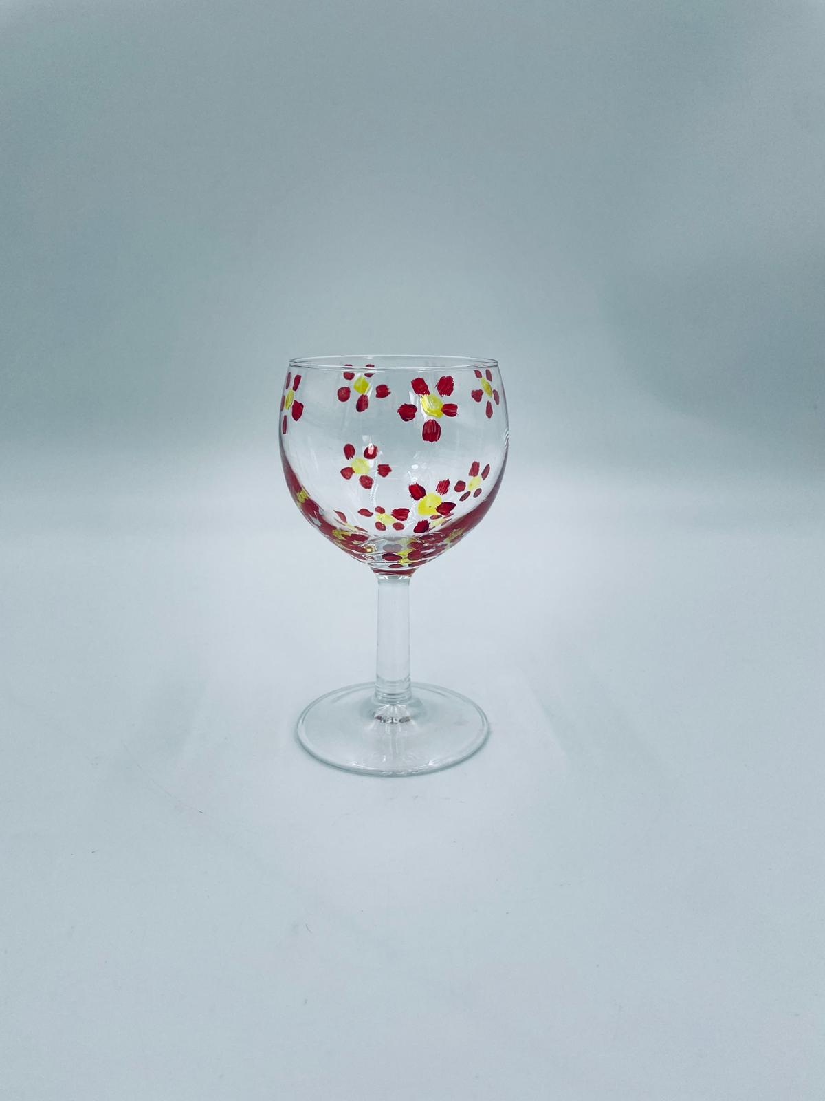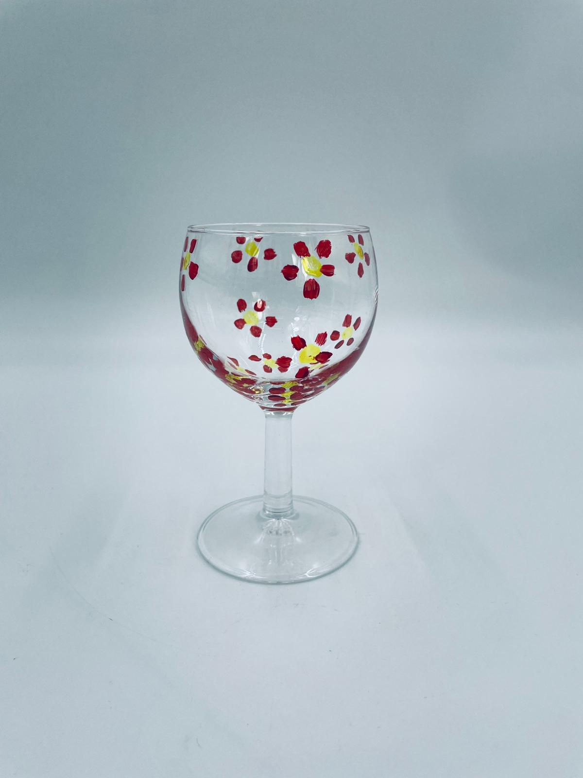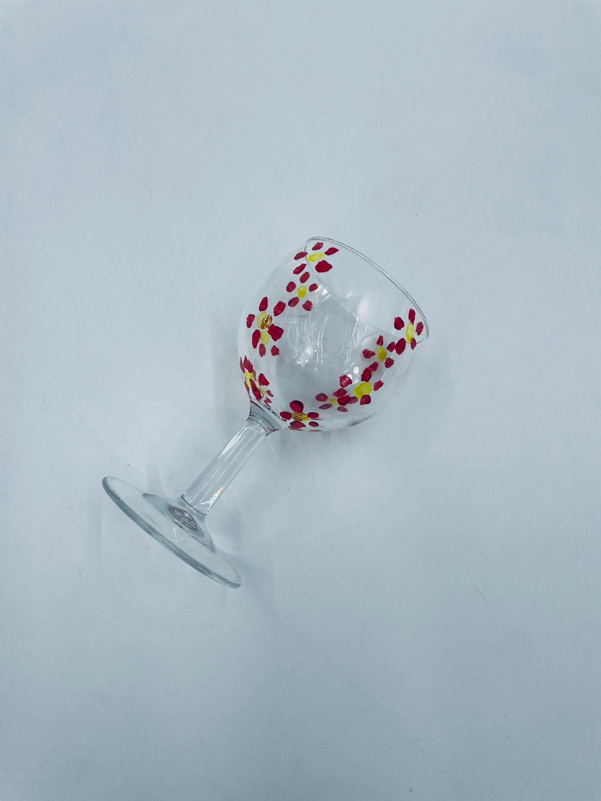 Kieliszek do wina francuskiej marki ARC, wykonany z wysokiej jakości szkła kryształowego. Kieliszek klasyczny, ozdobiony ręcznie malowanym wzorem czerwonych kwiatków.