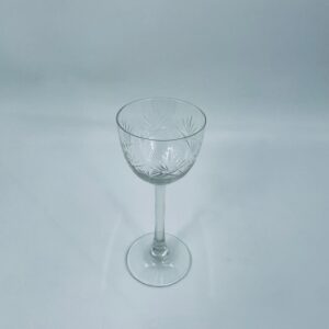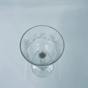Kieliszek do wina Vintage style, wykonany z wysokiej jakości szkła kryształowego przezroczystego. Czara grawerowana wzorem rozchodzących się promieni, nóżka wysoka ze stabilną podstawą.