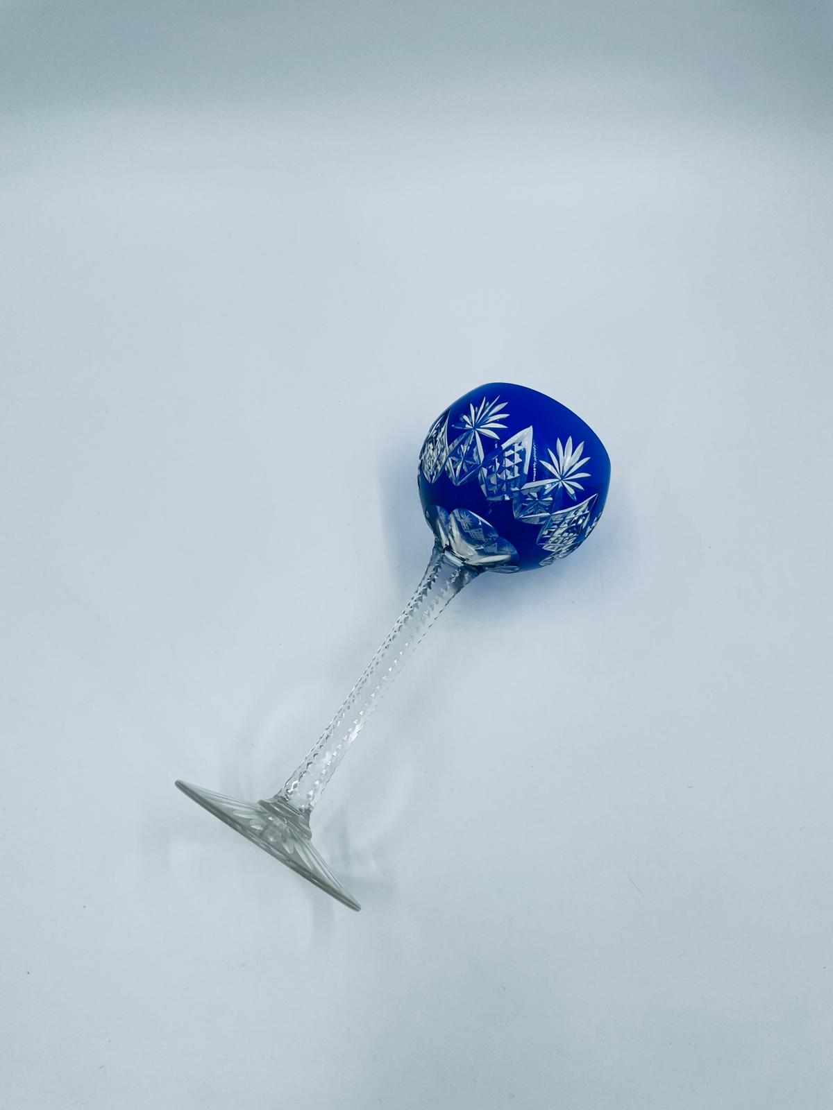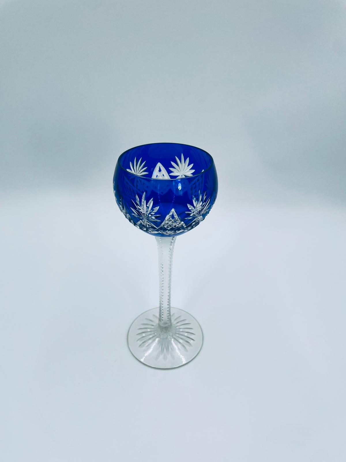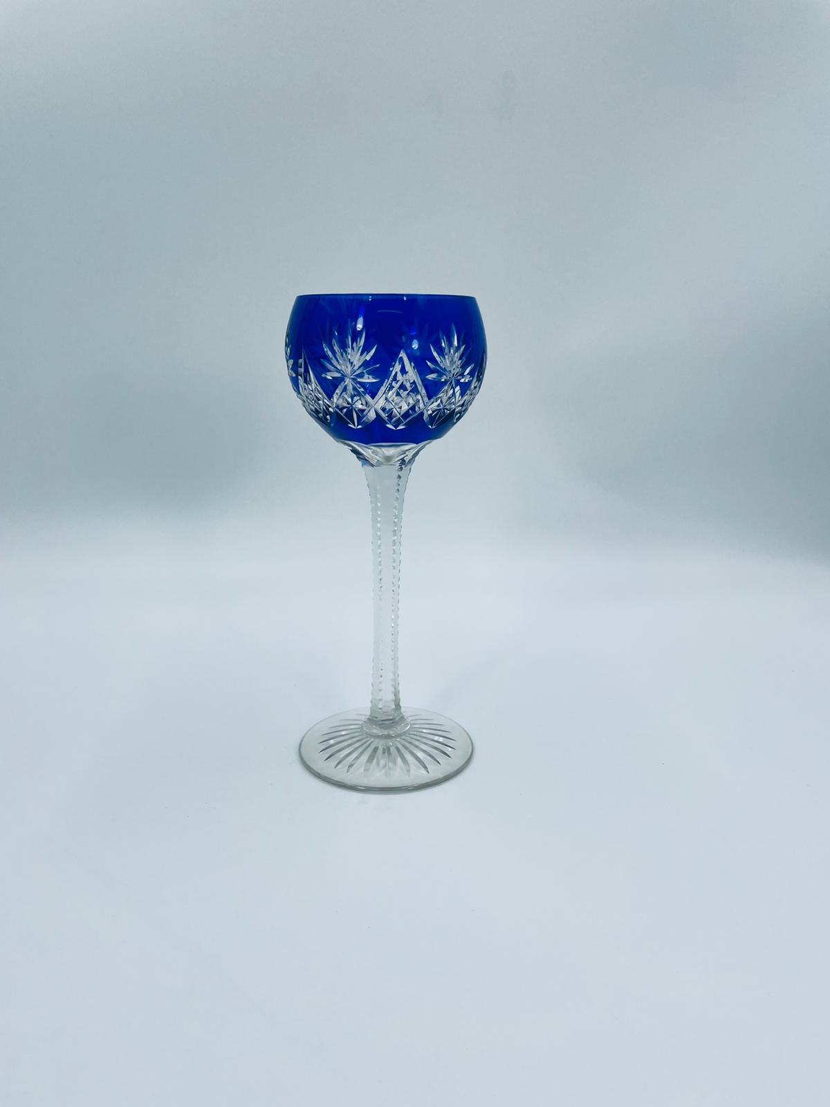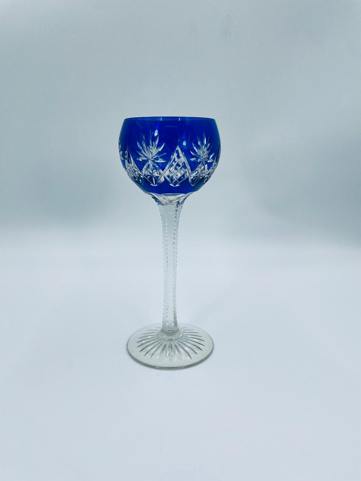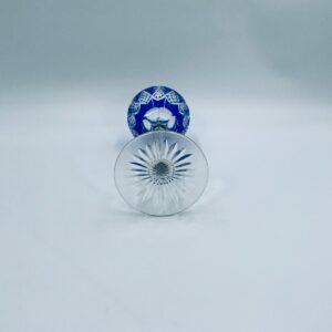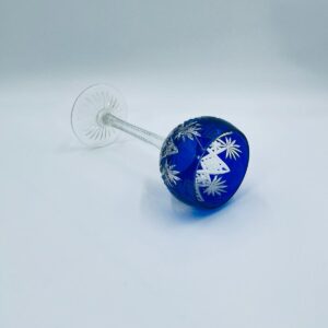 Kieliszek do wina typu Römer w stylu Vintage, wykonany z wysokiej jakości szkła kryształowego. Kieliszek posiada kobaltową, dwuwarstwową czarę z ręcznie szlifowanymi, ozdobnym wzorem geometrycznym , smukłą i ozdobną nóżkę oraz ozdobna podstawę z precyzyjnym szlifem.