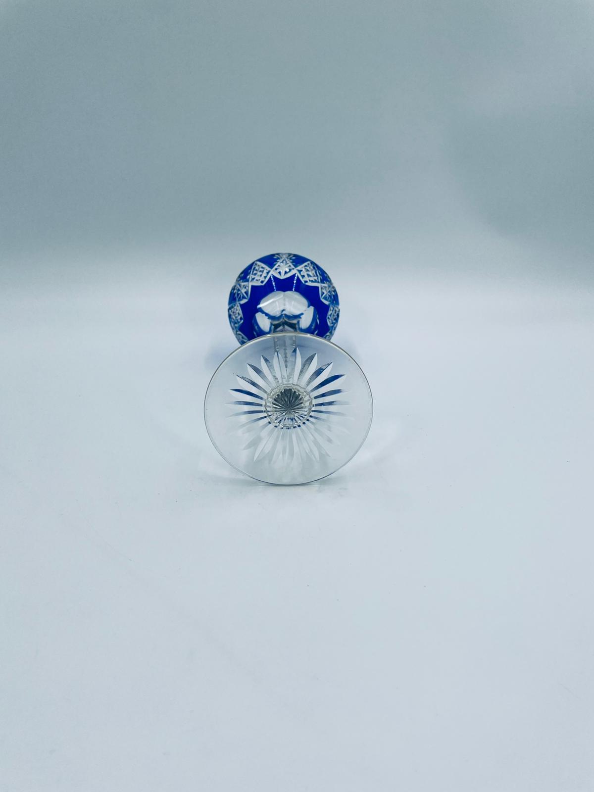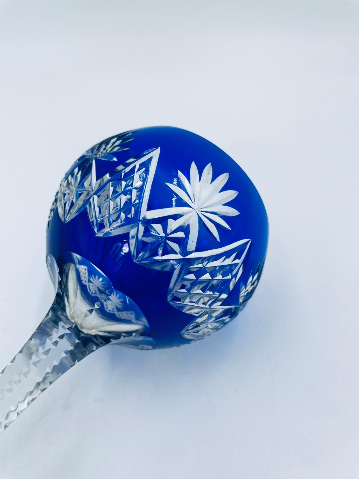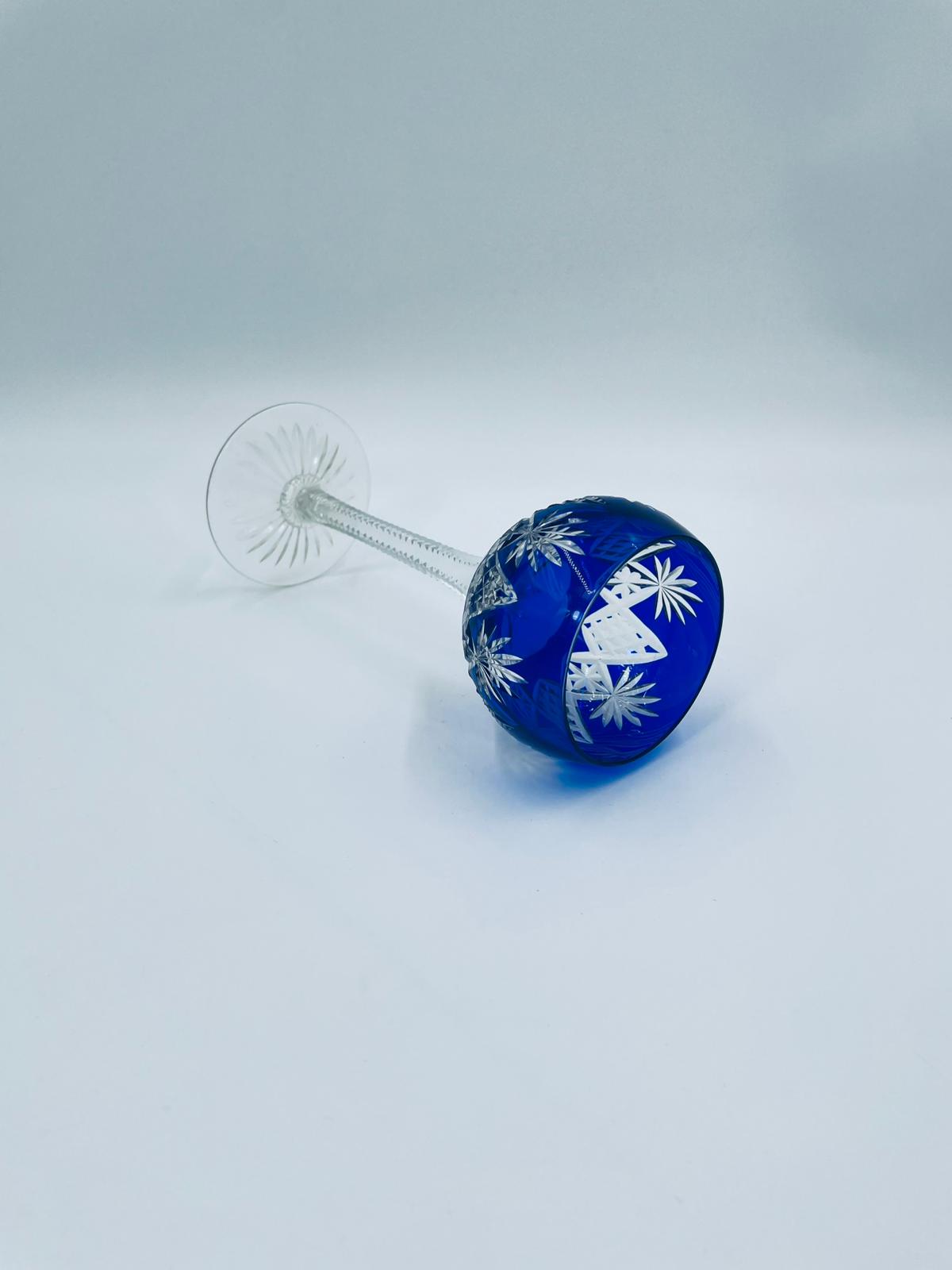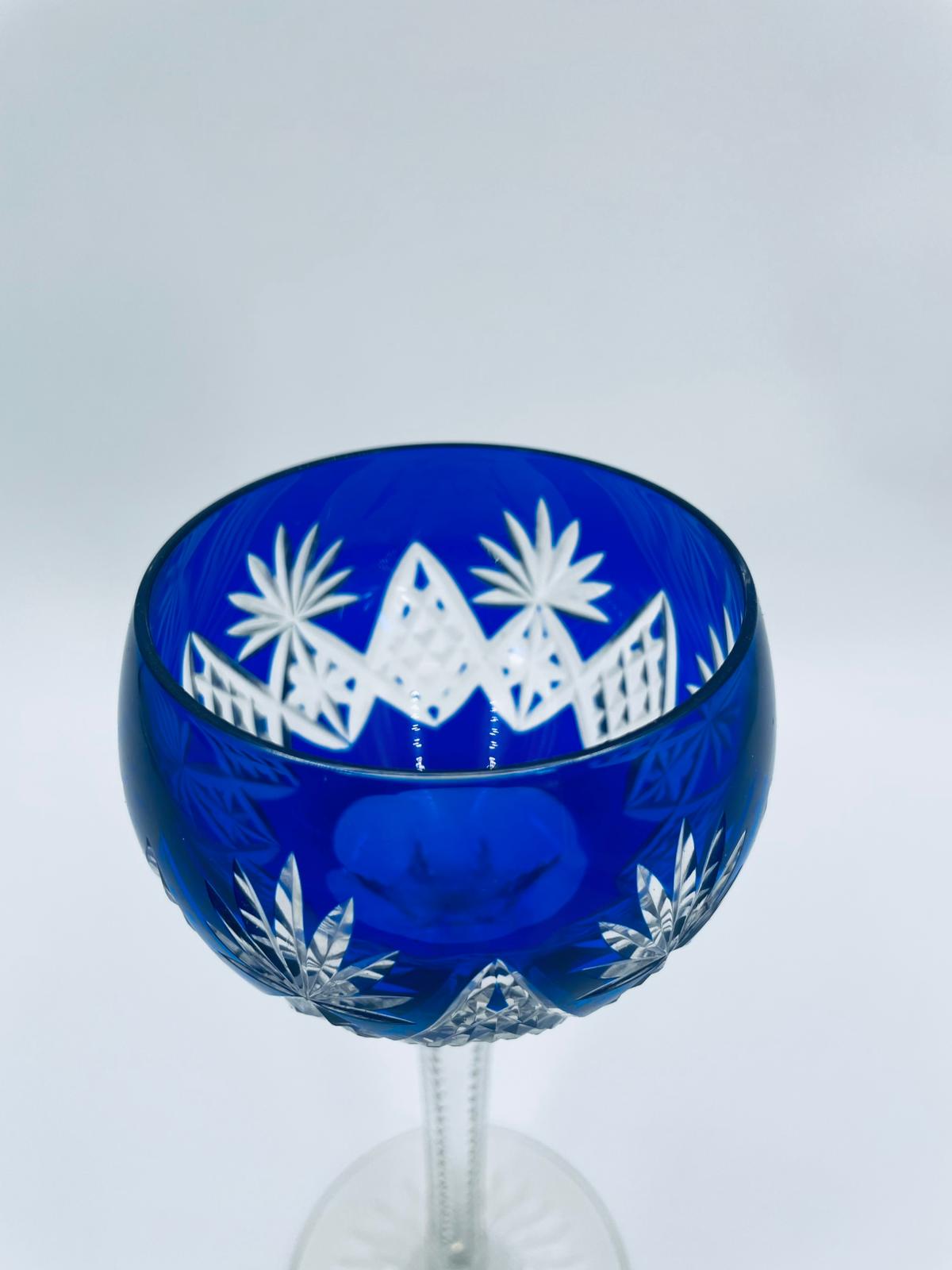 Kieliszek do wina typu Römer w stylu Vintage, wykonany z wysokiej jakości szkła kryształowego. Kieliszek posiada kobaltową, dwuwarstwową czarę z ręcznie szlifowanymi, ozdobnym wzorem geometrycznym , smukłą i ozdobną nóżkę oraz ozdobna podstawę z precyzyjnym szlifem.
